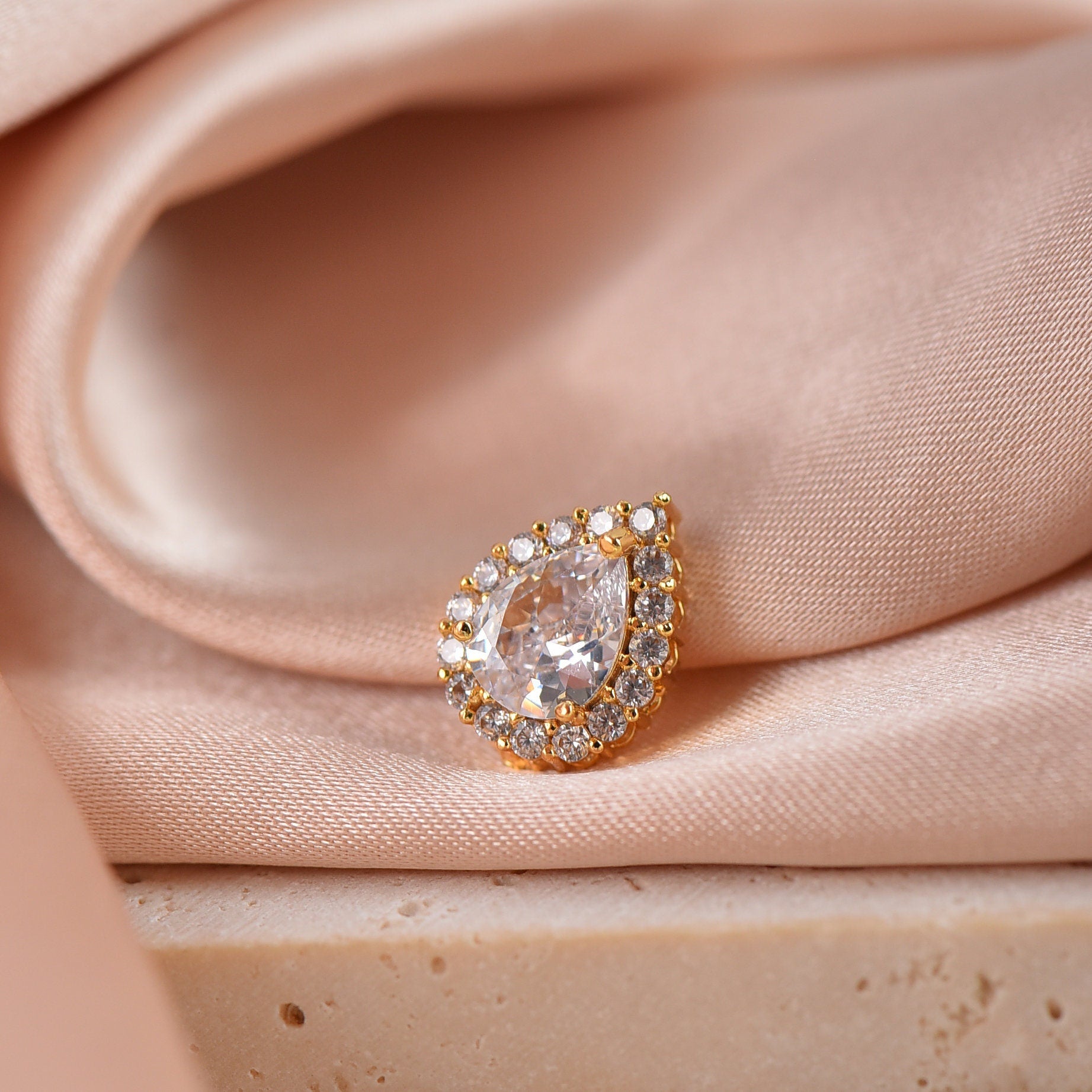 14K Pear Shape With Micro Pave And Pear Cut CZ,Charm For Earring Or Necklace,CPG364