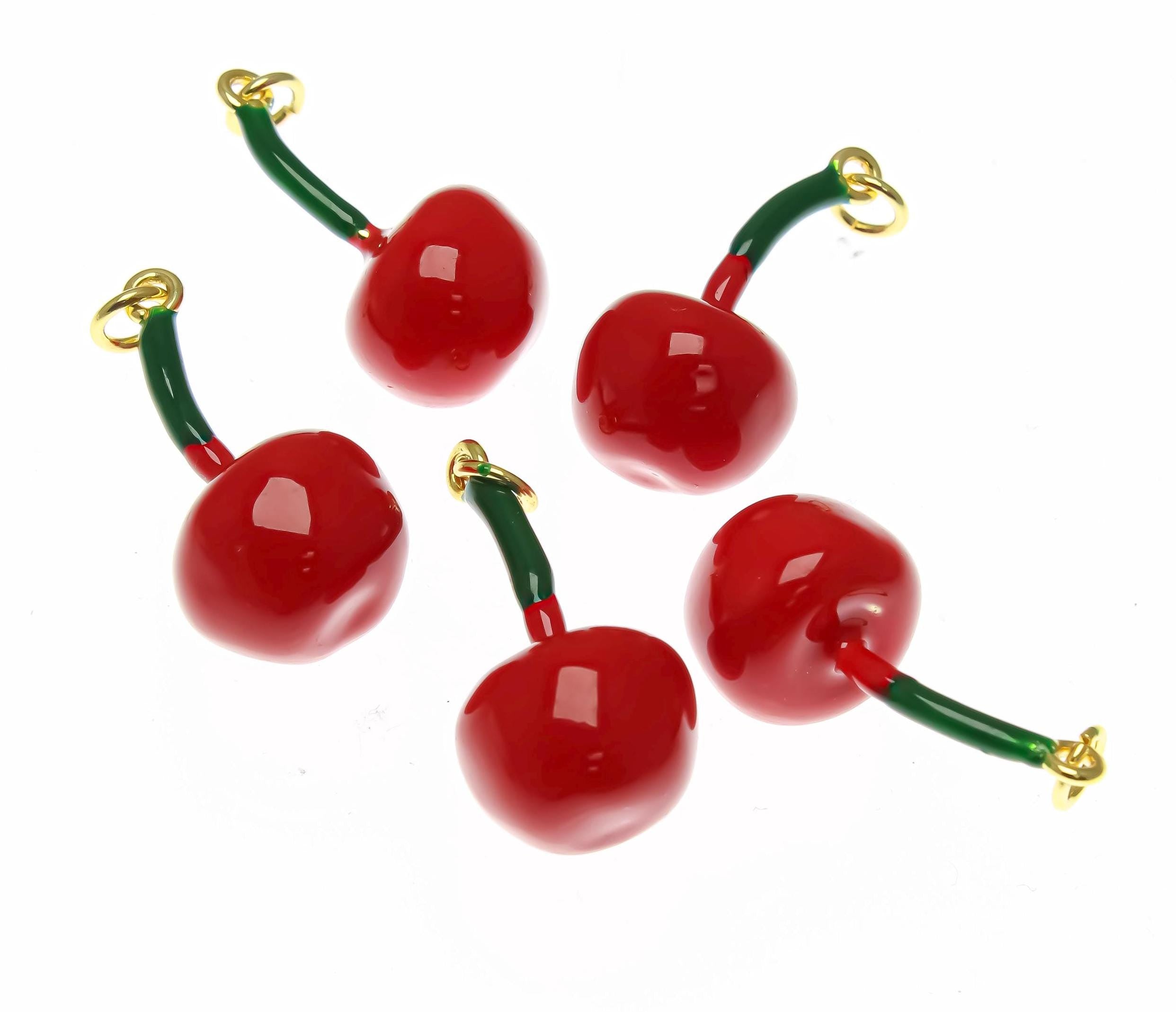 18k Cherry, Gold Dainty Charm, Red Cherry Dainty Charm, Small Fruit Charms, Farmers Market, Eclectic Jewelry, CPG2333