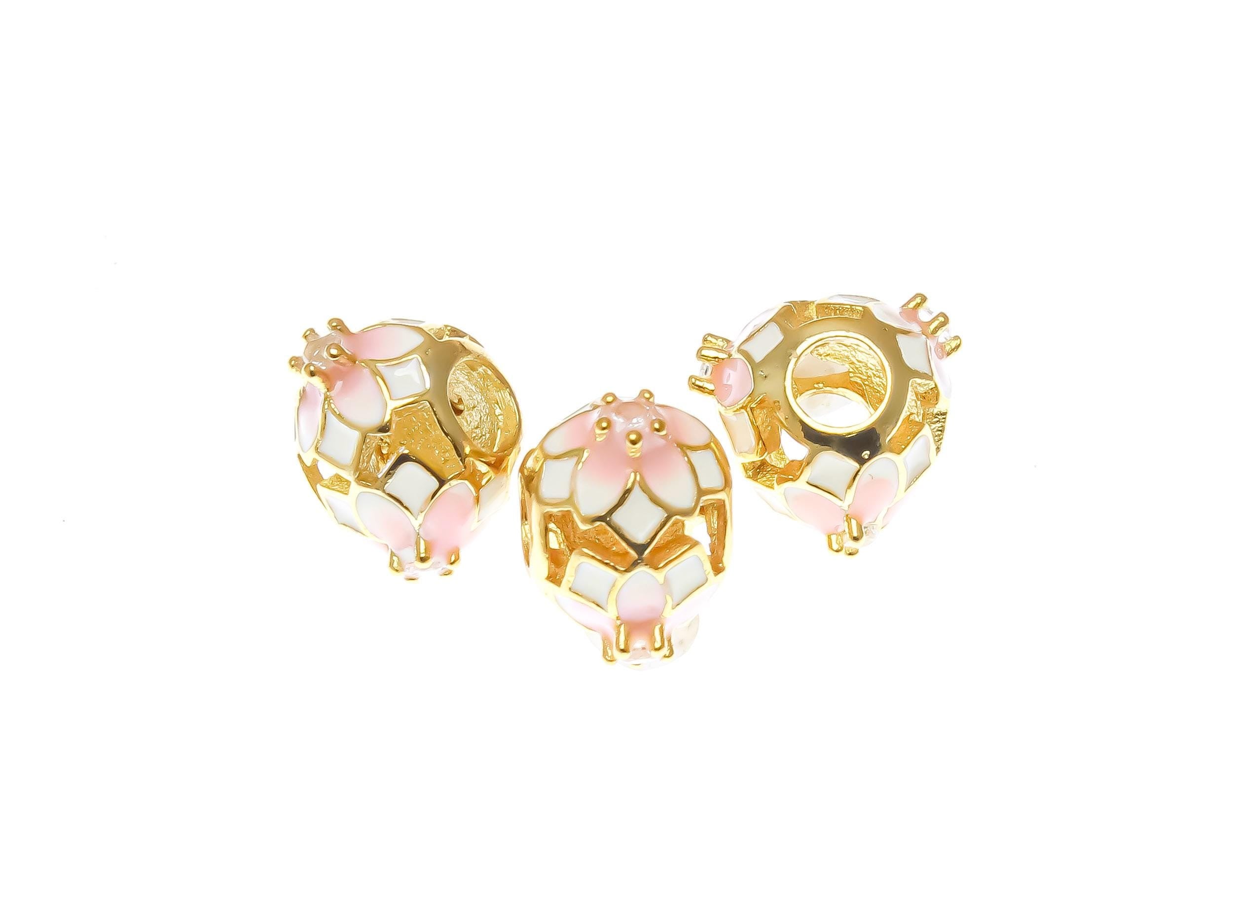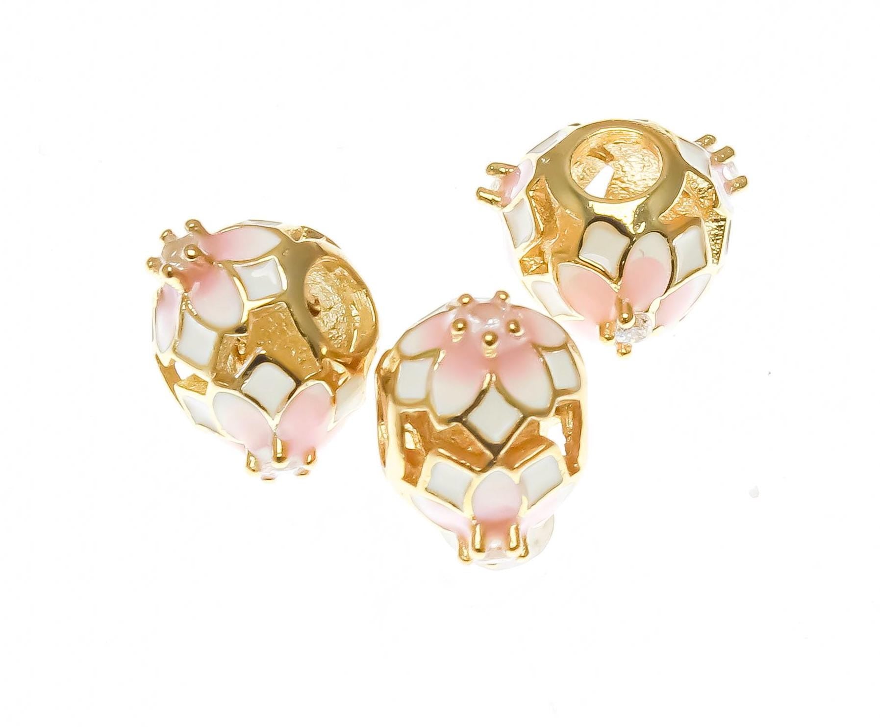 18k Gold and Pink Delicate Flower Spacer Bead With CZ, Spacer Bead For Bracelet Or Necklace, Pave Bead Spacer For Jewelry, SPG103
