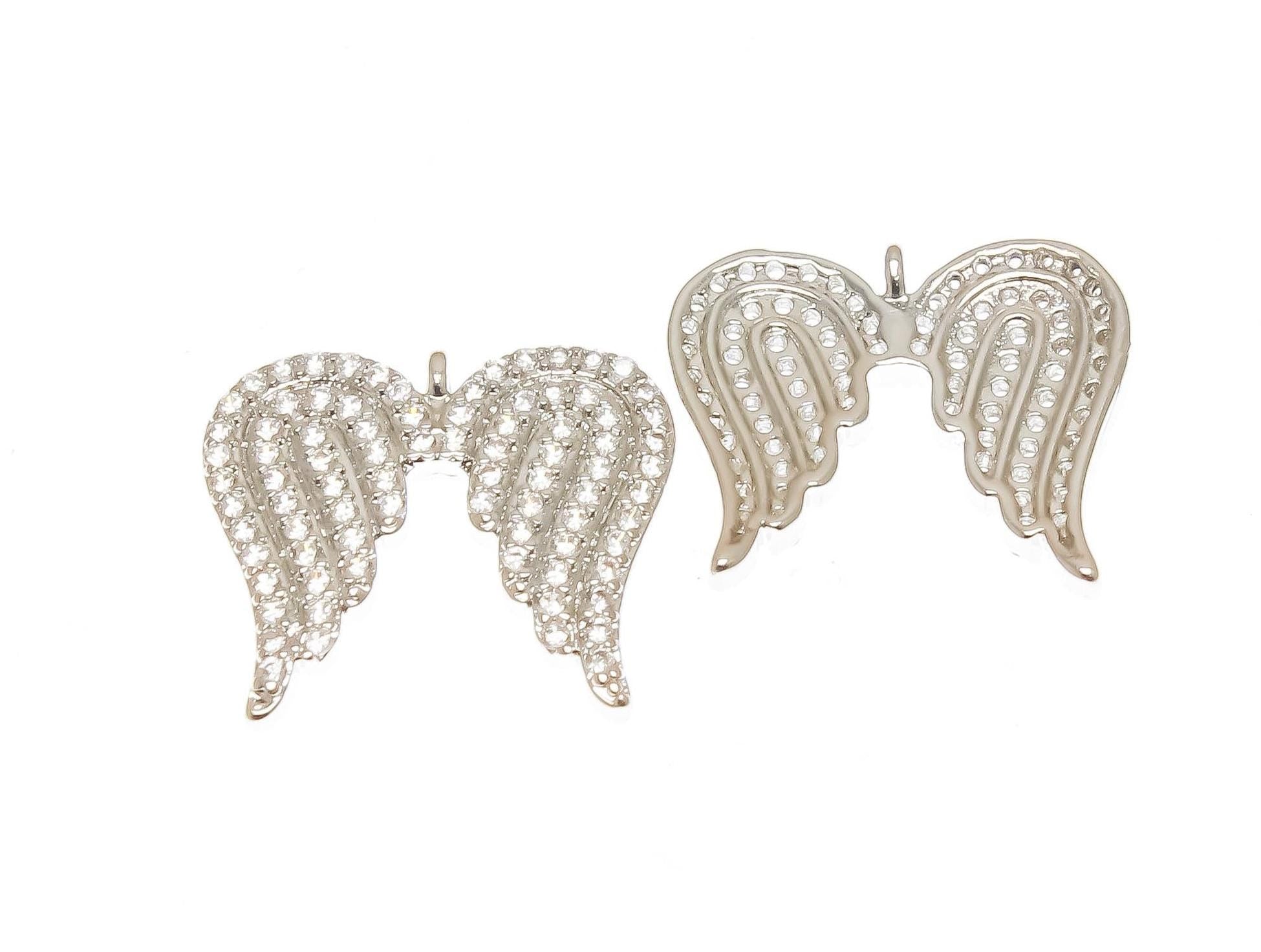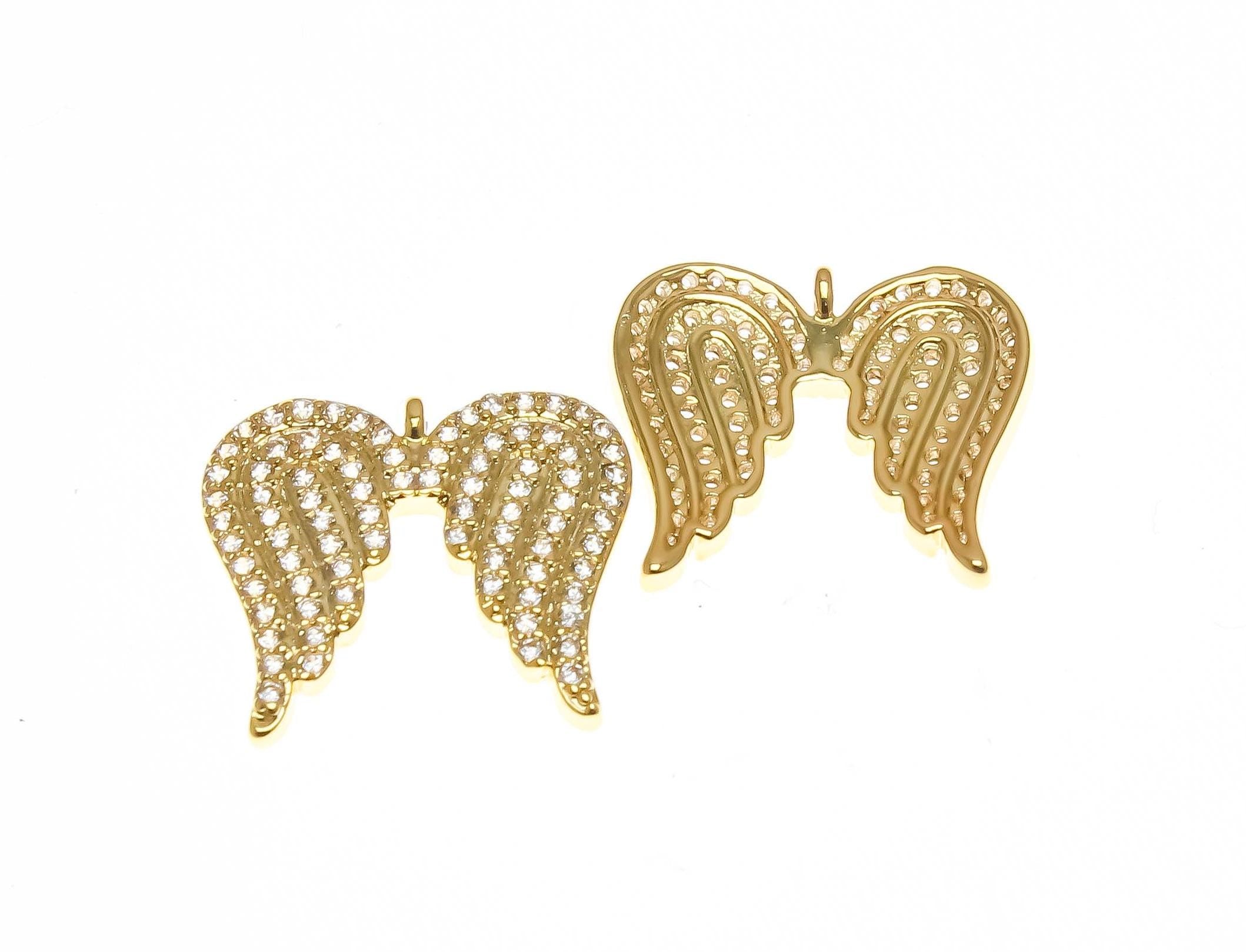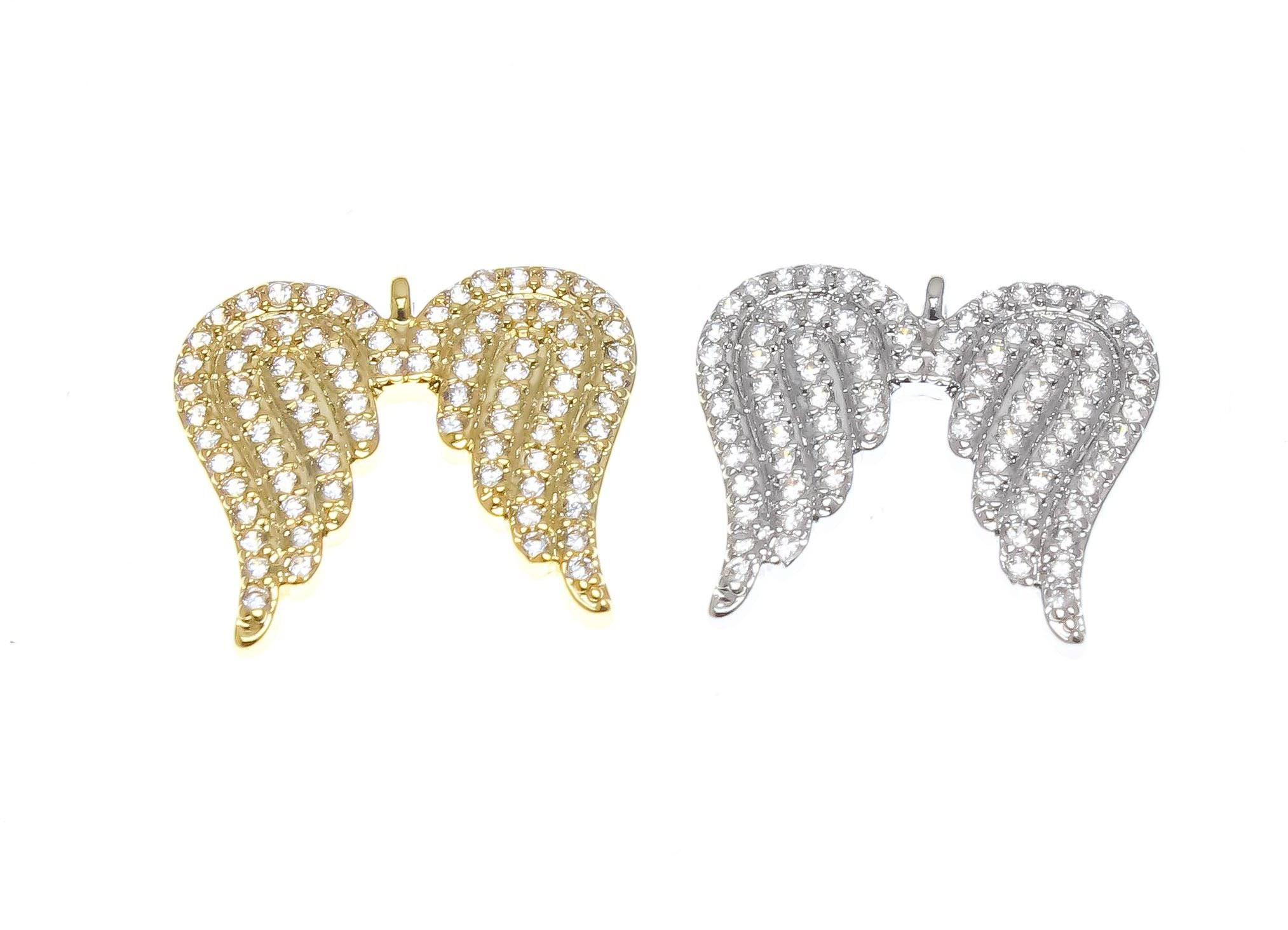 18k Gold Angel Wings, Micro Pave CZ Tiny Gold or Silver Angel Wings, Dainty Angel Wing for Charm, CPG2308, CPS2308