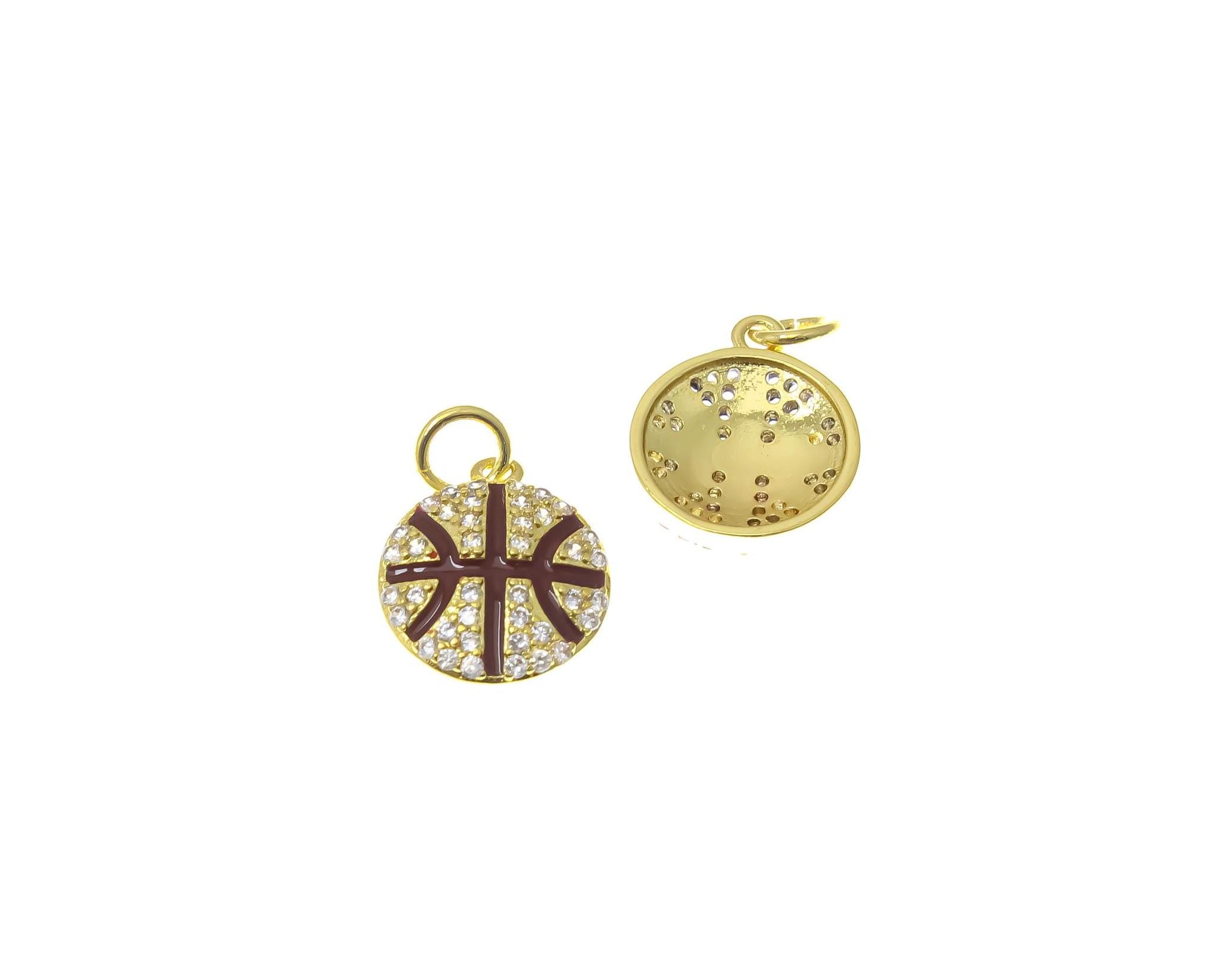 18k Gold Basketball, CZ Basketball Fan Charm, Cute Sports Charm, Basketball for girls, Basketball charm CPG2260