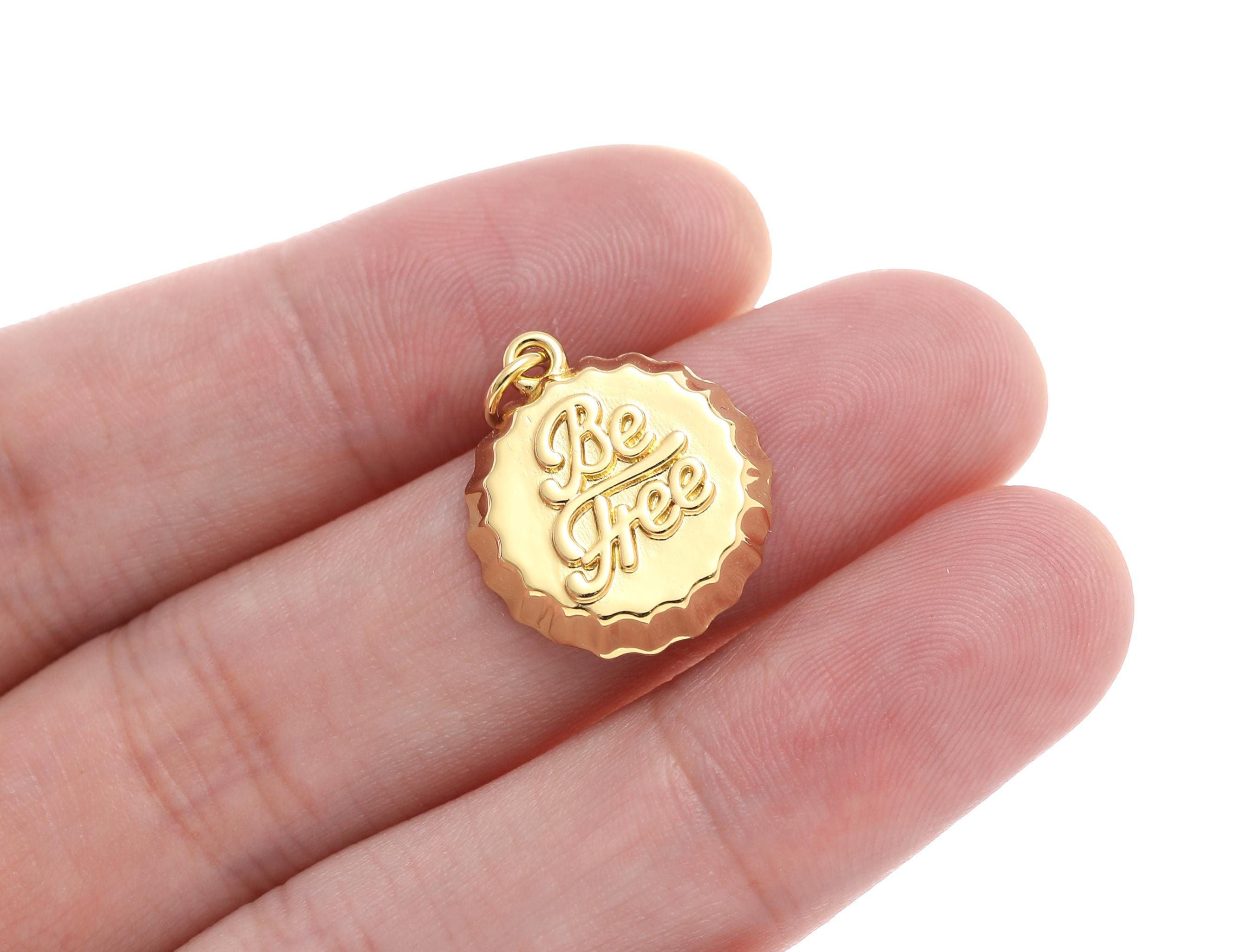 18k Gold Be Free Soda Cap Charm, Gold Be Free Pendant, Be Free Soda Cap Charm, Gold Charm, Gold Plated Findings, CPG2201