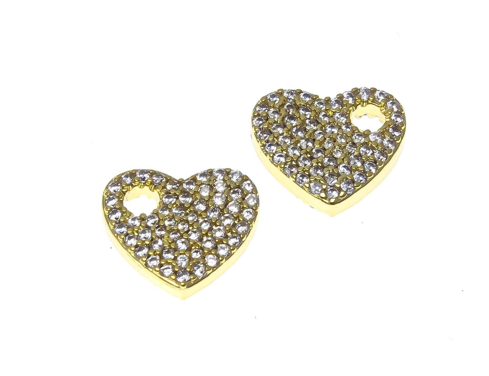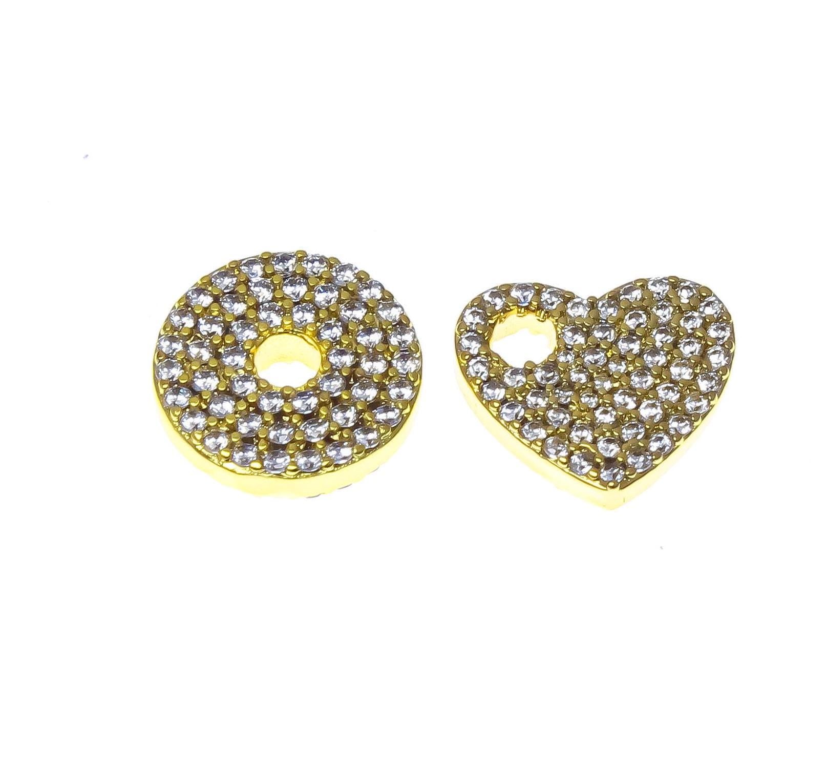18k Gold cz full pave Heart Pendant or Circle Pendant, Sparkly Polished Heart Pendant, Geometric, Heart Shape Pendant, CPG2312-13