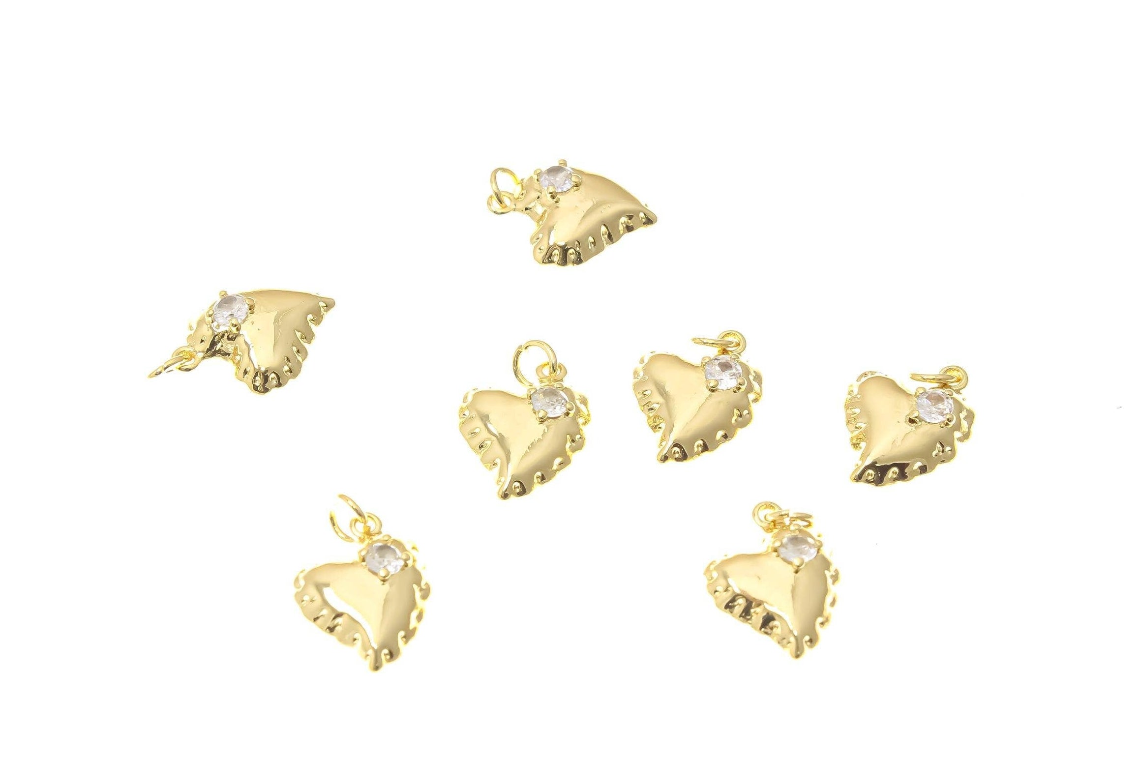 18k Gold CZ Pillow Heart Charm for Jewelry Making CPG1476