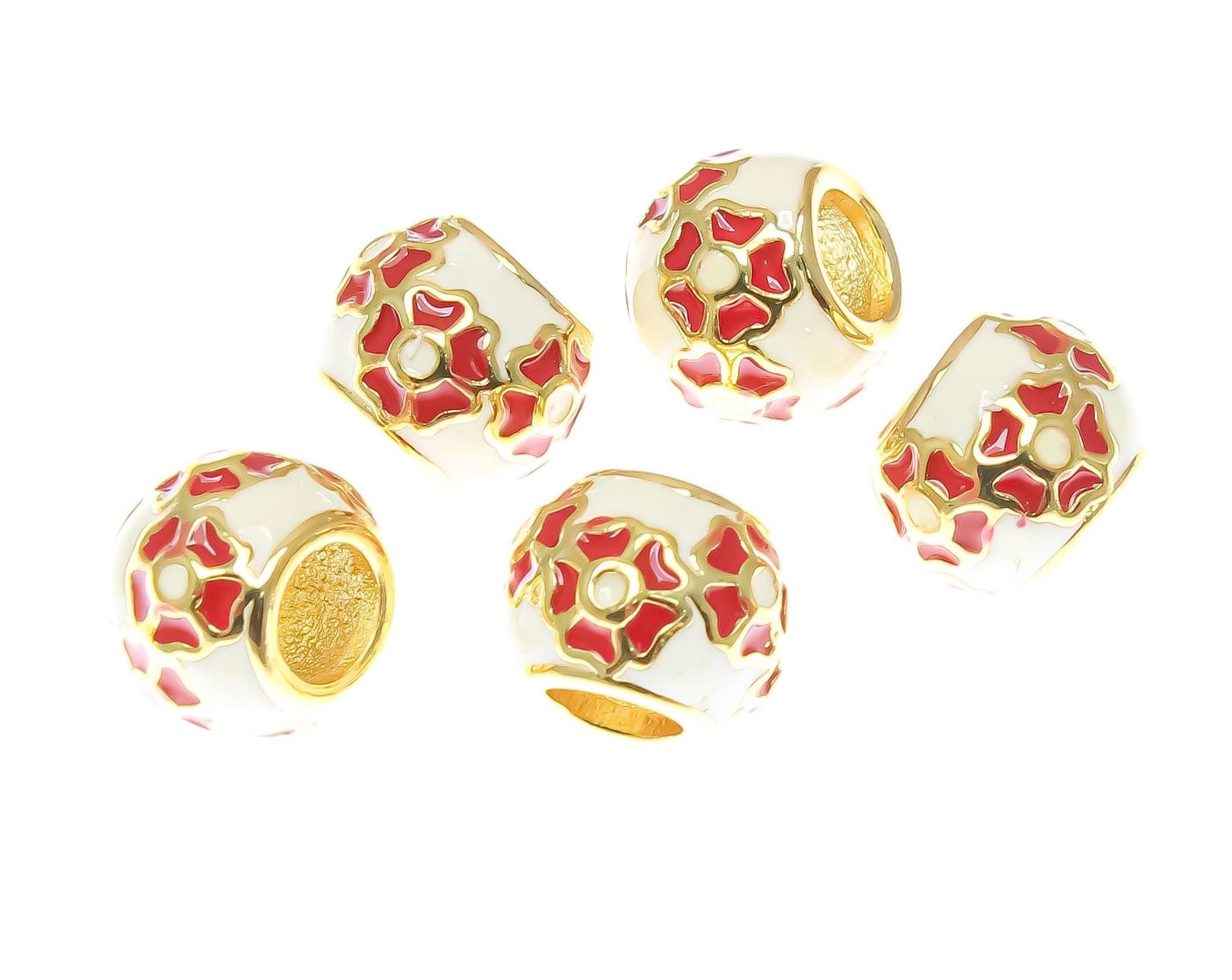 18k Gold Delicate Flower Spacer, White and Red Bead Spacer Bead, Thick Band Spacer For Jewelry, SPG105