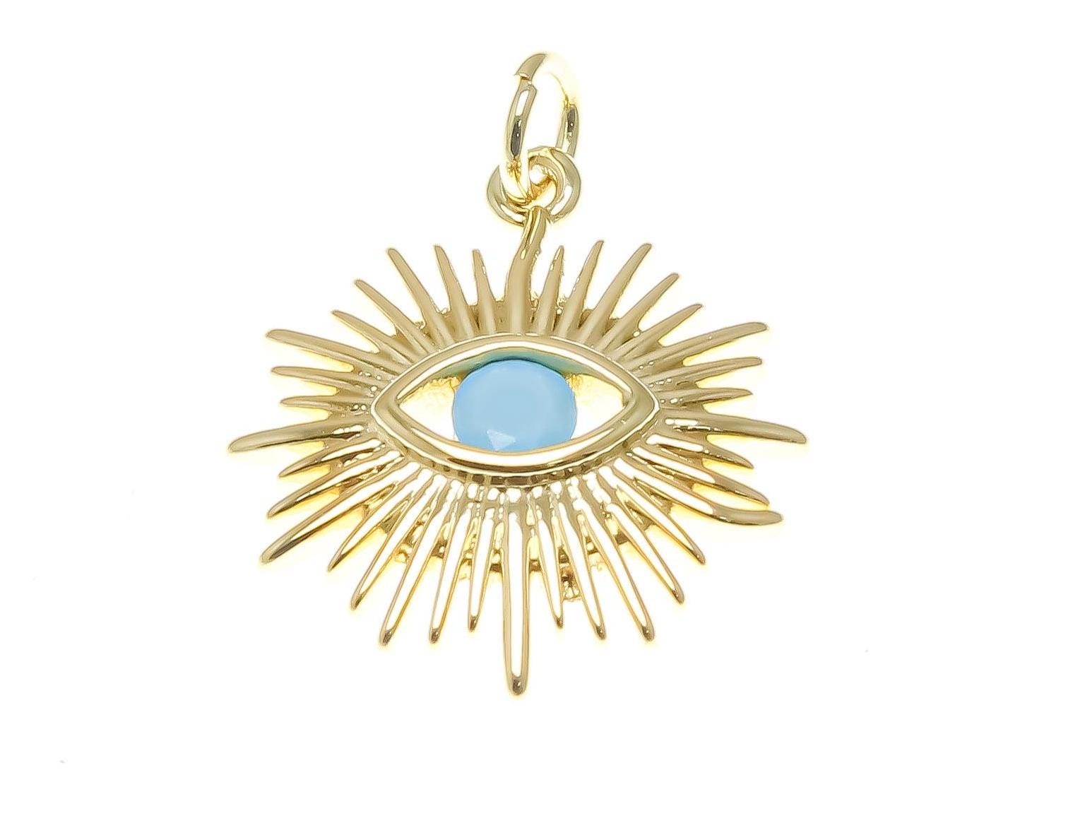 18k Gold Evil Eye Amulet Pendant,Evil Eye Charm,Evil Eye Charm, Turkish Nazar Evil Eye Gold Charm,3rd Eye Protection Charm,CPG2337