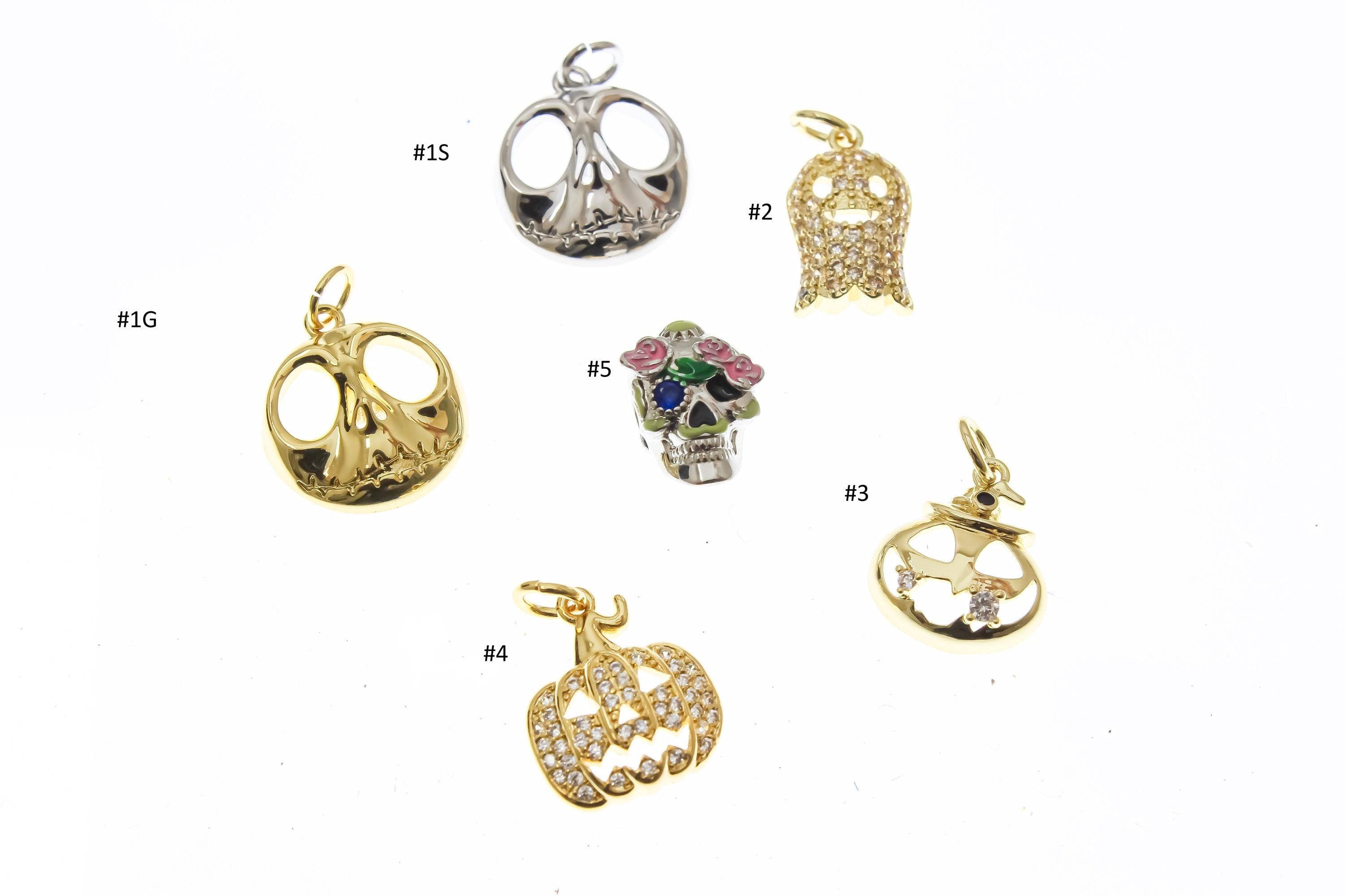 18k Gold Halloween Skull, Pumpkin & Ghost Charms
