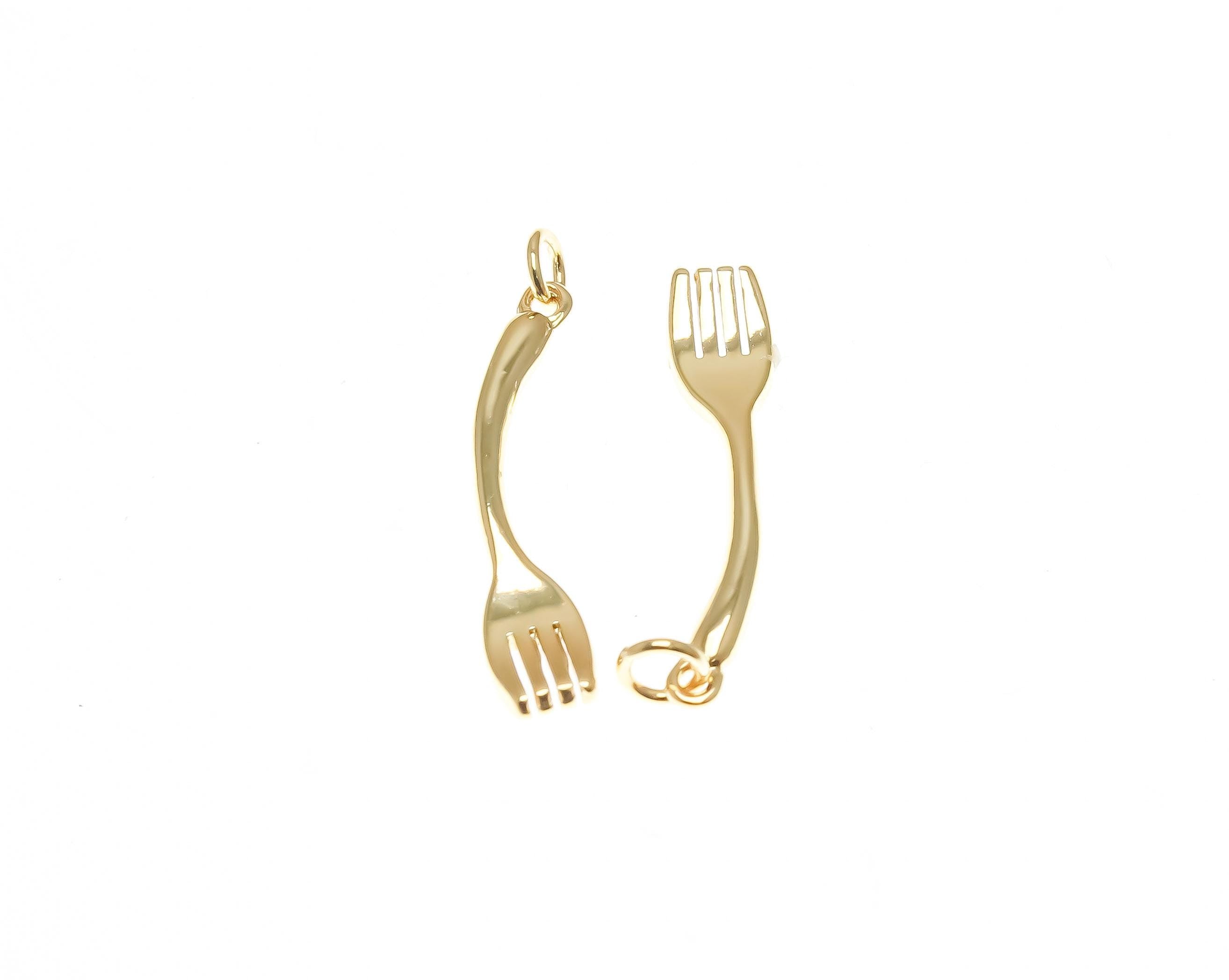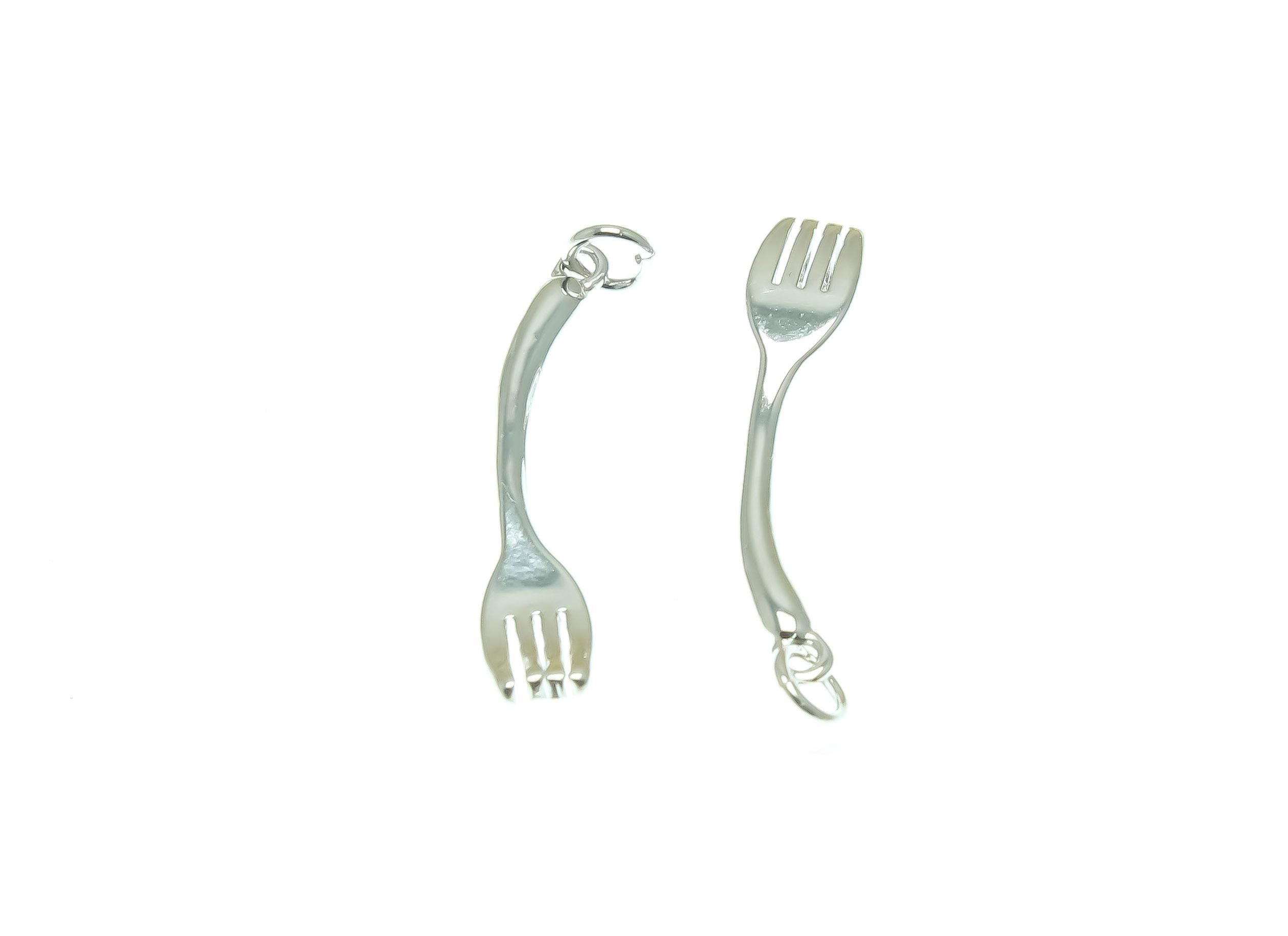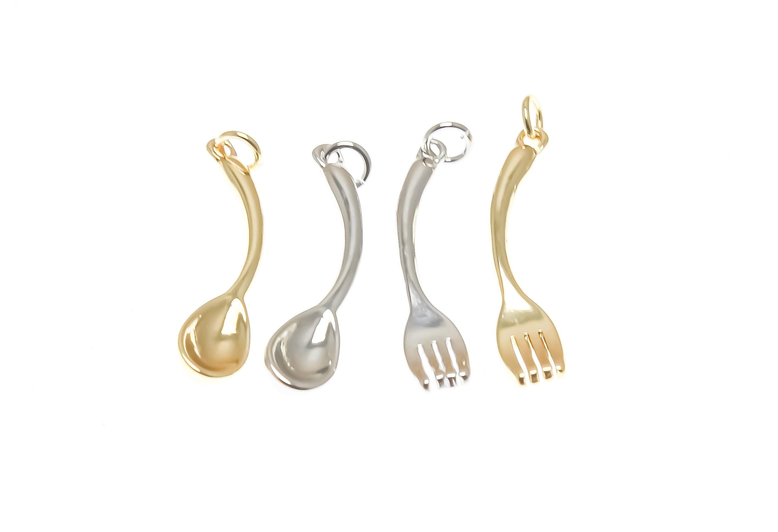 18k Gold or Silver Cutlery, Cutesy Forks or Spoons, Silver Spoon, Dainty Minimalist Charms, Great for Layering, CPG/S1370-71