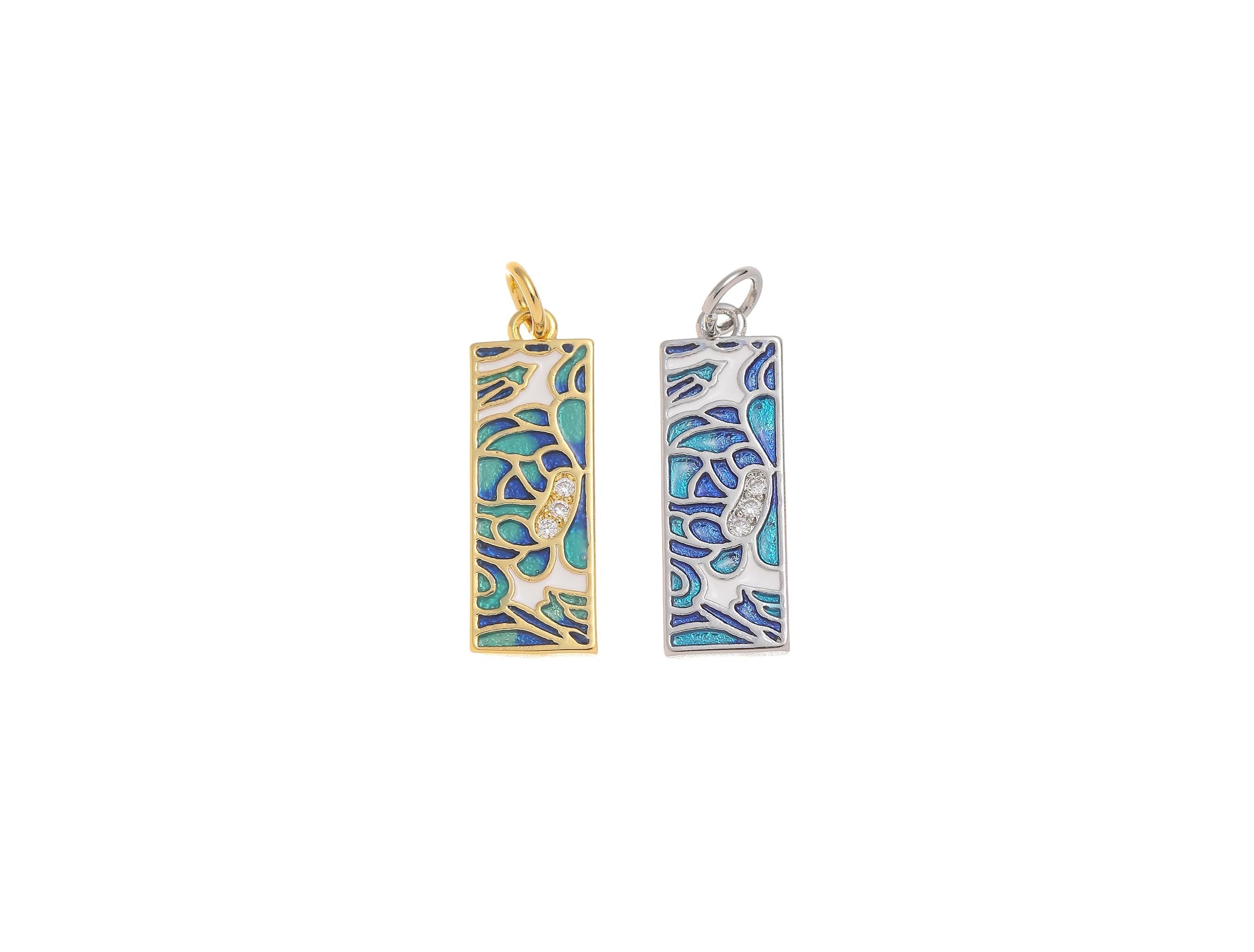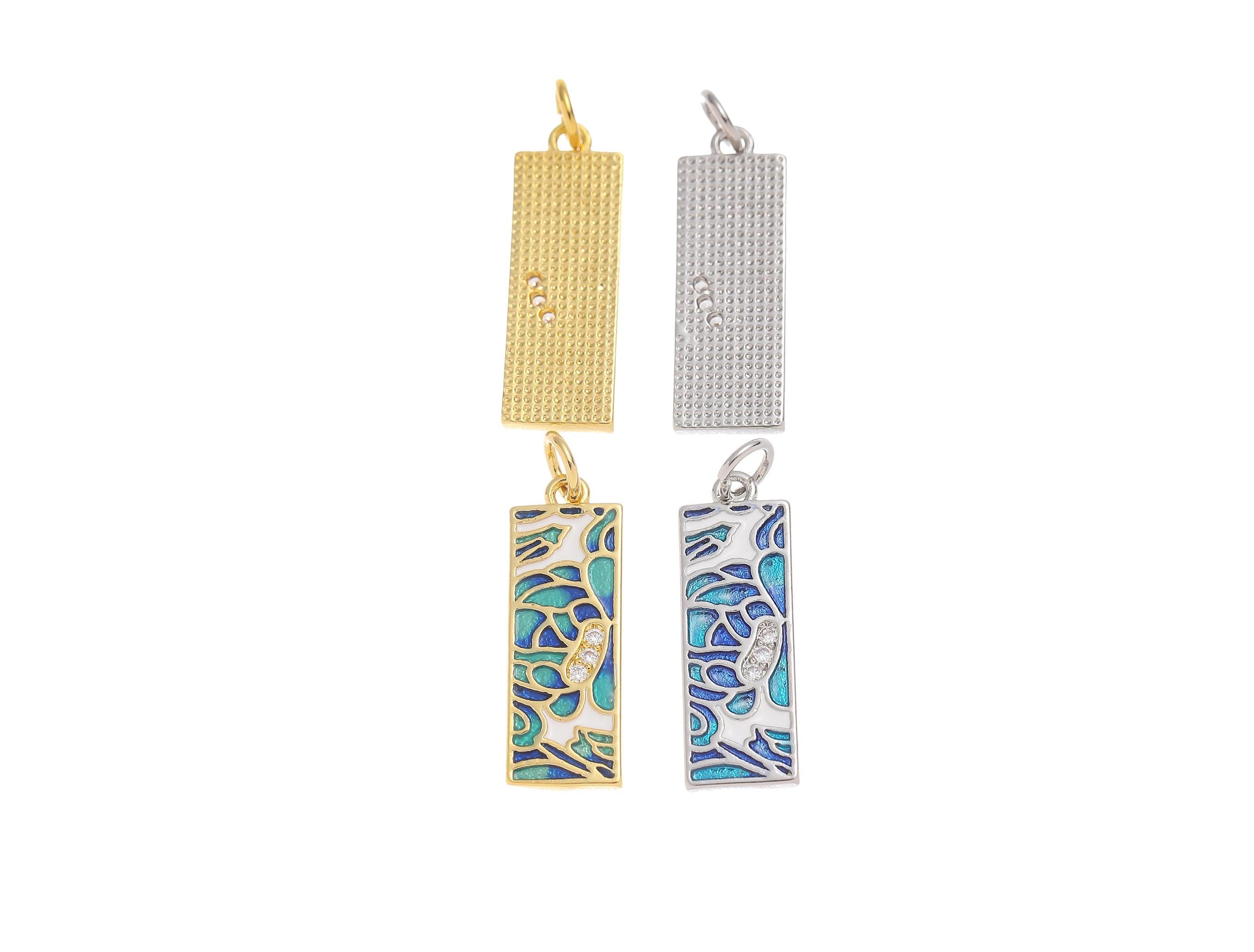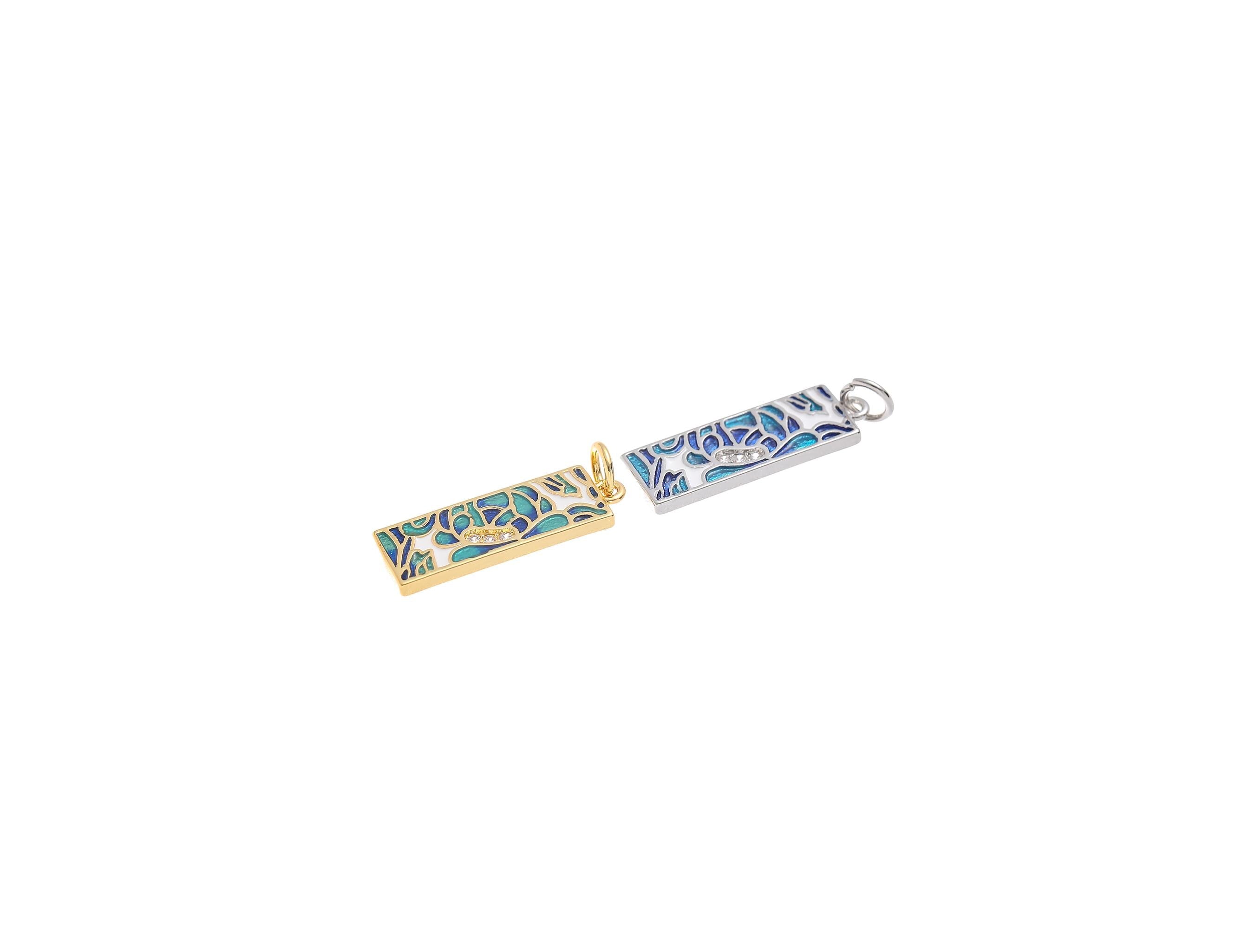 18k Gold or Silver CZ Bezel Set Shiny Rectangle Blue Mosaic Charm, Everyday wear Dainty Charm, Minimalist Jewelry, Artsy, CPG1577 CPS1577