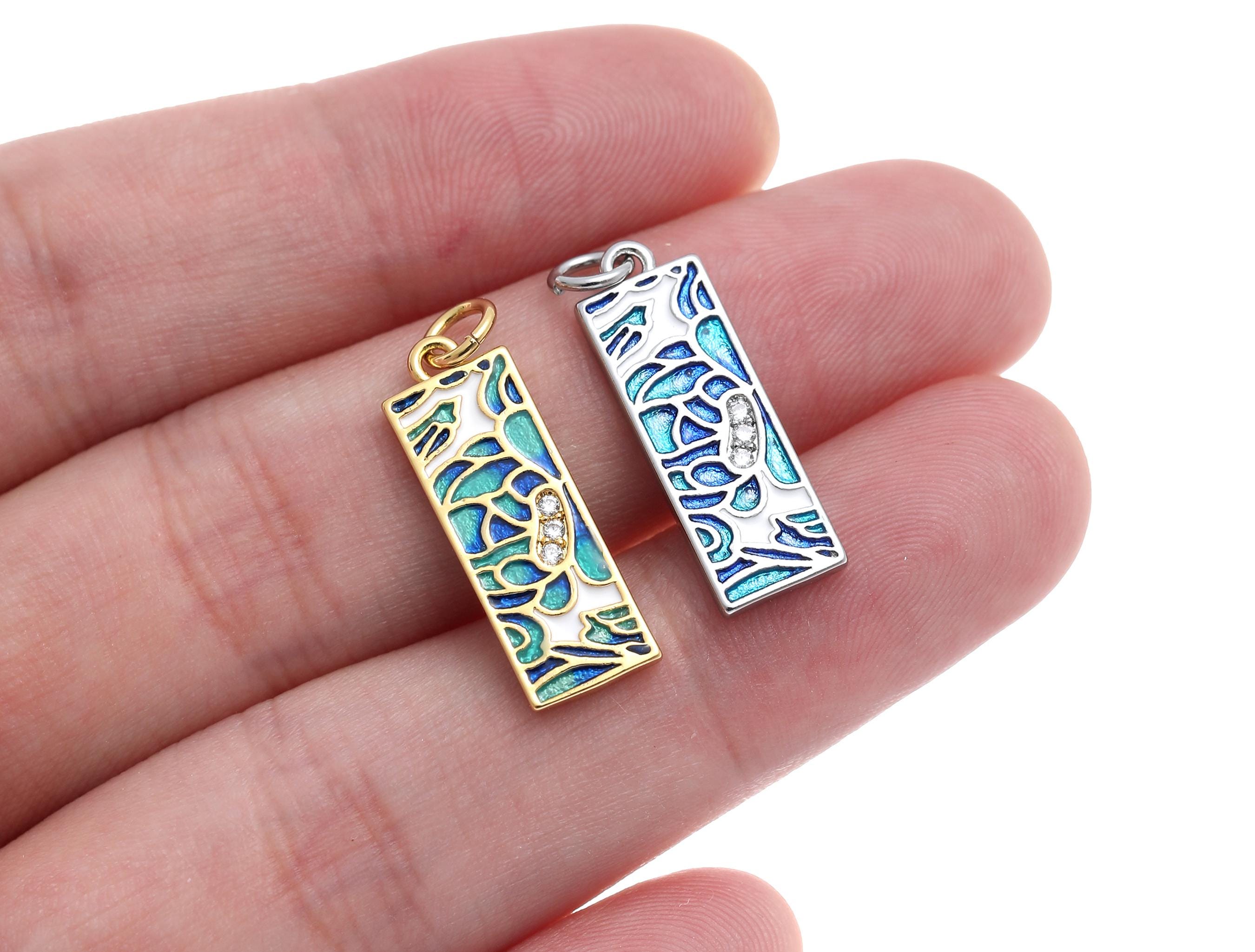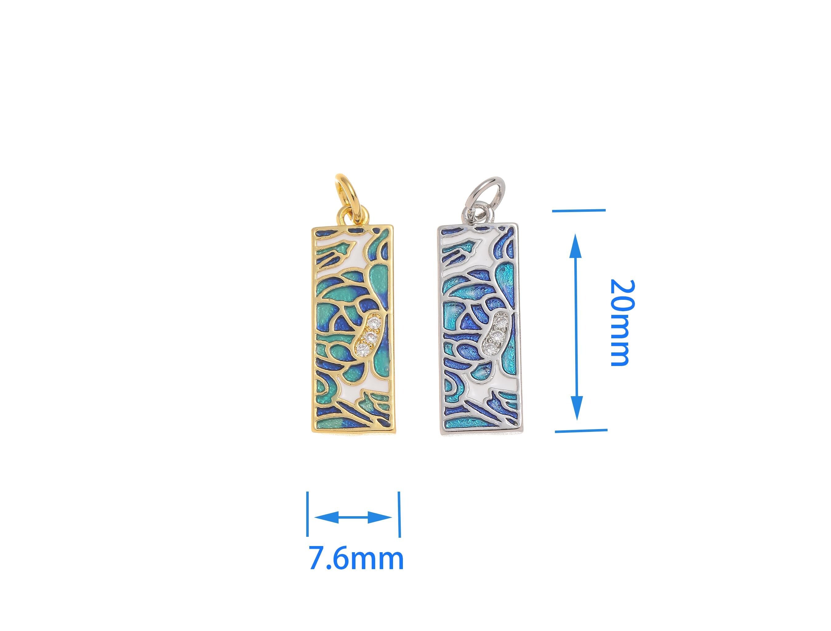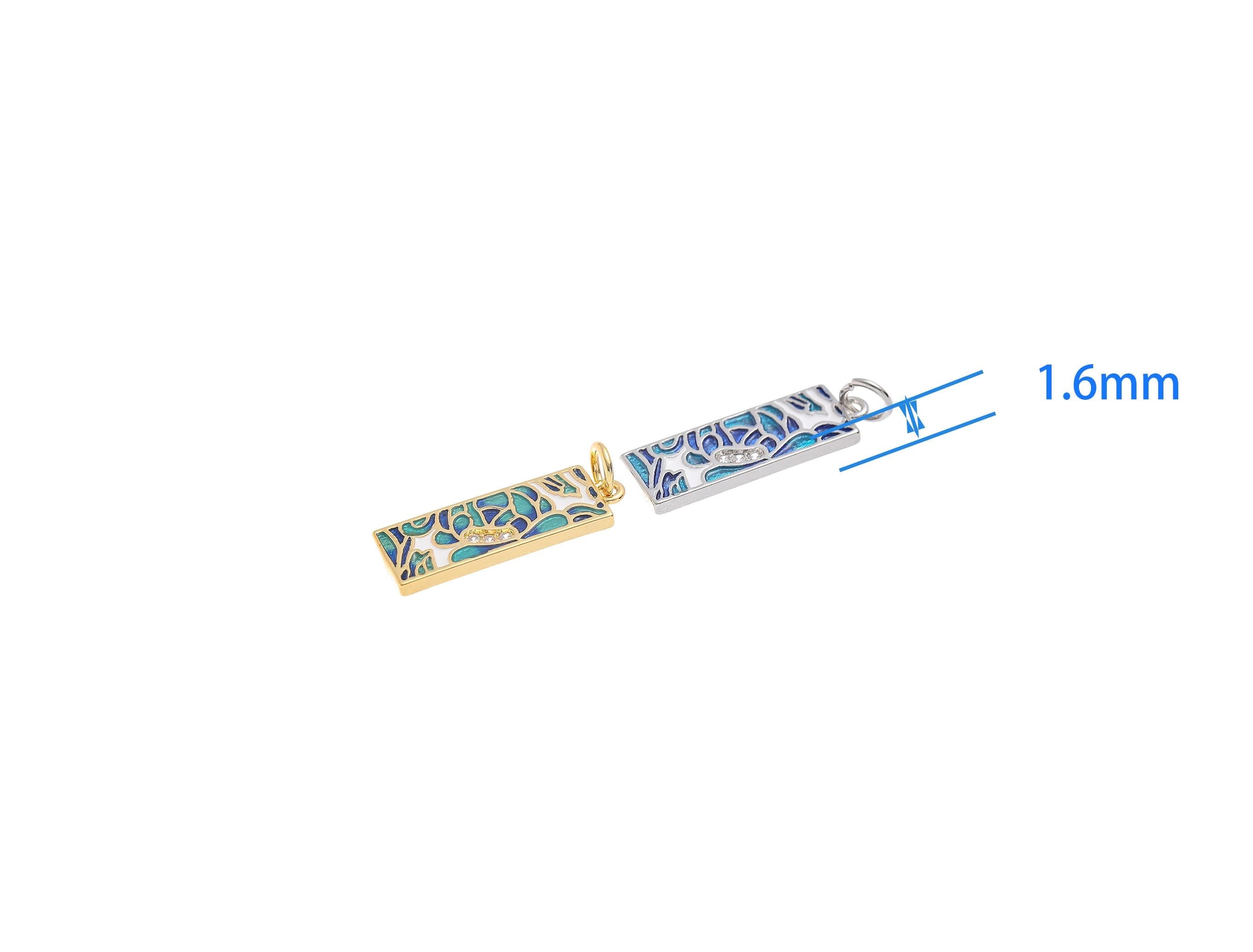 18k Gold or Silver CZ Bezel Set Shiny Rectangle Blue Mosaic Charm, Everyday wear Dainty Charm, Minimalist Jewelry, Artsy, CPG1577 CPS1577