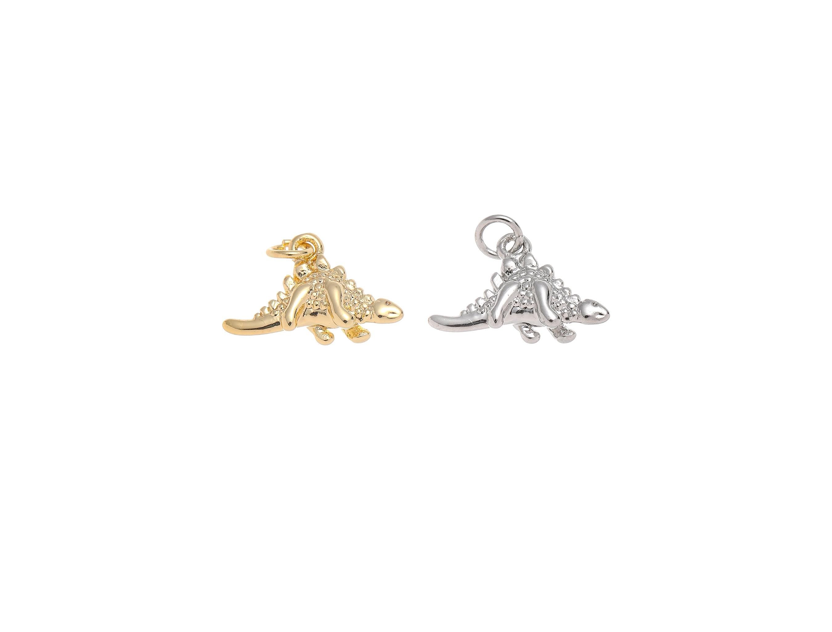 18k Gold or Silver Dinosaur, Stegosaurus, Charms for kids, Dino Charm, CPG1509, CPS1509