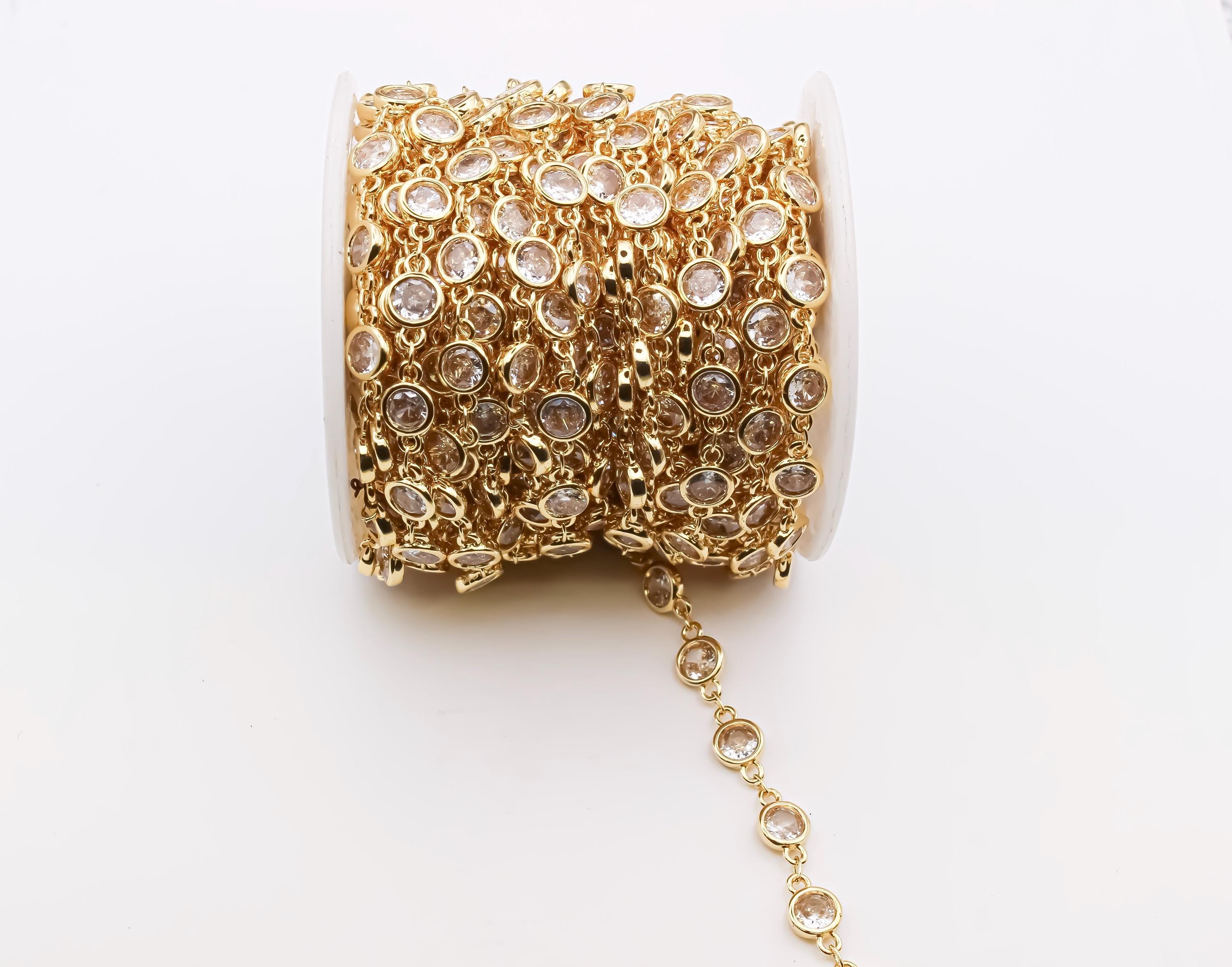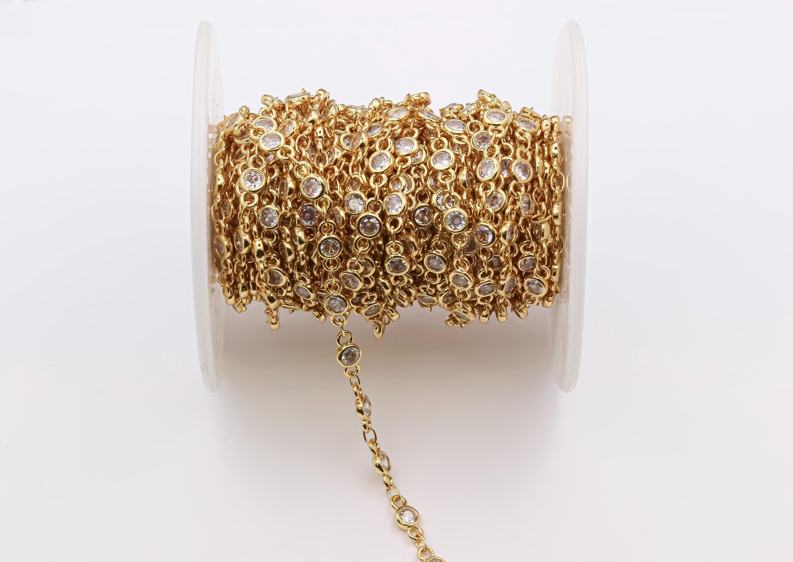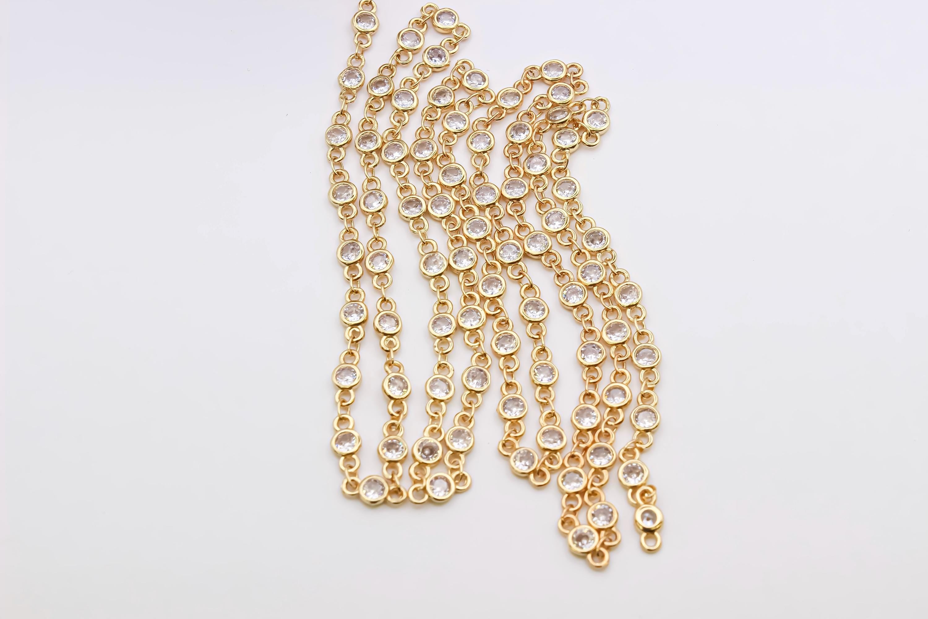 18k Gold Or Silver Plated CZ Diamond by the ft Round Shape Chain, CZ Pave, for Necklace/Bracelet, 4, 5, or 6 mm, CHG1063-1065