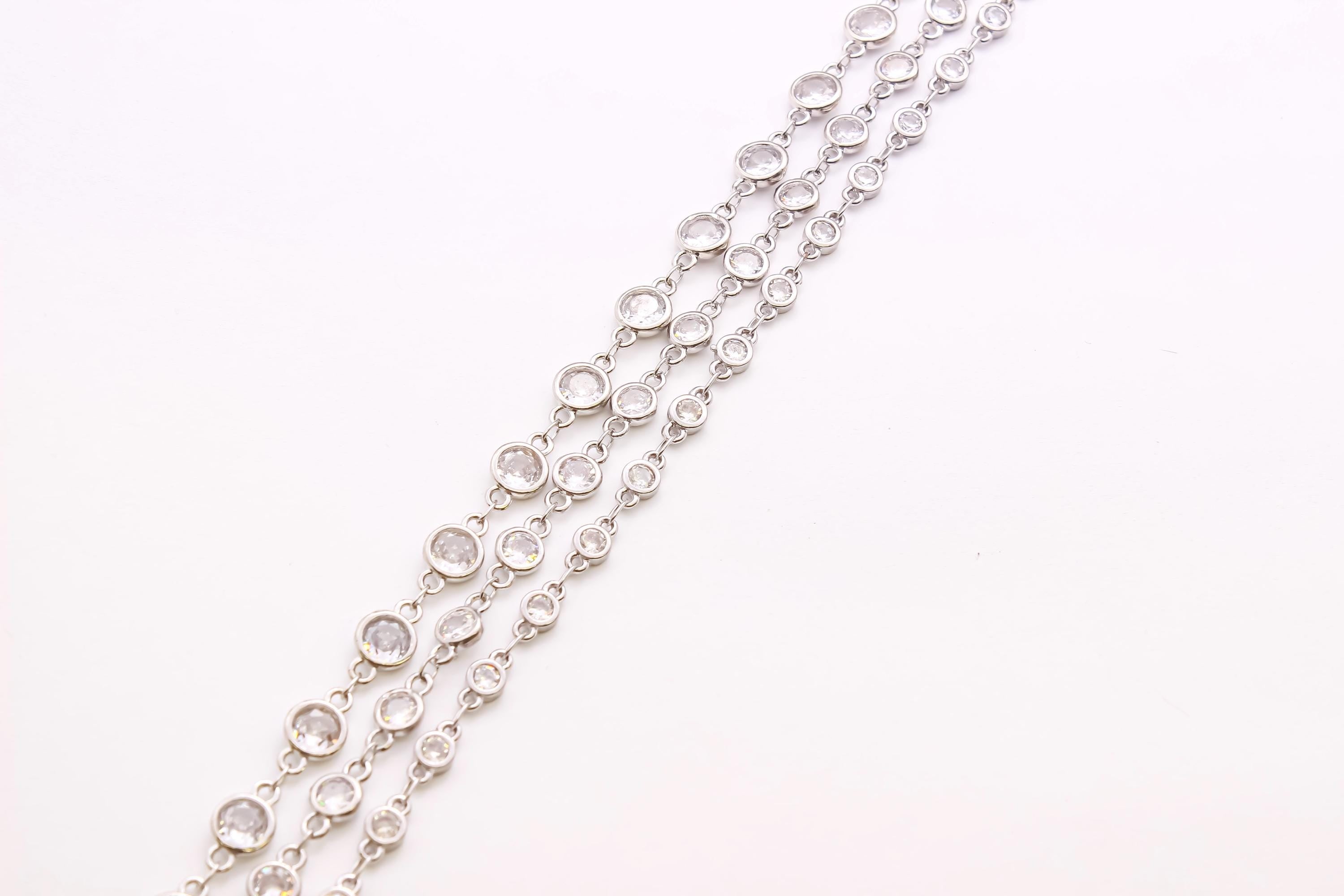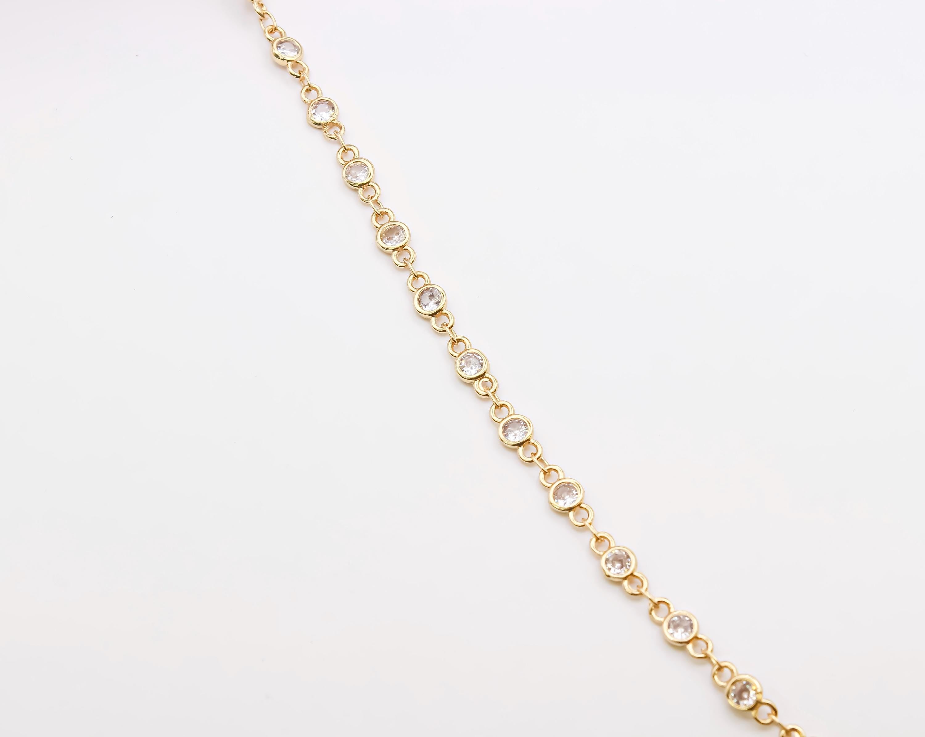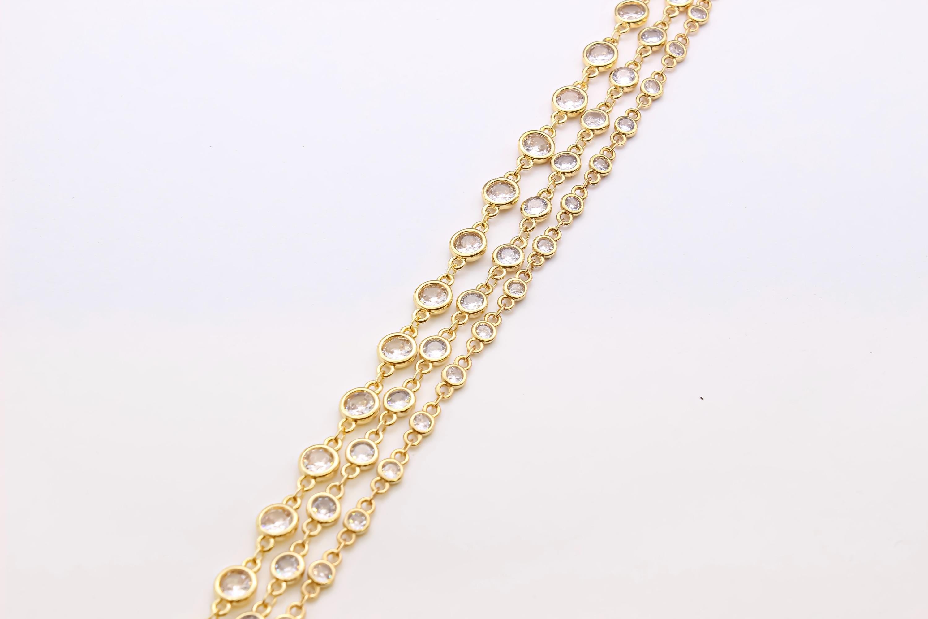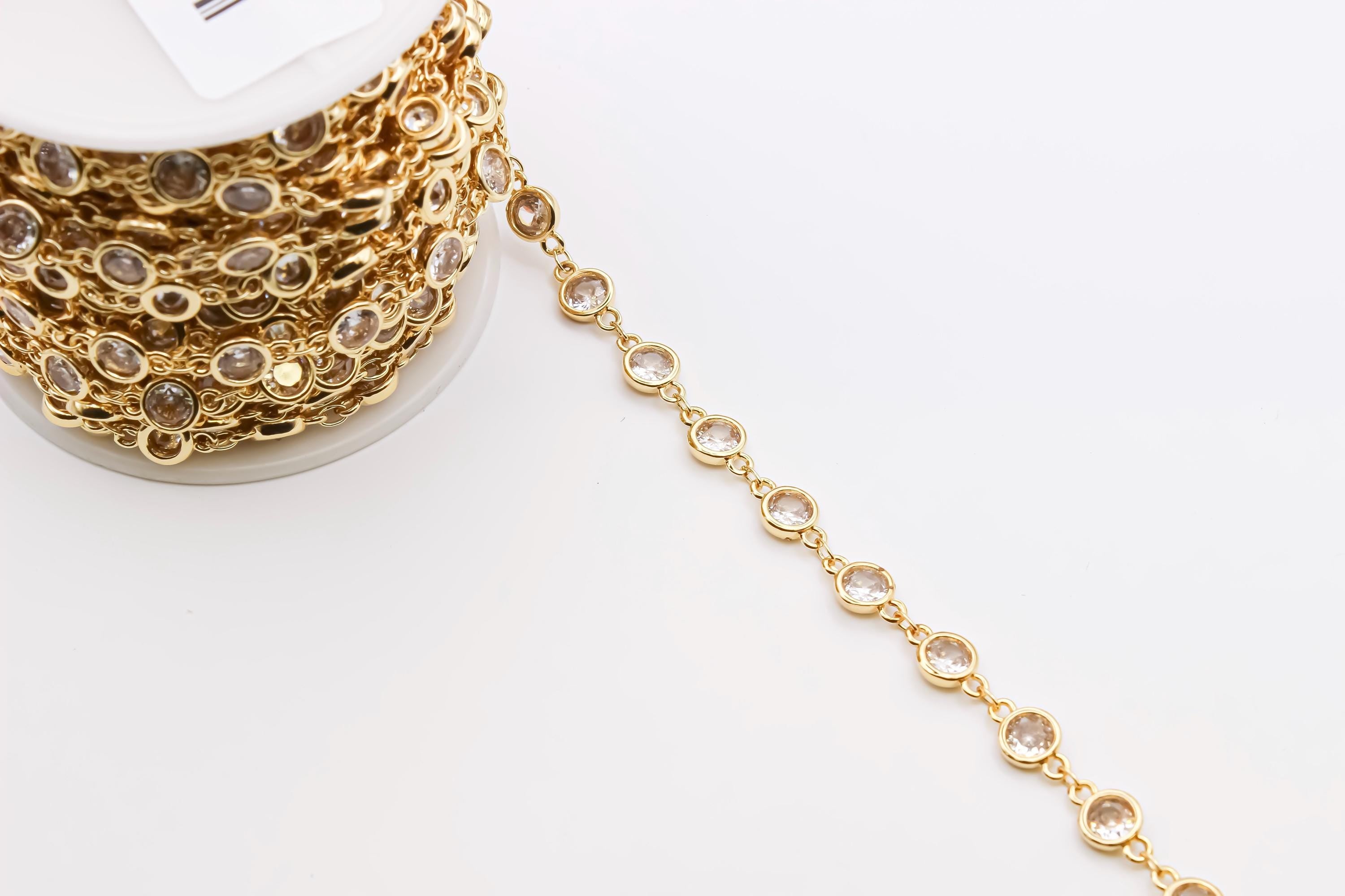 18k Gold Or Silver Plated CZ Diamond by the ft Round Shape Chain, CZ Pave, for Necklace/Bracelet, 4, 5, or 6 mm, CHG1063-1065