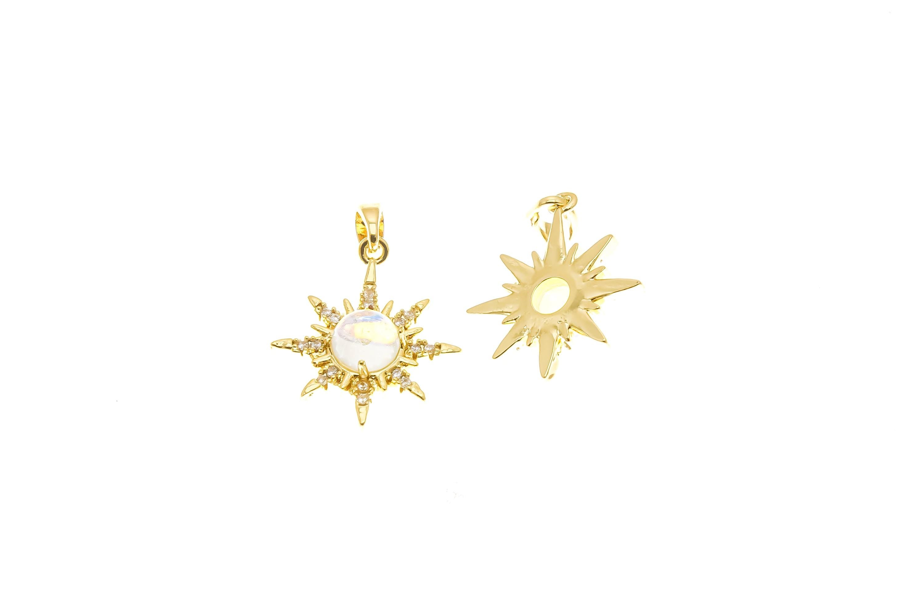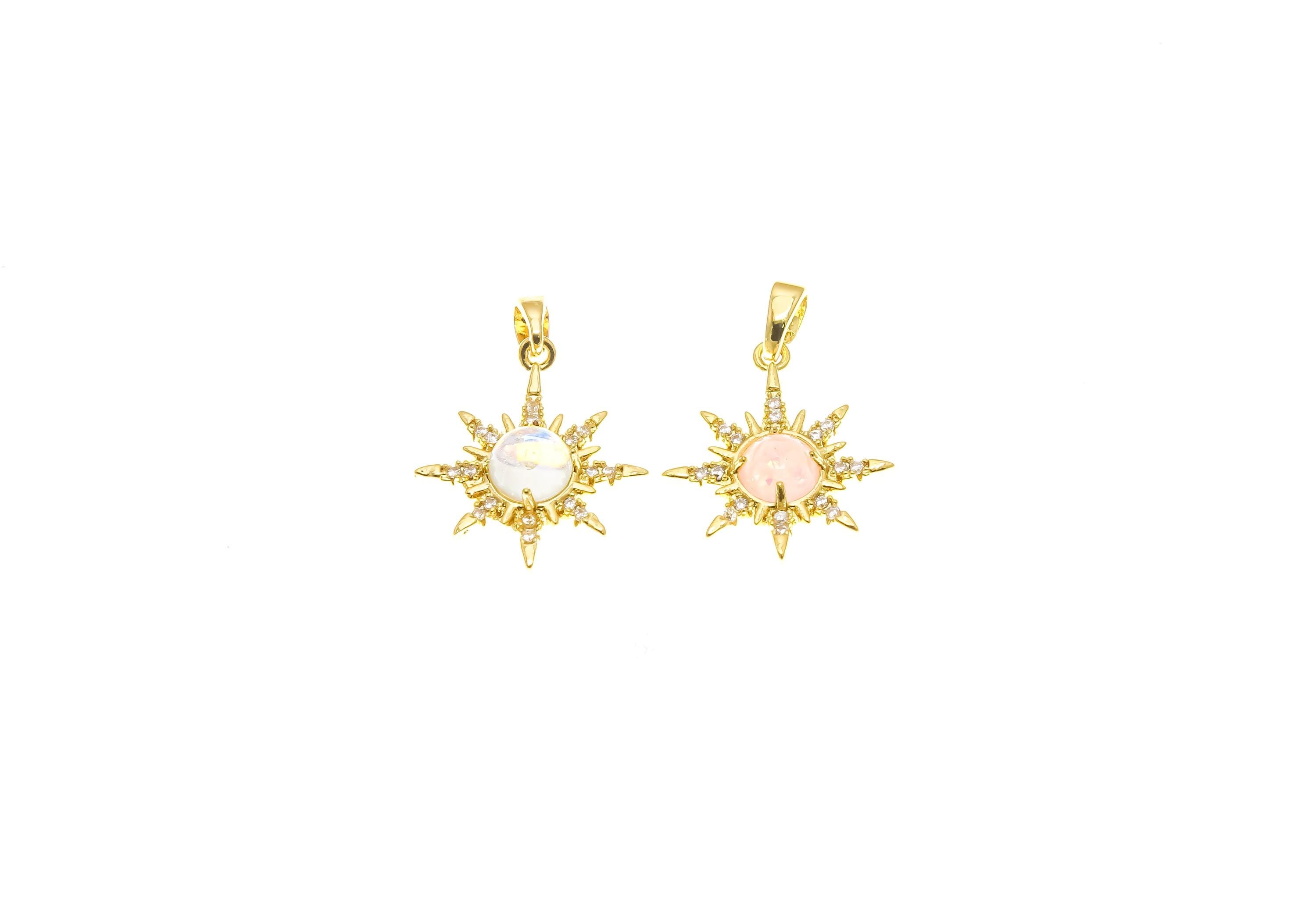 18k Gold Pink or Clear Opalite Starburst CZ Charm, Starburst CZ Pendant, Opalite charm, Cute Charms, CPG2267P-B
