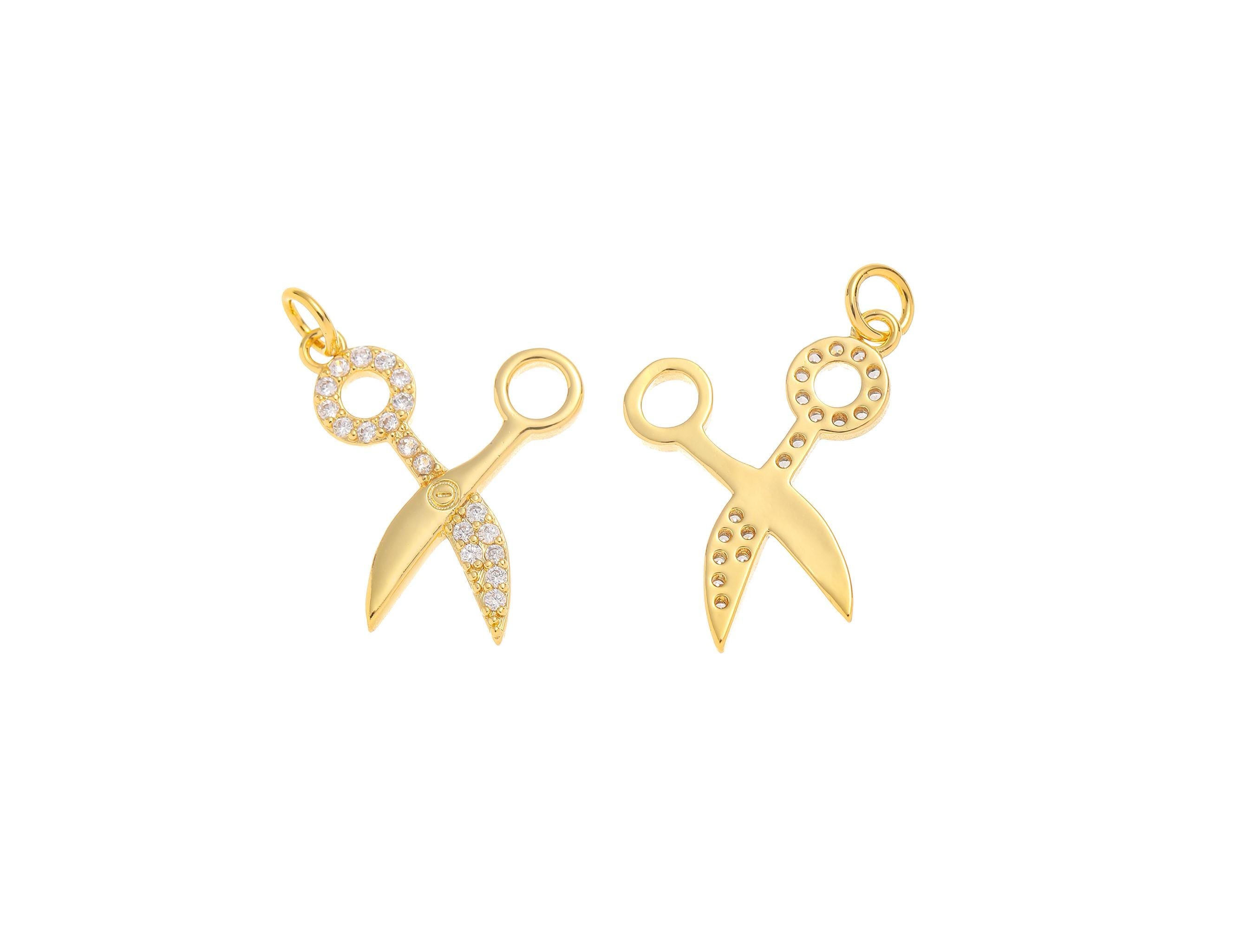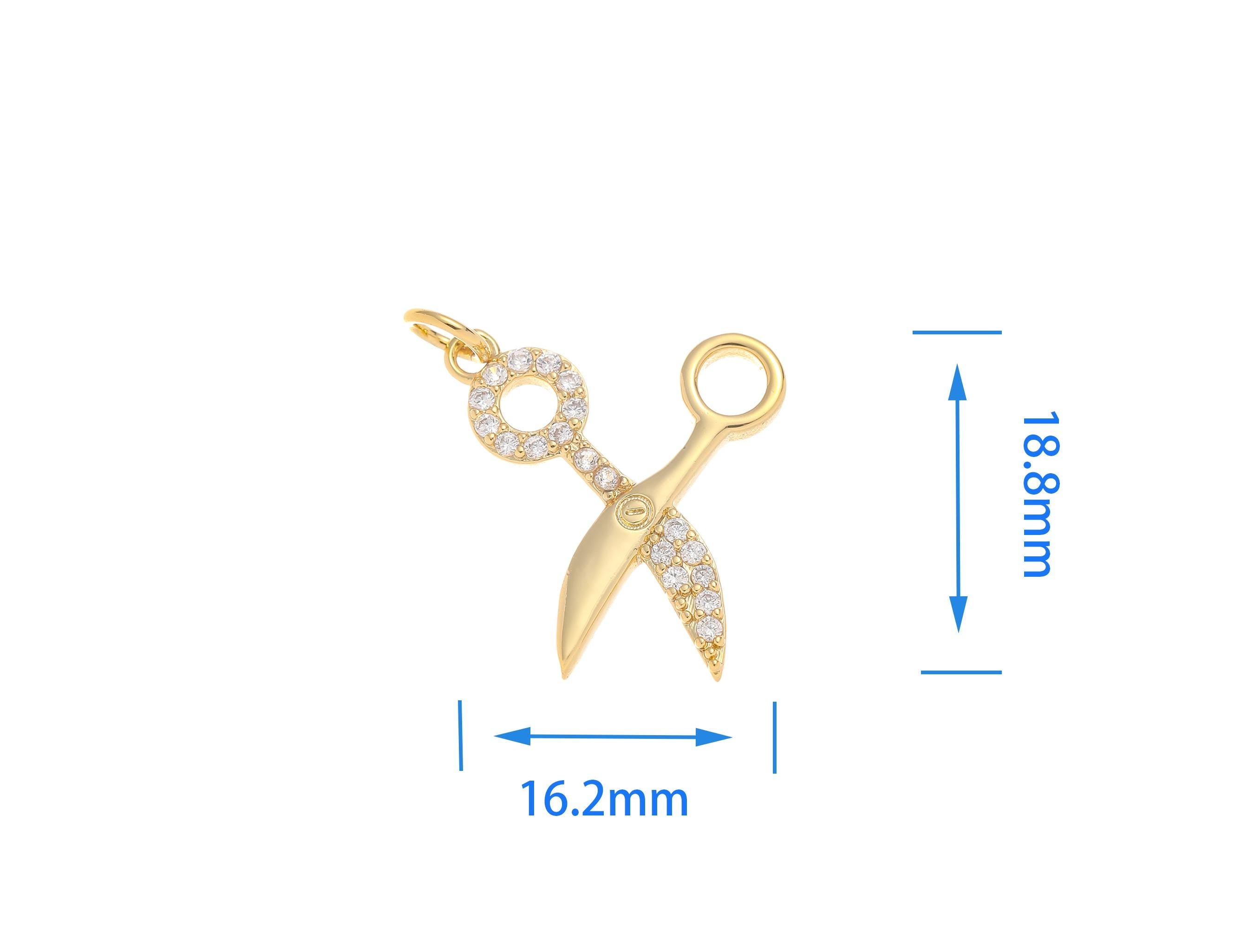 18k Gold Plated Scissor Pendant Charm, CZ Dainty scissor charms, Charms for hair stylist or hairdresser, Pendant Bracelet Necklace, CPG1586