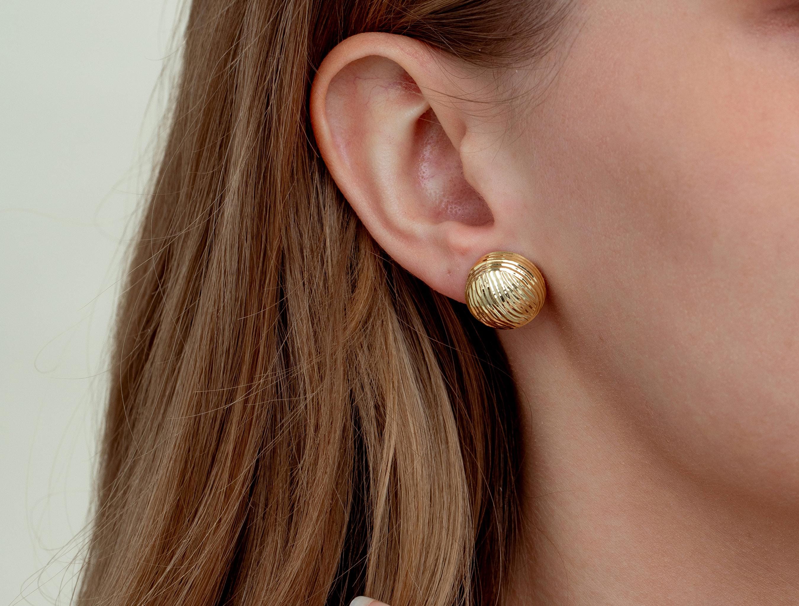 18k Gold Round Earrings, Gold Jewelry, Gifts for Her, Statement Earrings, Lightweight Earrings, Gifts for Her Bridal jewelry, ERG428