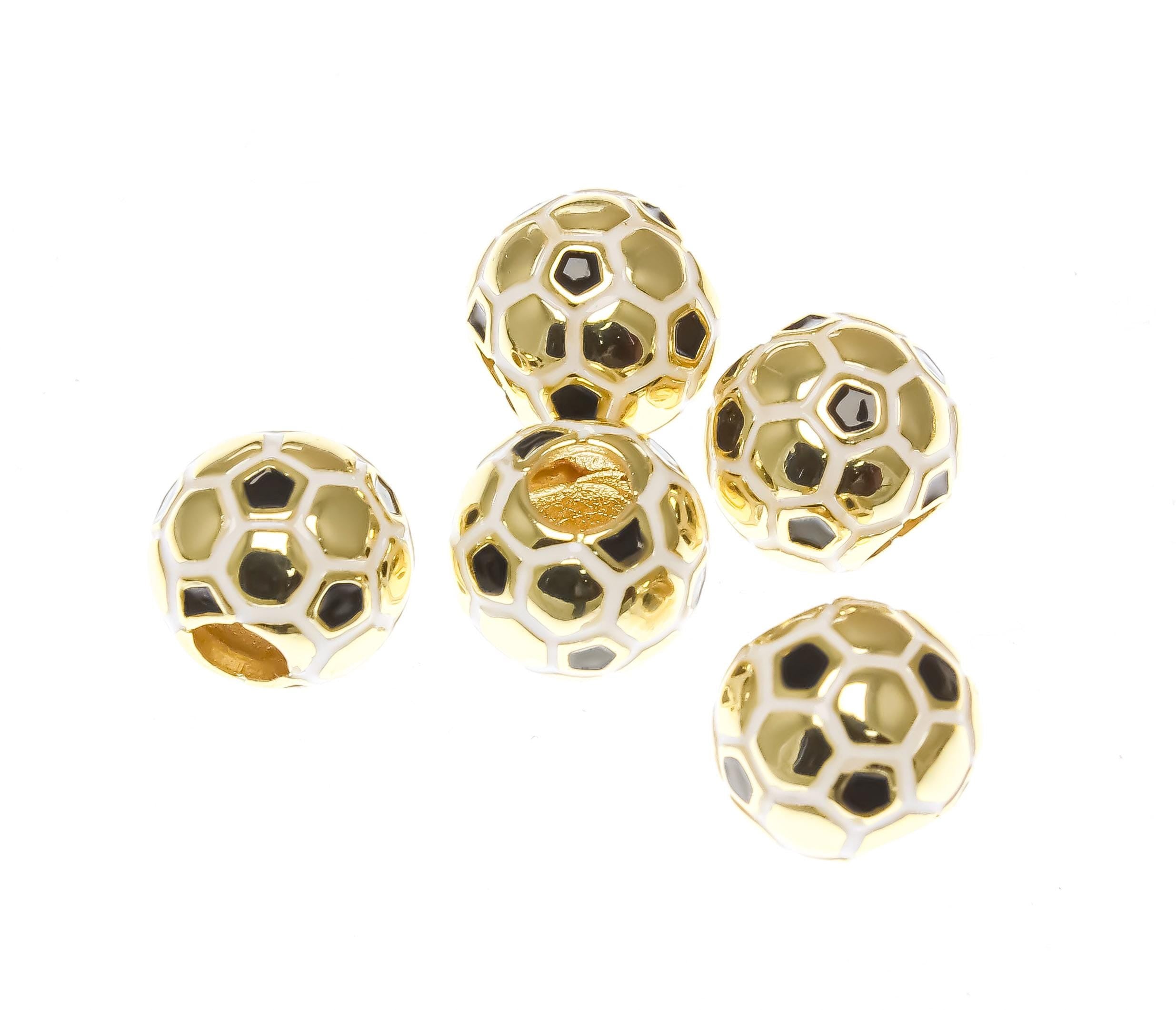 18k Gold Soccer Slider, White and Black Sports Charms, Gift For Soccer Players, Soccer Ball, Soccer ball Bead, 3D Soccer Ball Bead, SPG144