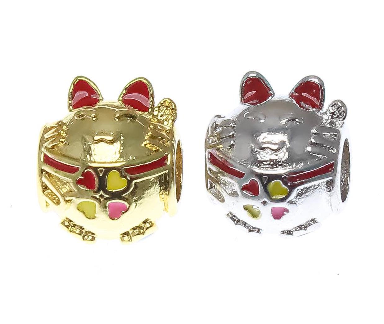 18k Good Luck Cat Spacer Gold or Silver, Maneki-Neko, Lucky Cat, Money Cat, Good Luck Cat, SPG096