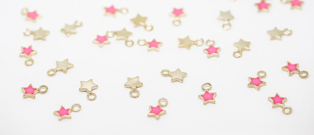 20 pcs of Gold Enamel Stars black, white, light yellow, turquoise, hot pink, baby pink, red, navy blue CPG570