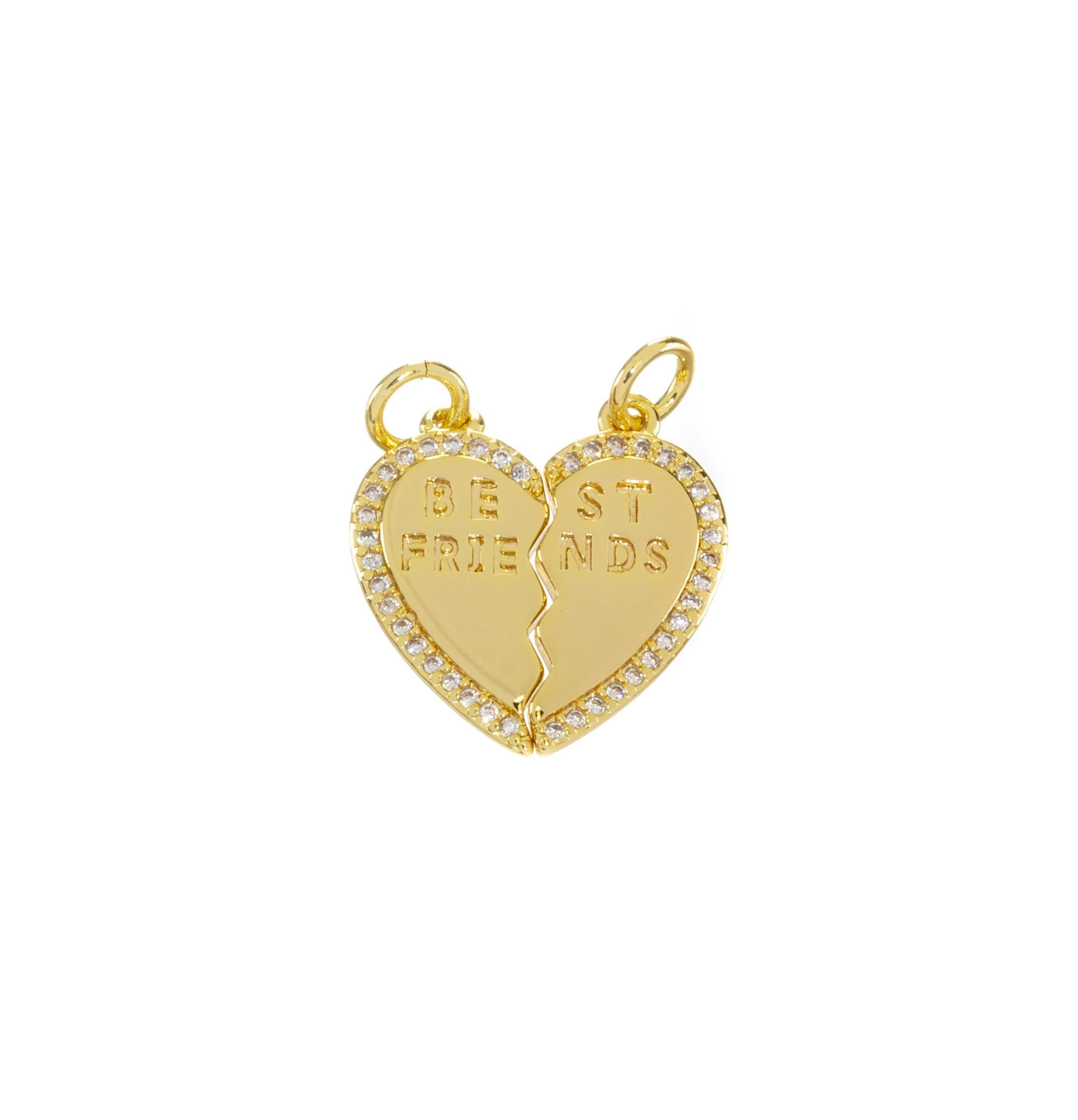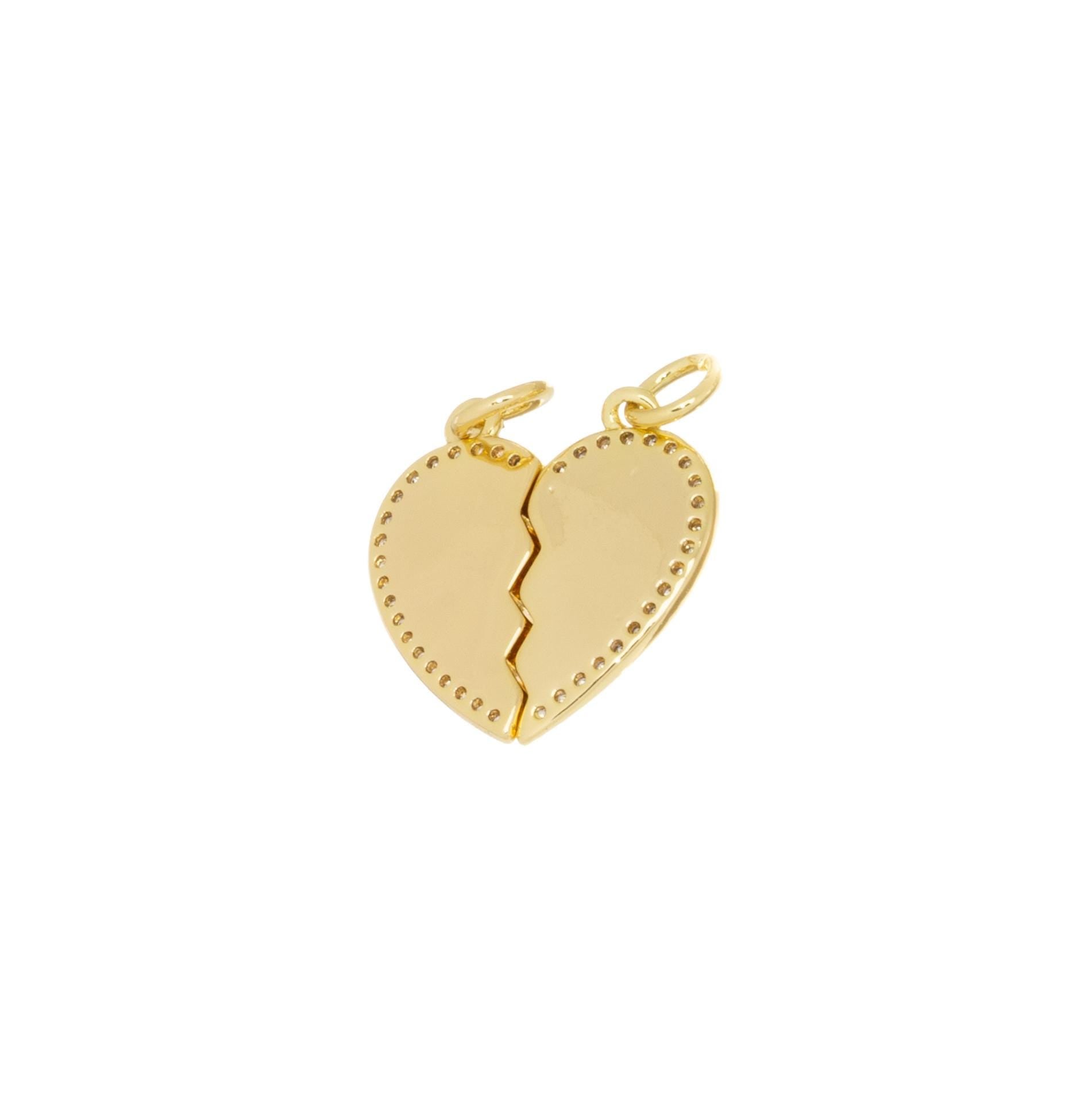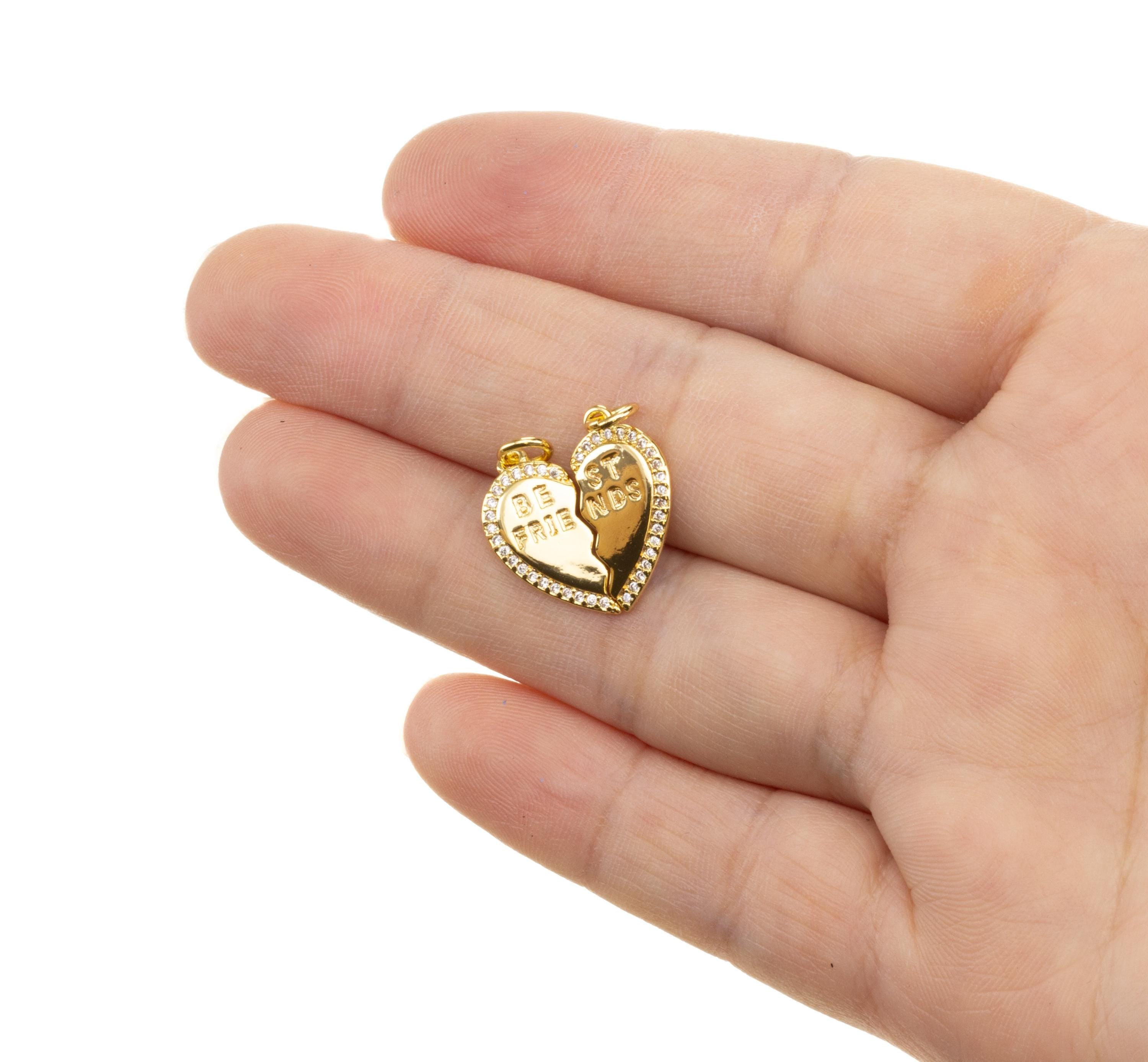 Best Friend Two Piece His And Hers Heart CZ Charm,Gold Two Piece Heart Charm,Gift For Girlfriend Or Boyfriend,Valentine's Day Gift,CPG784