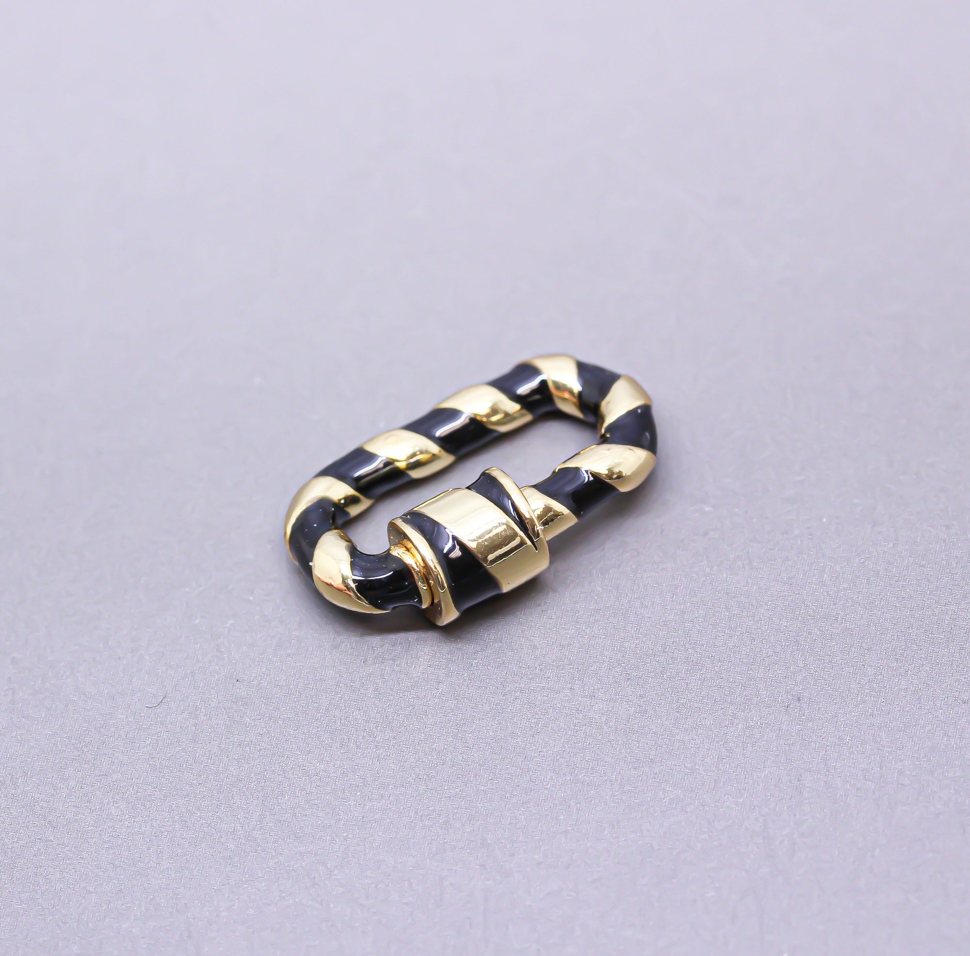Black/Gold Enamel 13x19mm Small Candy Cane Carabiner lock, Screw Clasp, Screw on Clasp, WHOLESALE, CLG084