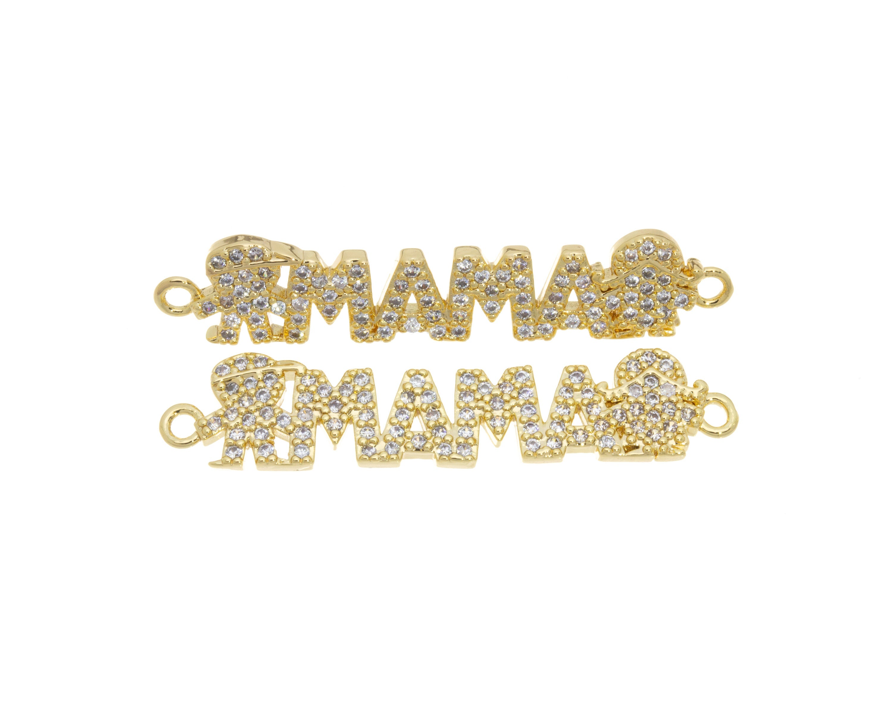 Boy And Girl With MAMA Charm For Bracelet,Gold Mama And Boy Girl Connector Charm,Mother’s Day Gift,Mama And Kids Pave CZ Charm,CNG046