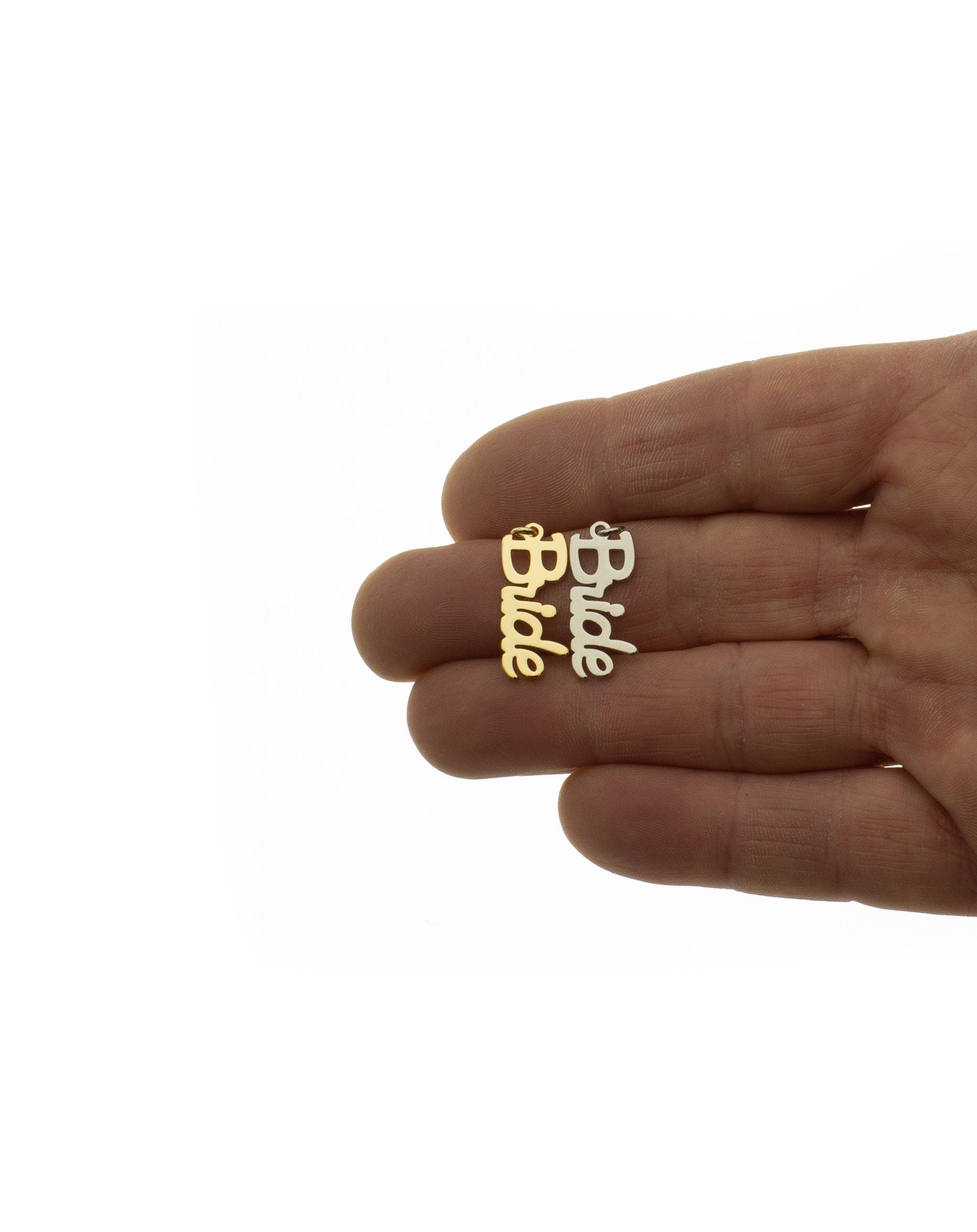 Bride Monogram Gold or Silver Charm, Dainty Monogram Charm For A Bride ,Silver And Gold Bride Word Charms,Gold Bride Charms,CPG064,CPS064