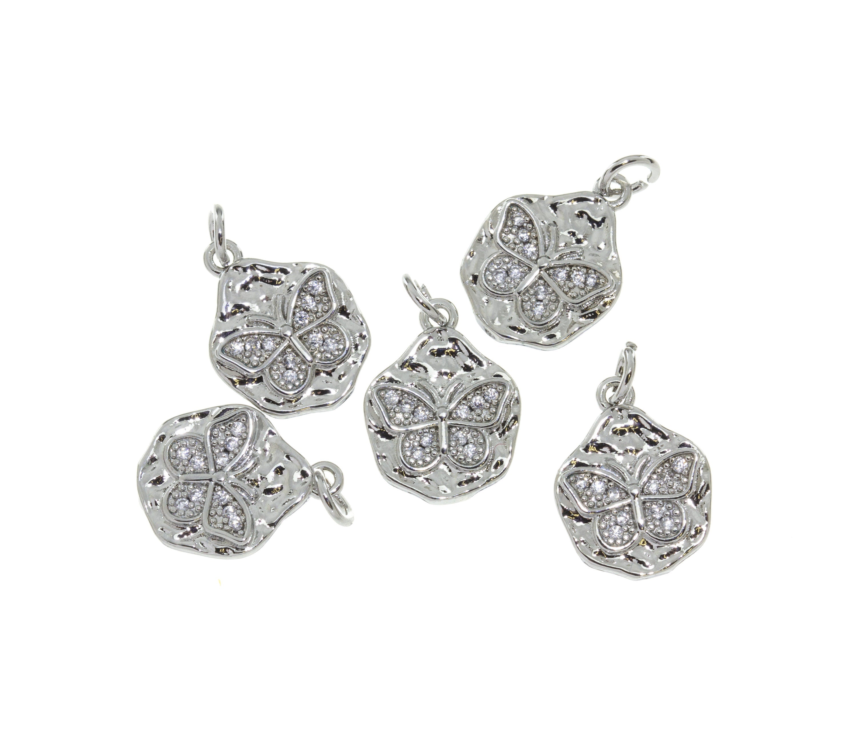 Butterfly Charm Pave With CZ,Gold or Silver Micro Pave CZ Charm,14K Gold Plated Dainty Micro Pave CZ Charm,CPG179, CPS179