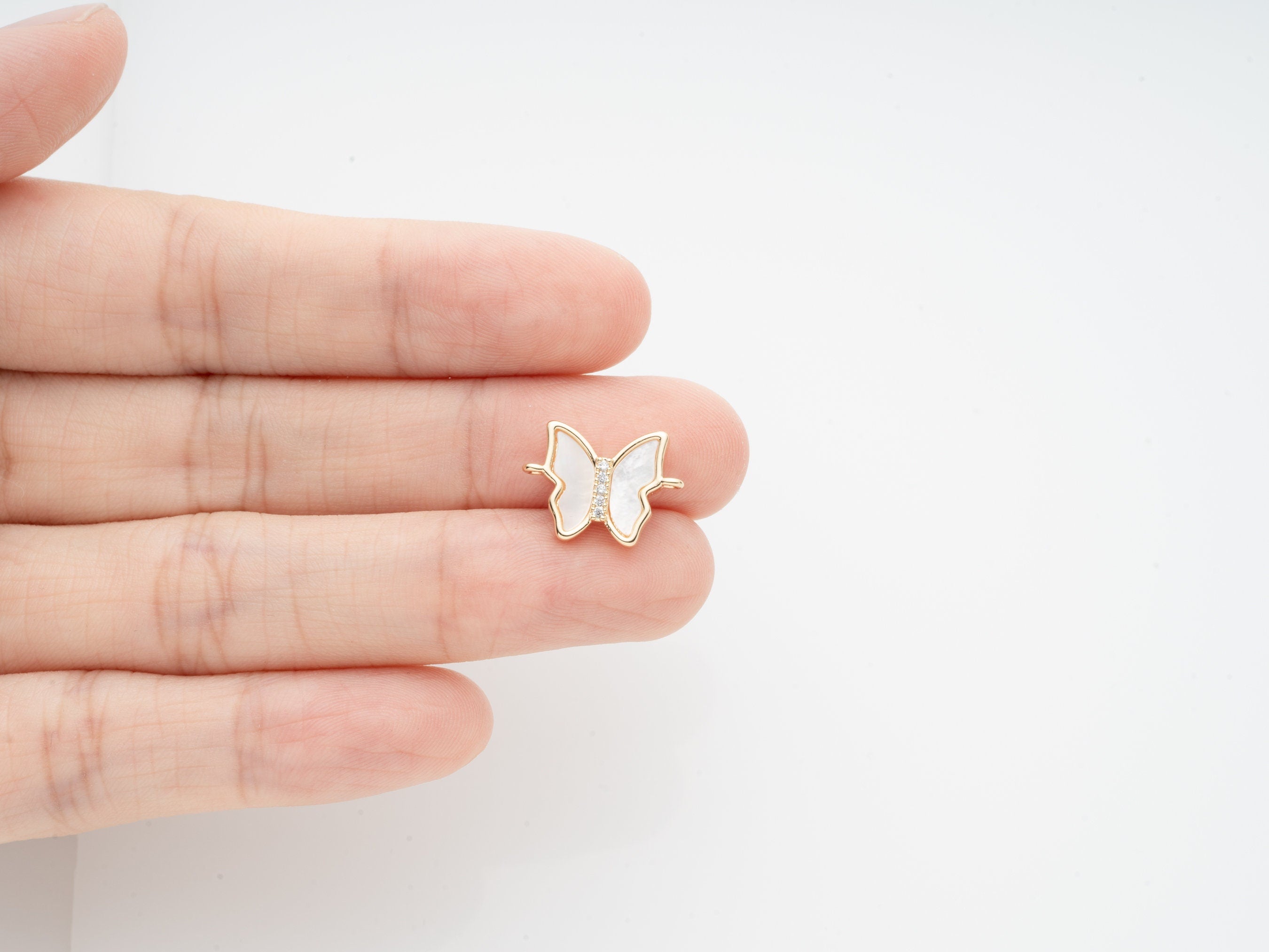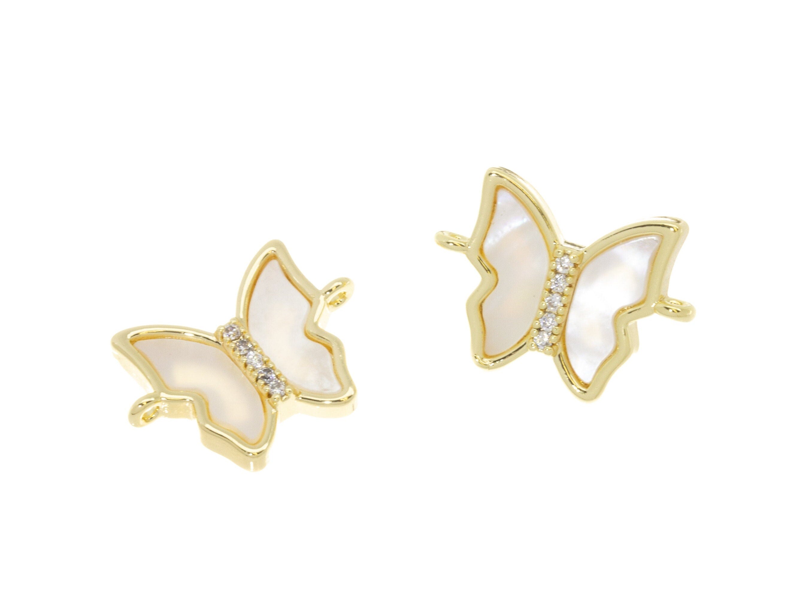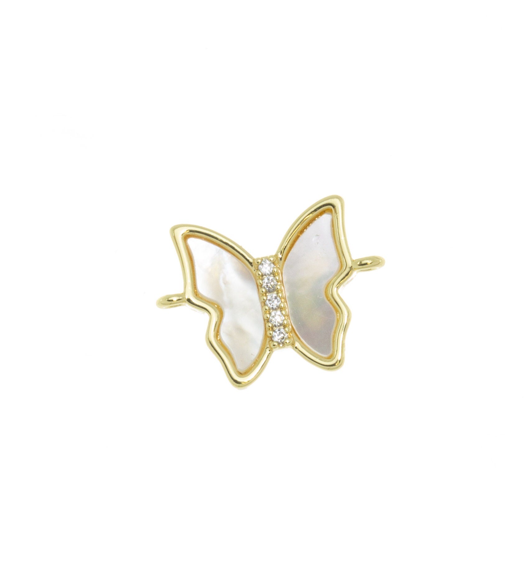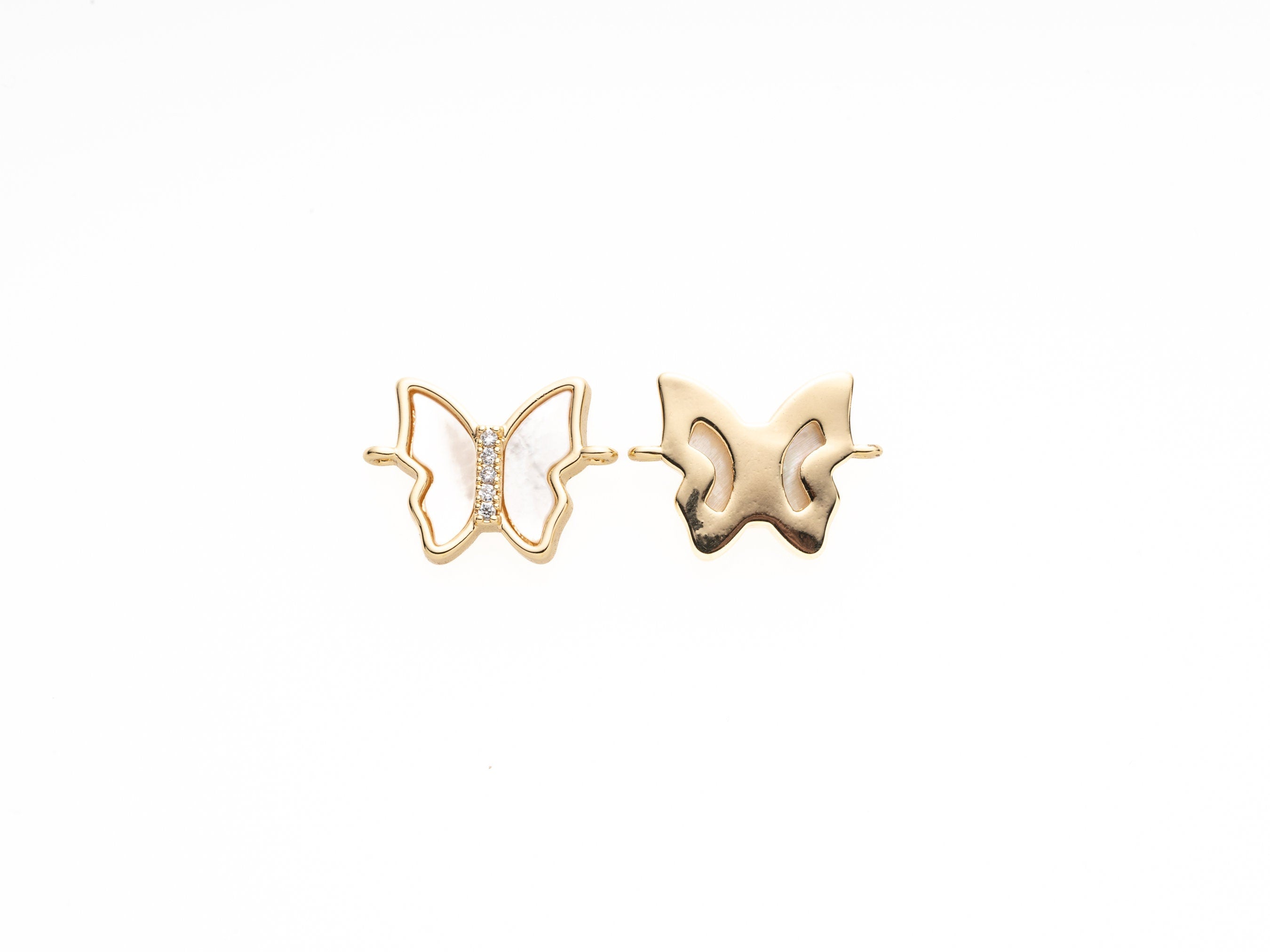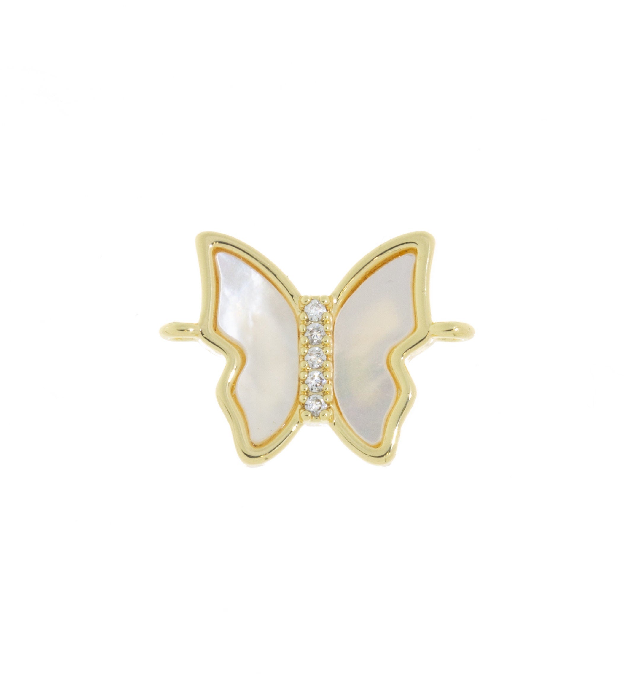 Butterfly Connector Charm,Gold Inlay MOP Butterfly CZ Connector Charm,Pave Butterfly Connector For Jewelry Making,CNG010