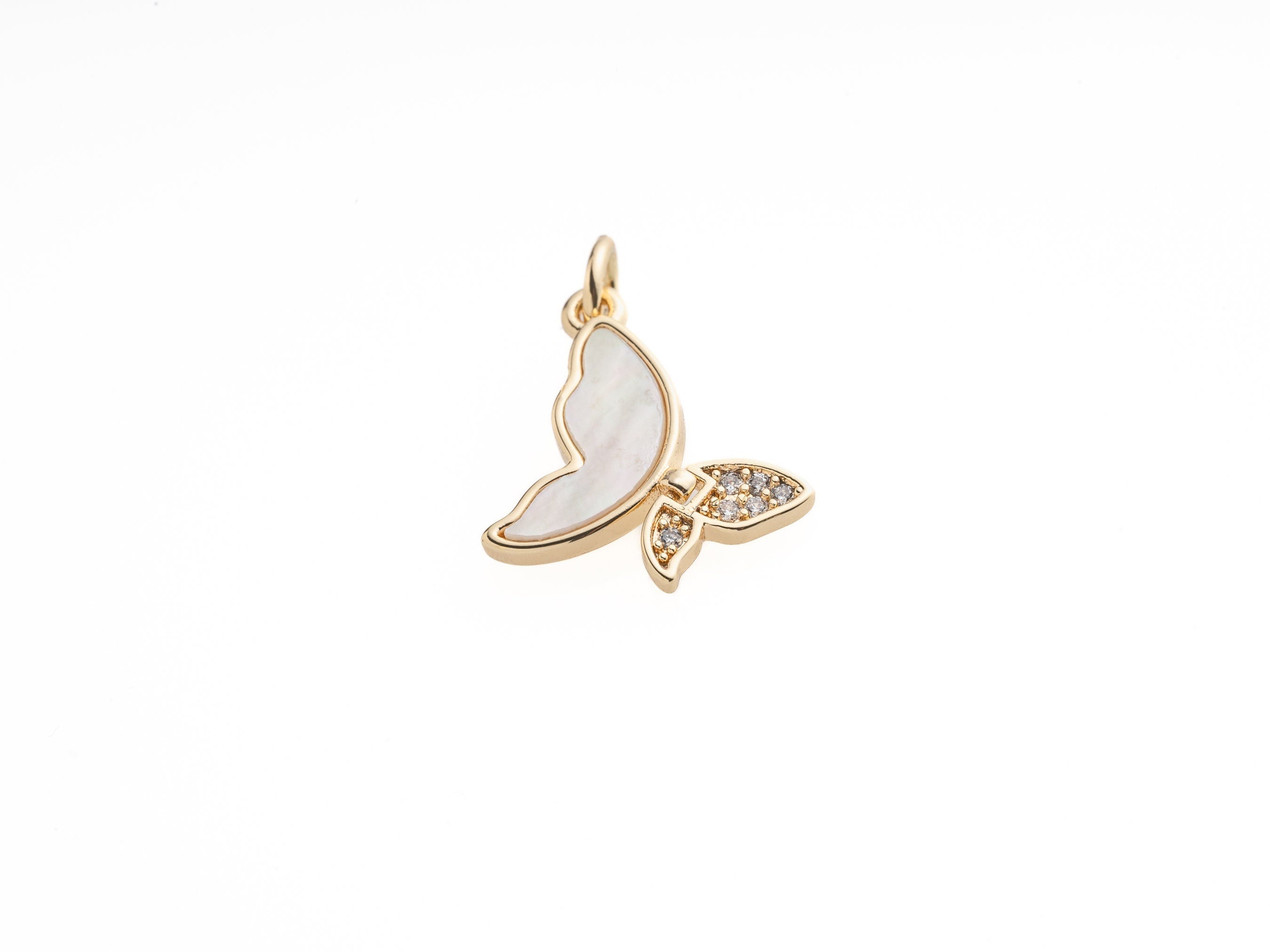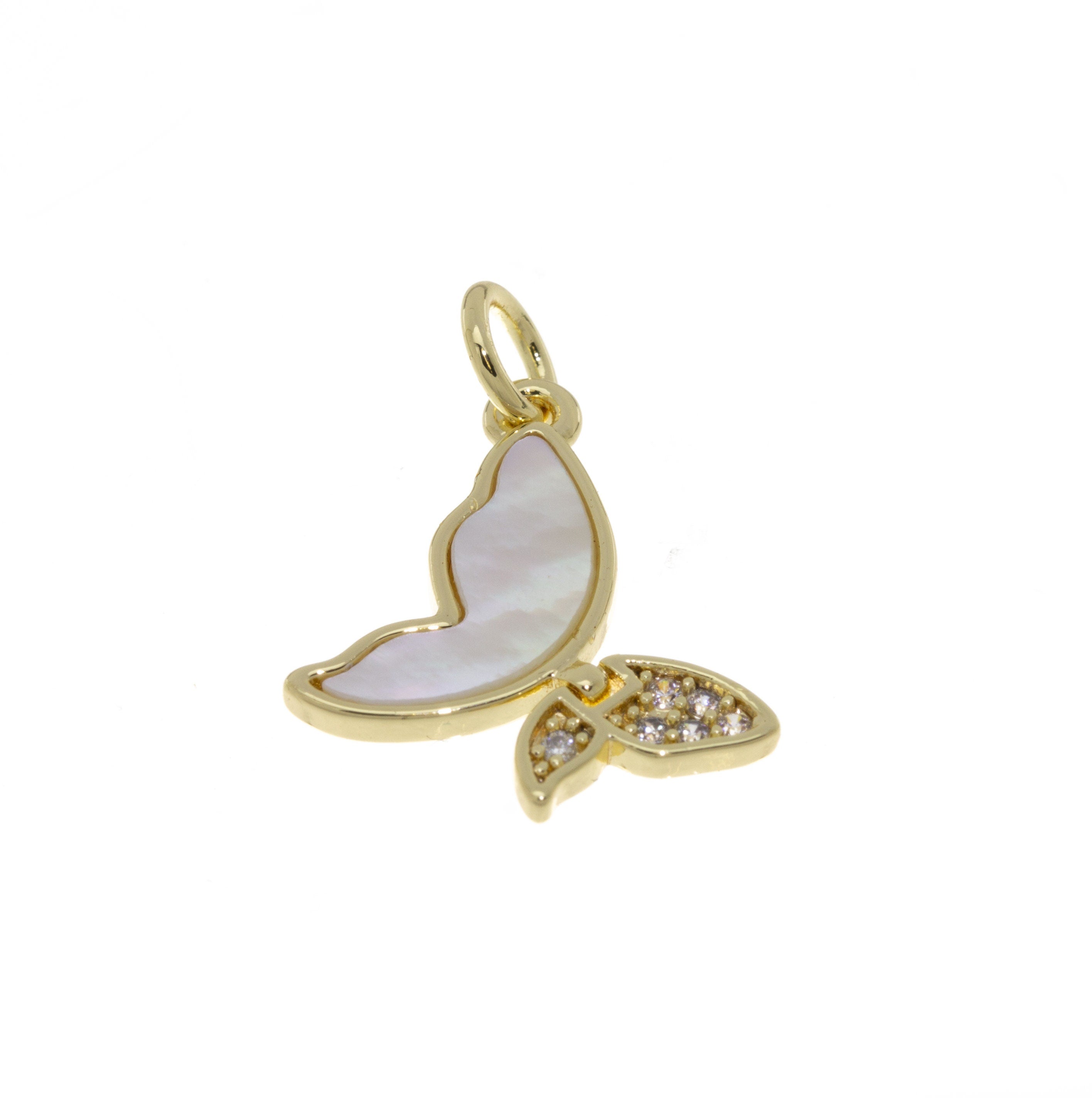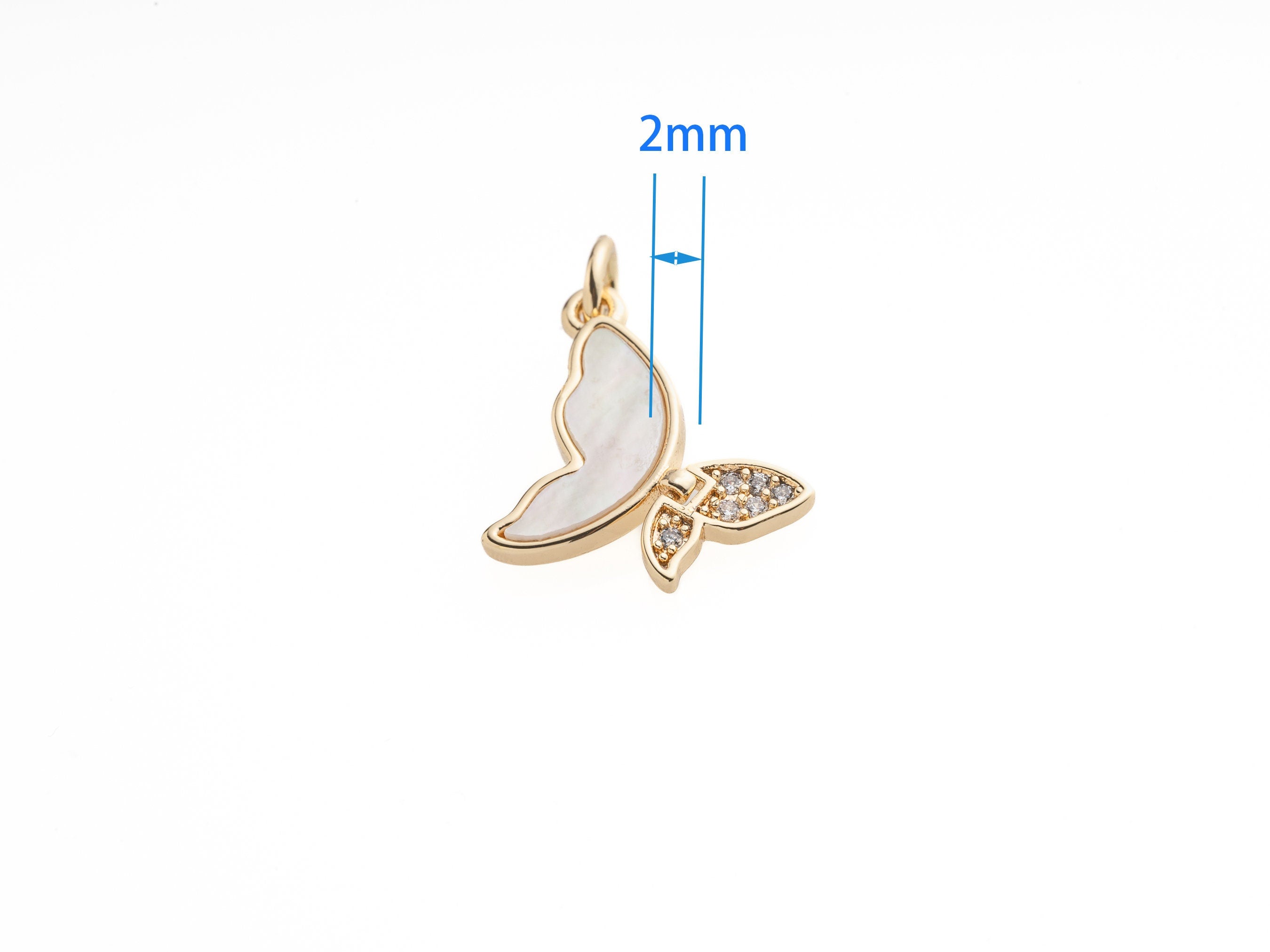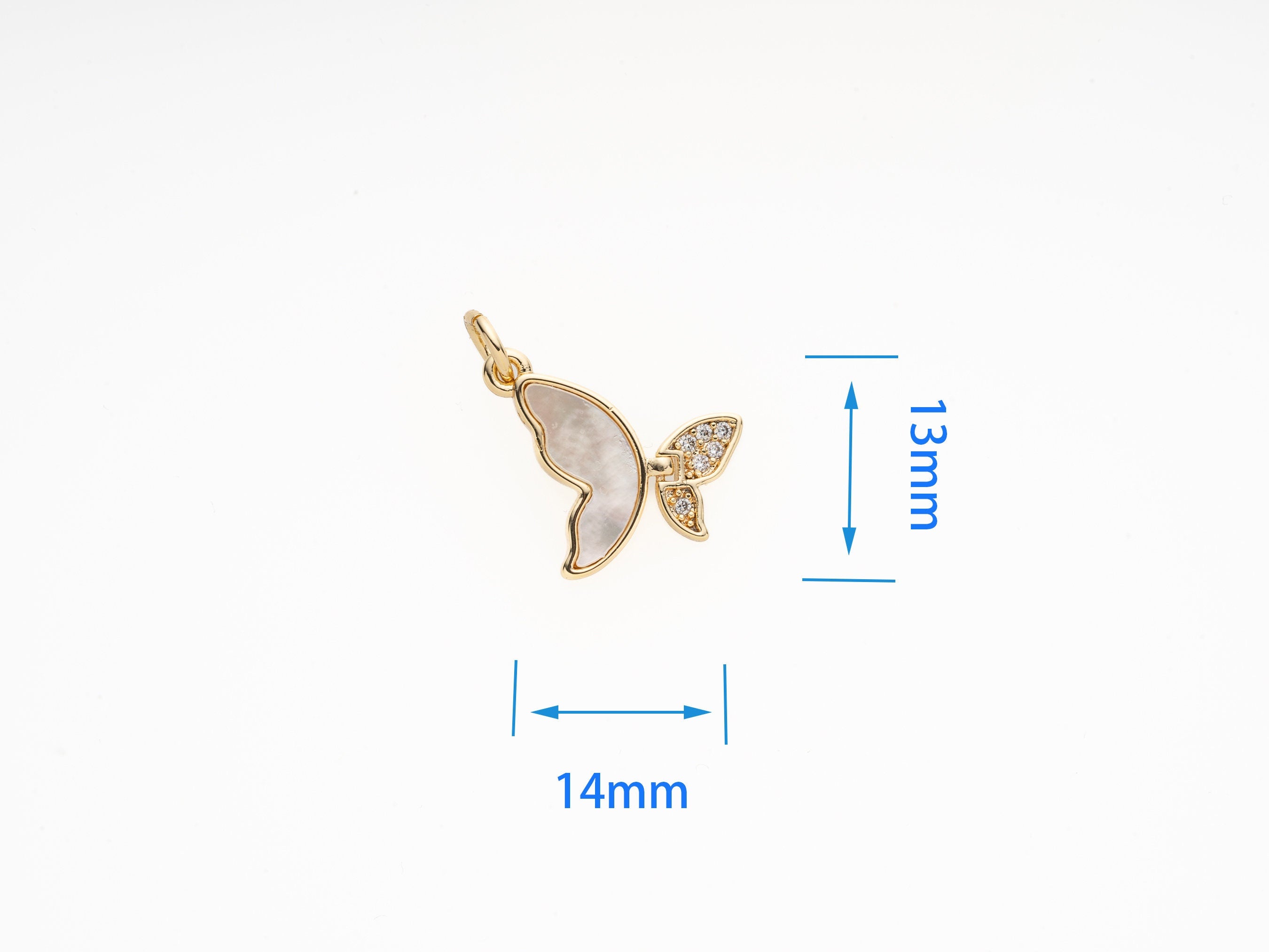 Butterfly Gold Charm,Dainty Butterfly Charm,Mother Of Pearl Butterfly Pendant,CPG470