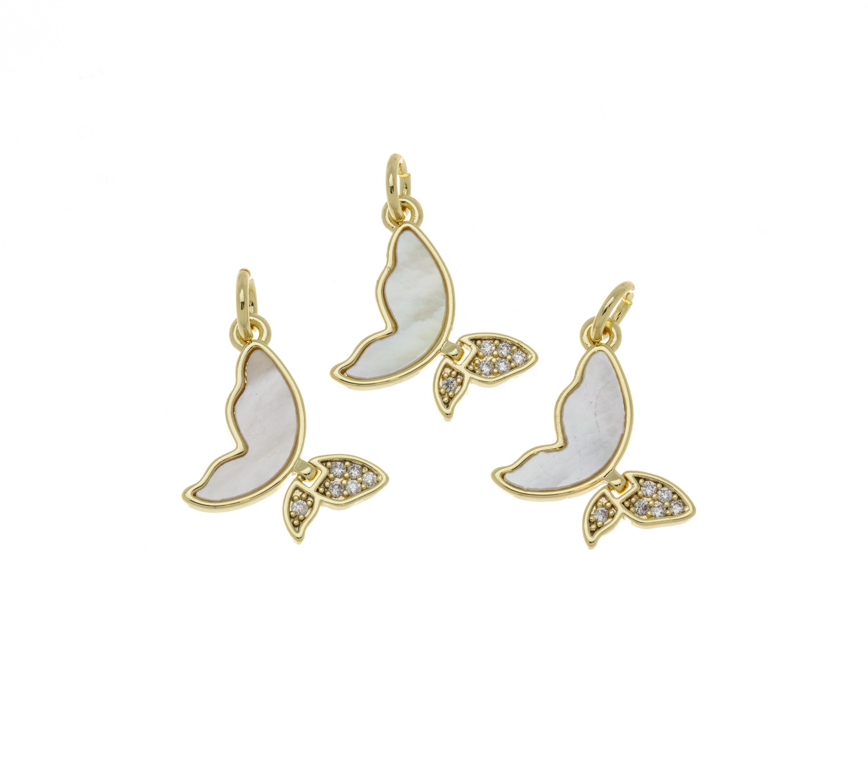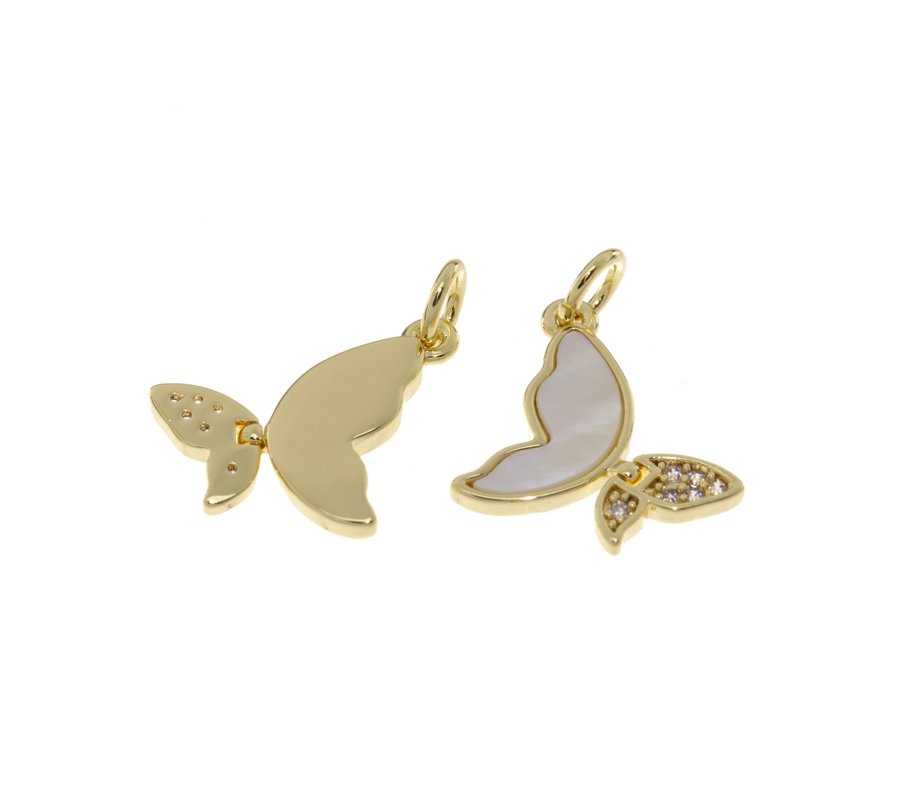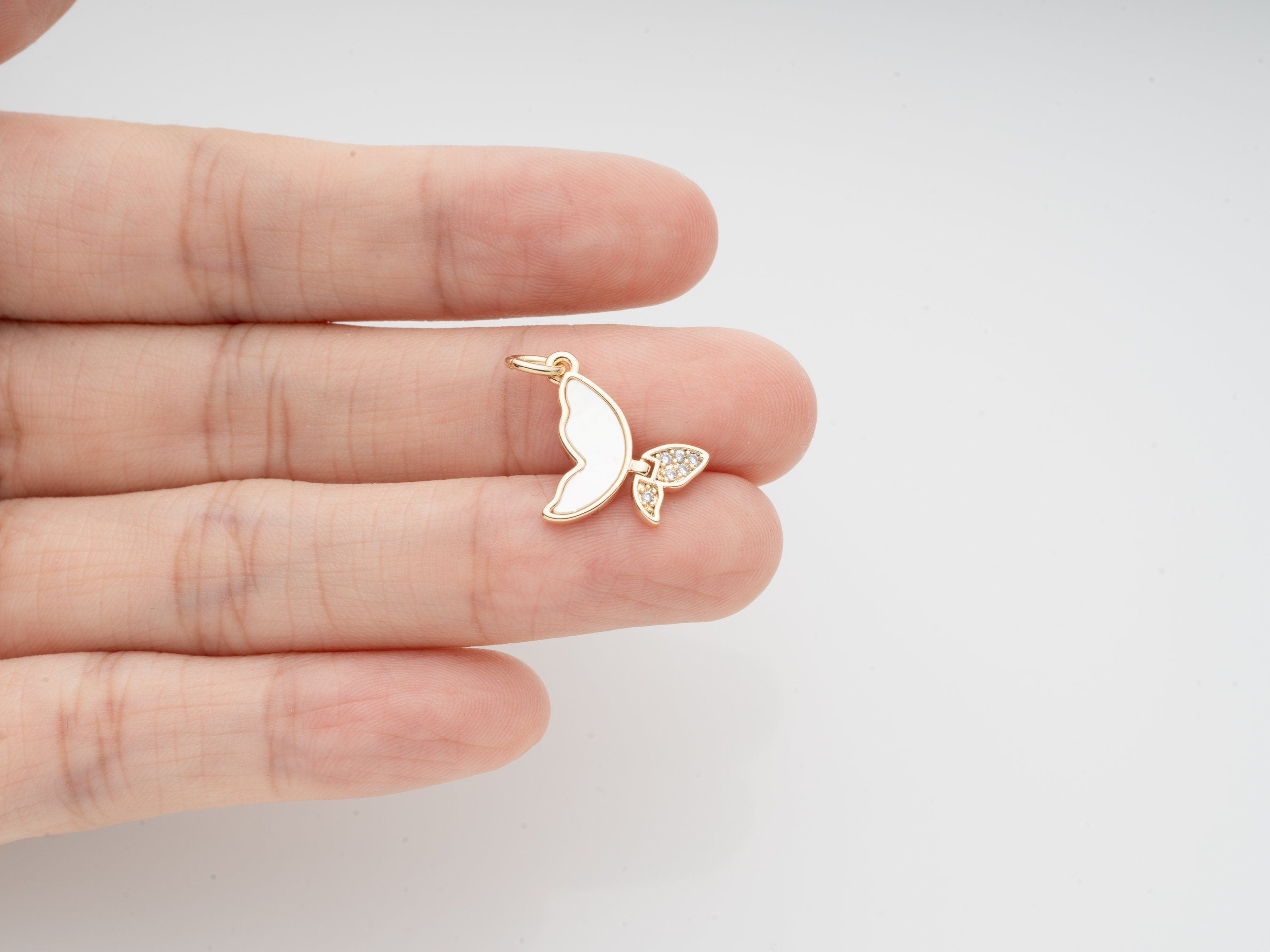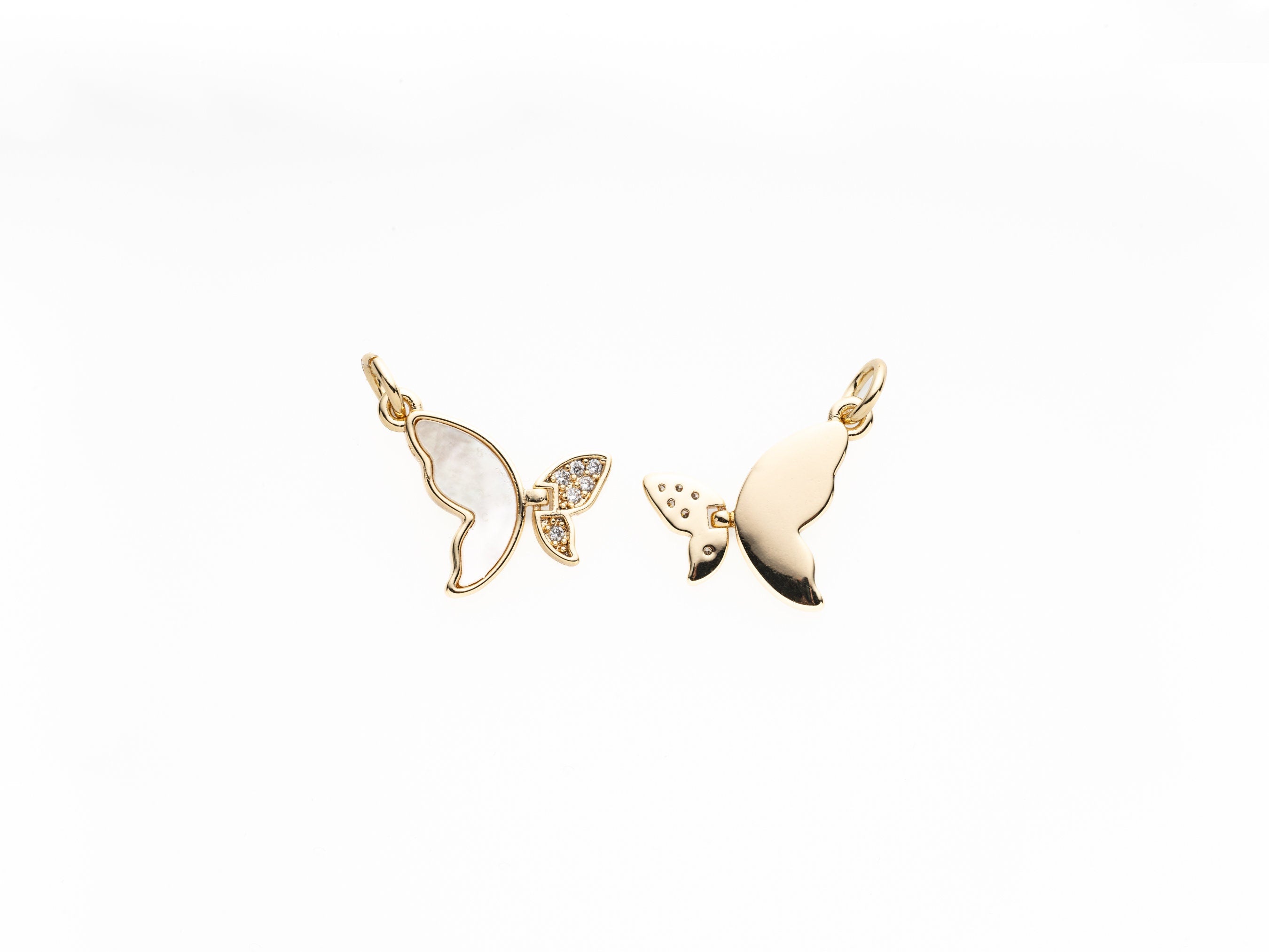 Butterfly Gold Charm,Dainty Butterfly Charm,Mother Of Pearl Butterfly Pendant,CPG470