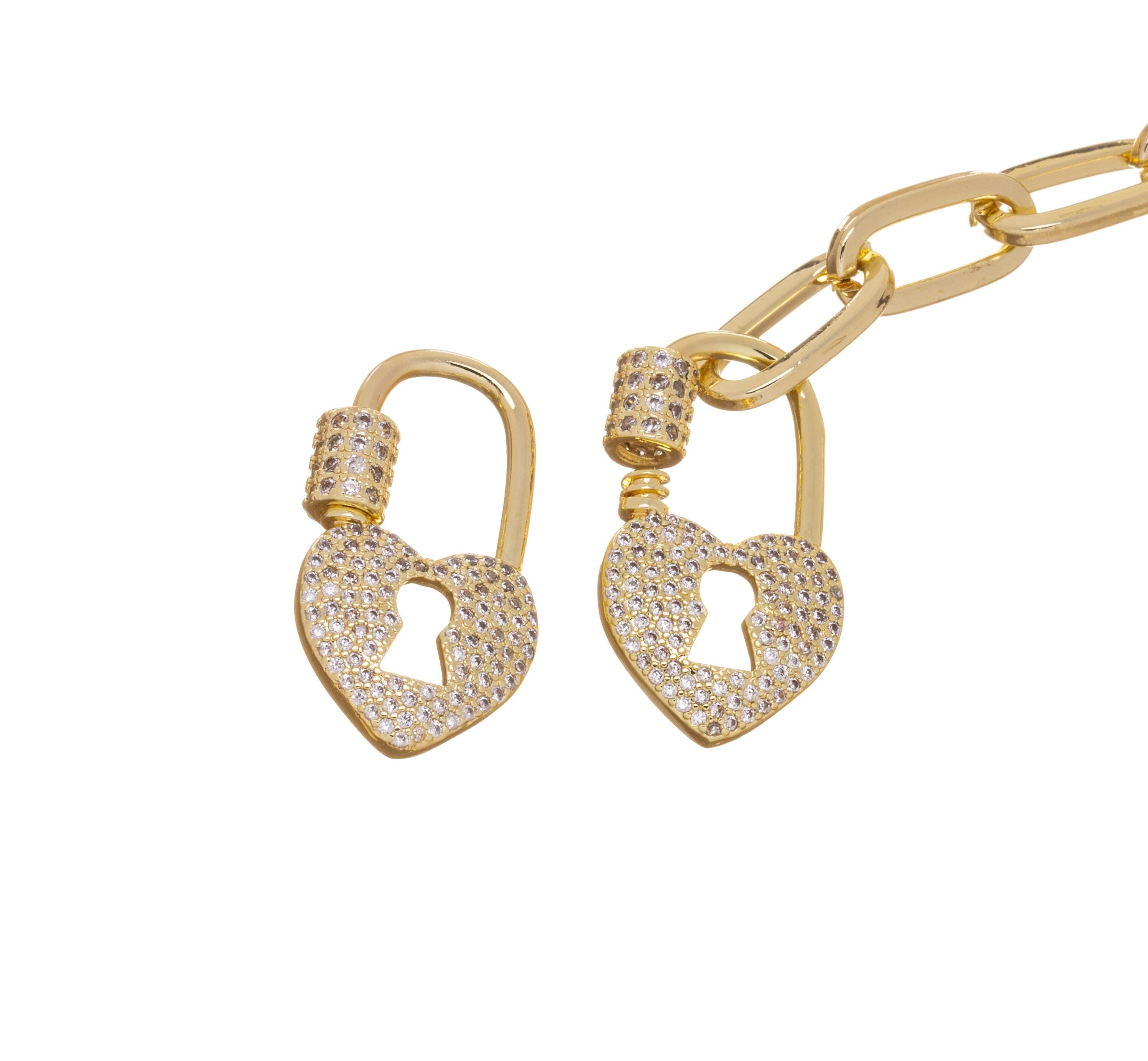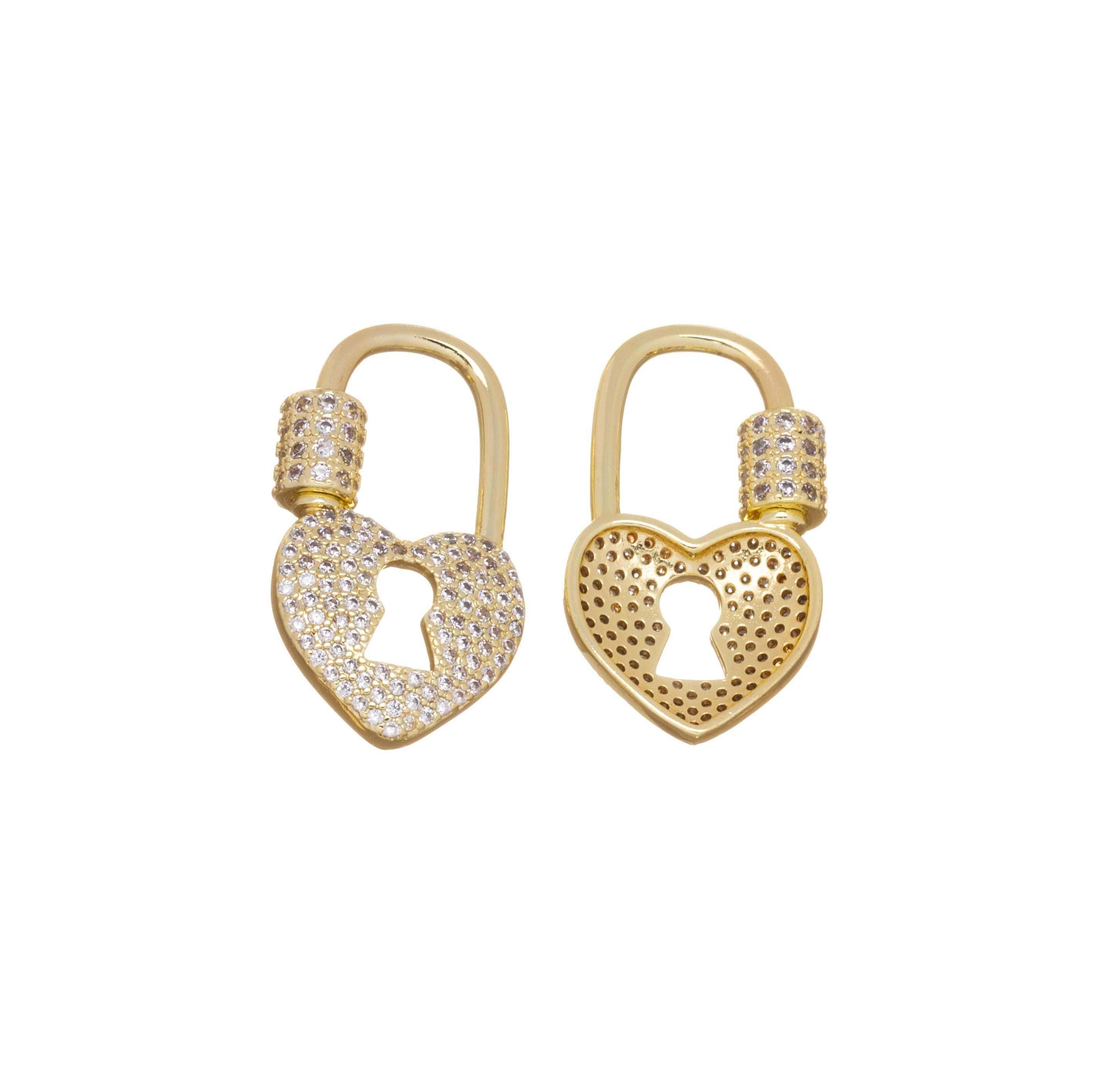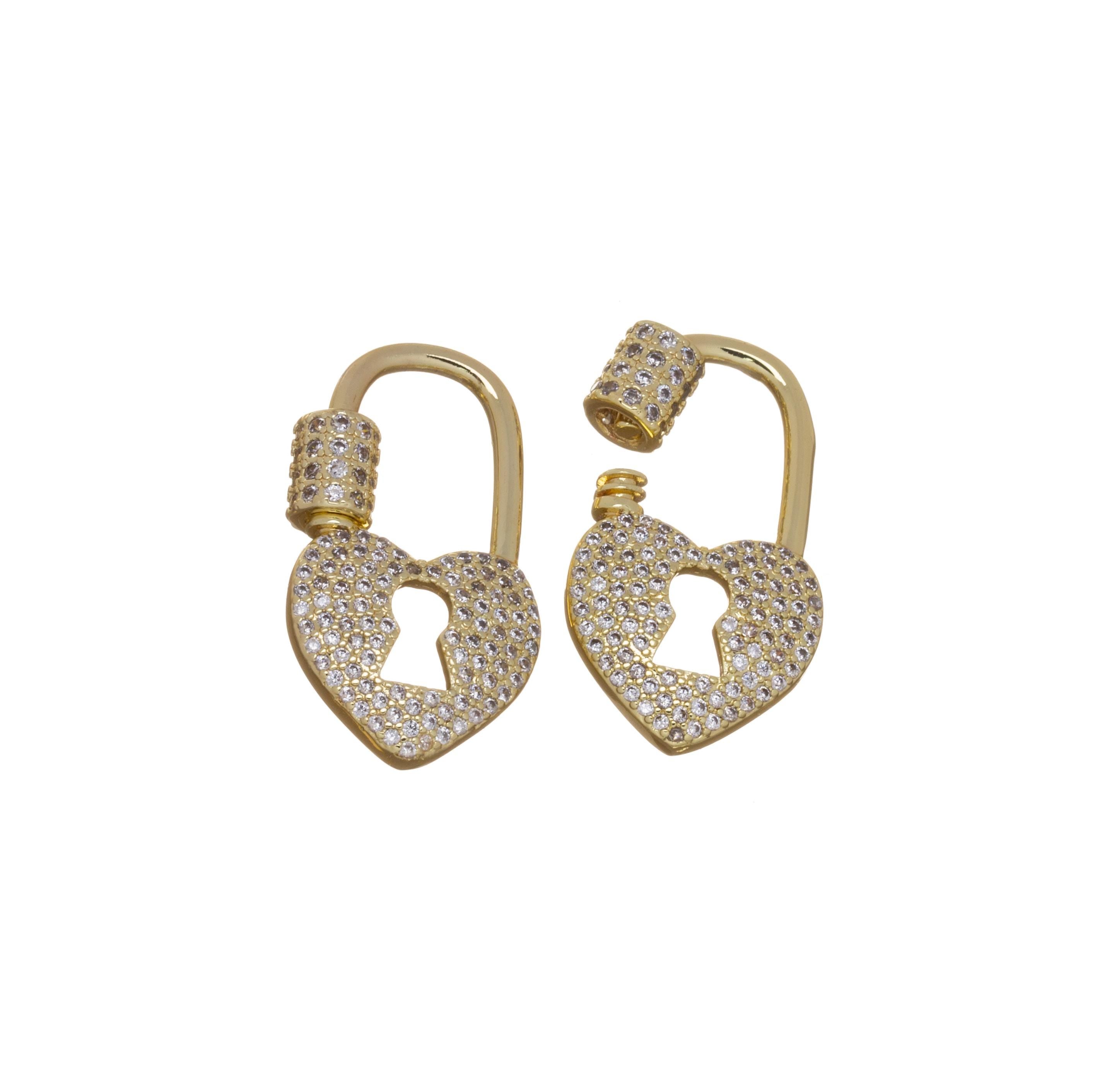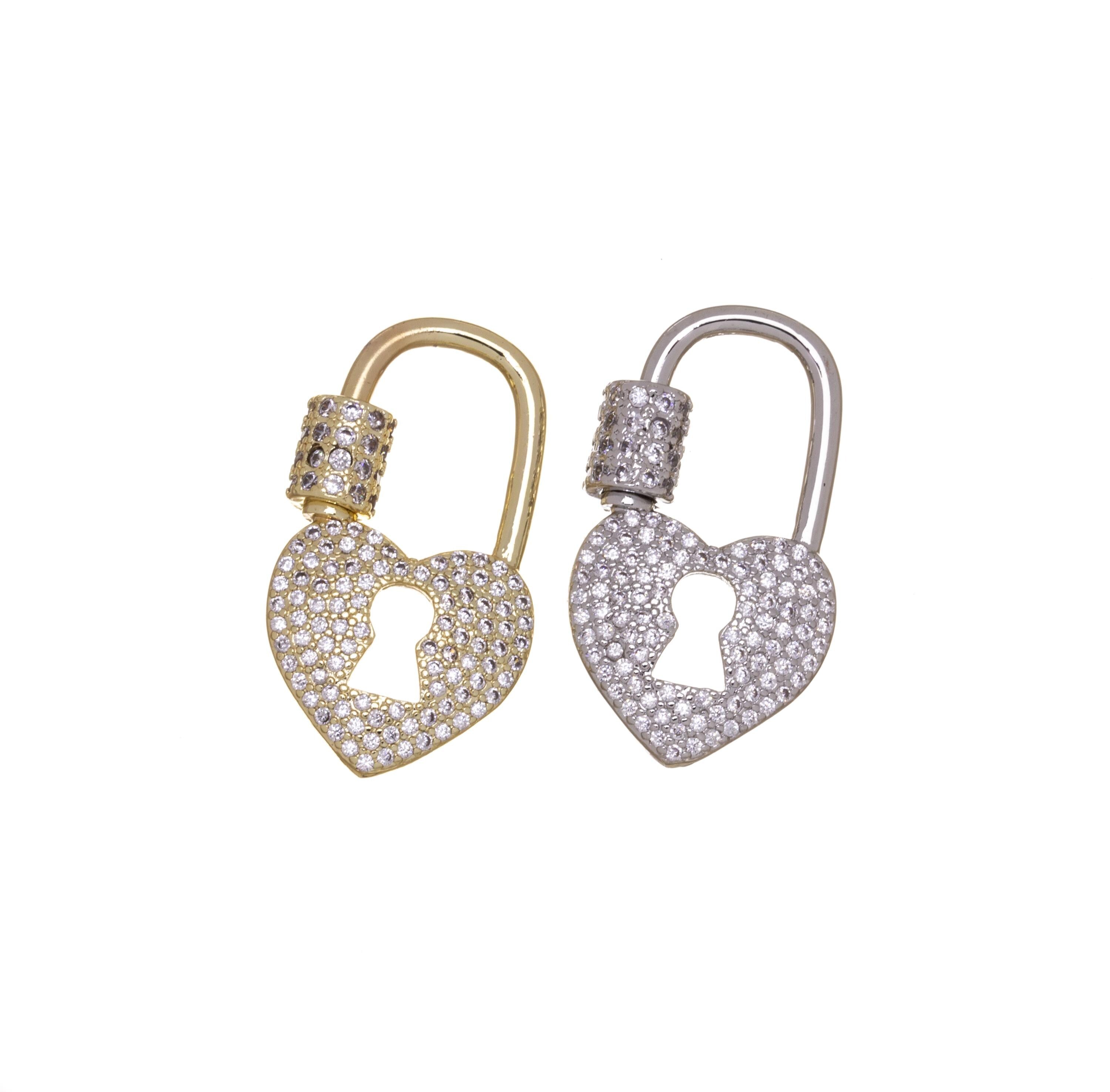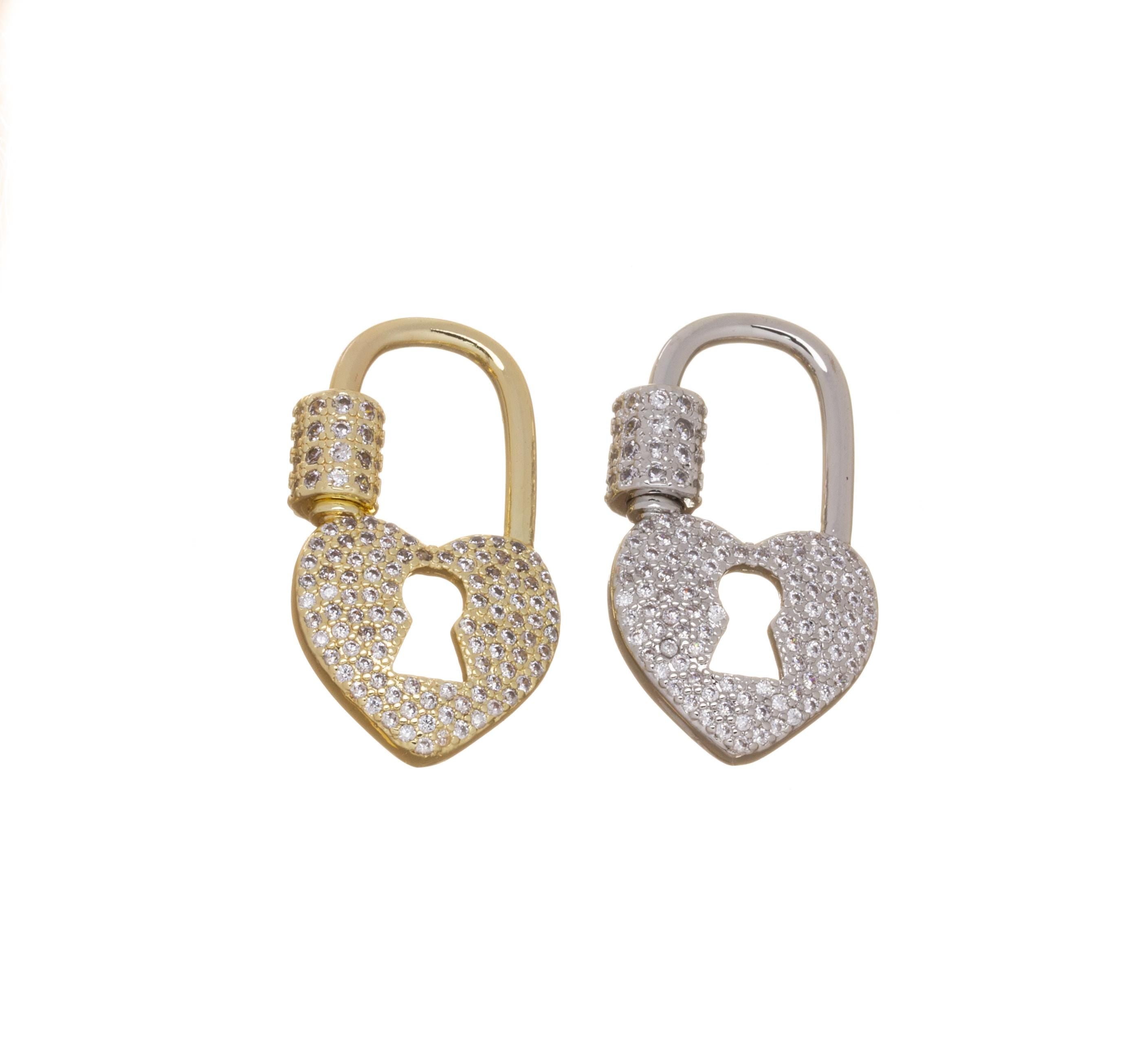 Carabiner CZ Heart Clasp With Screw,Gold Or Silver Heart Clasp,CZ Heart Clasp For Jewelry Making,Pave Heart Clasp For Jewelry,CLG-CLS161