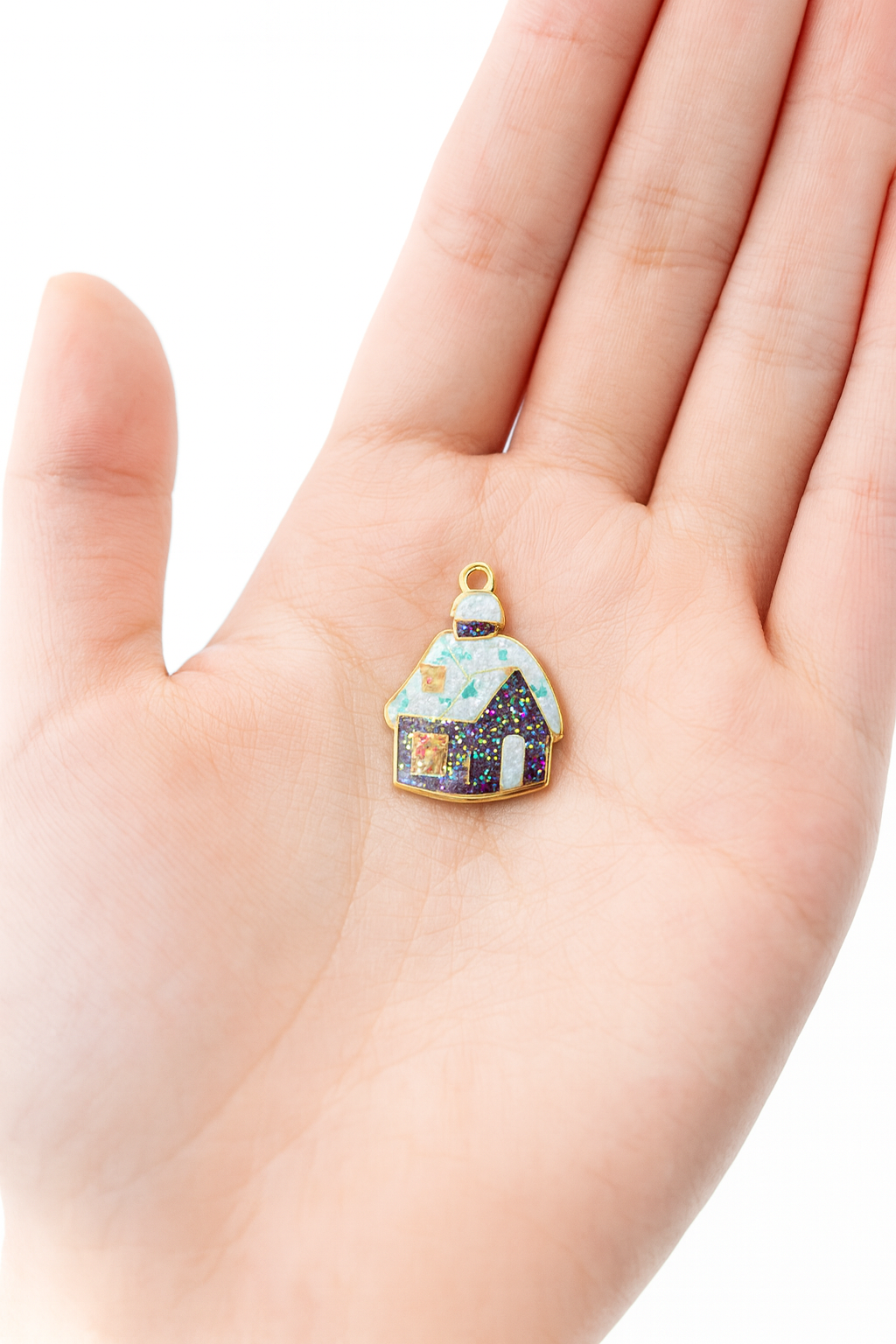 Christmas Gingerbread House Charm, Snow Cabin House Charm