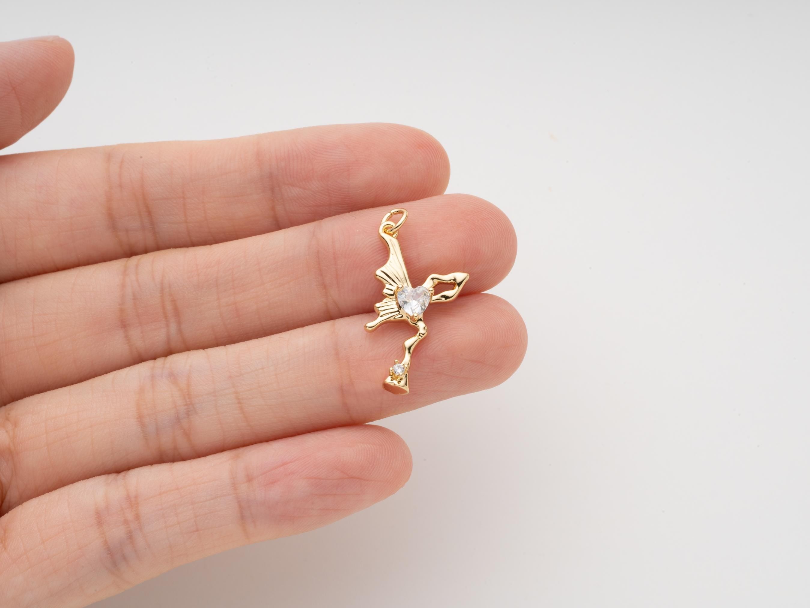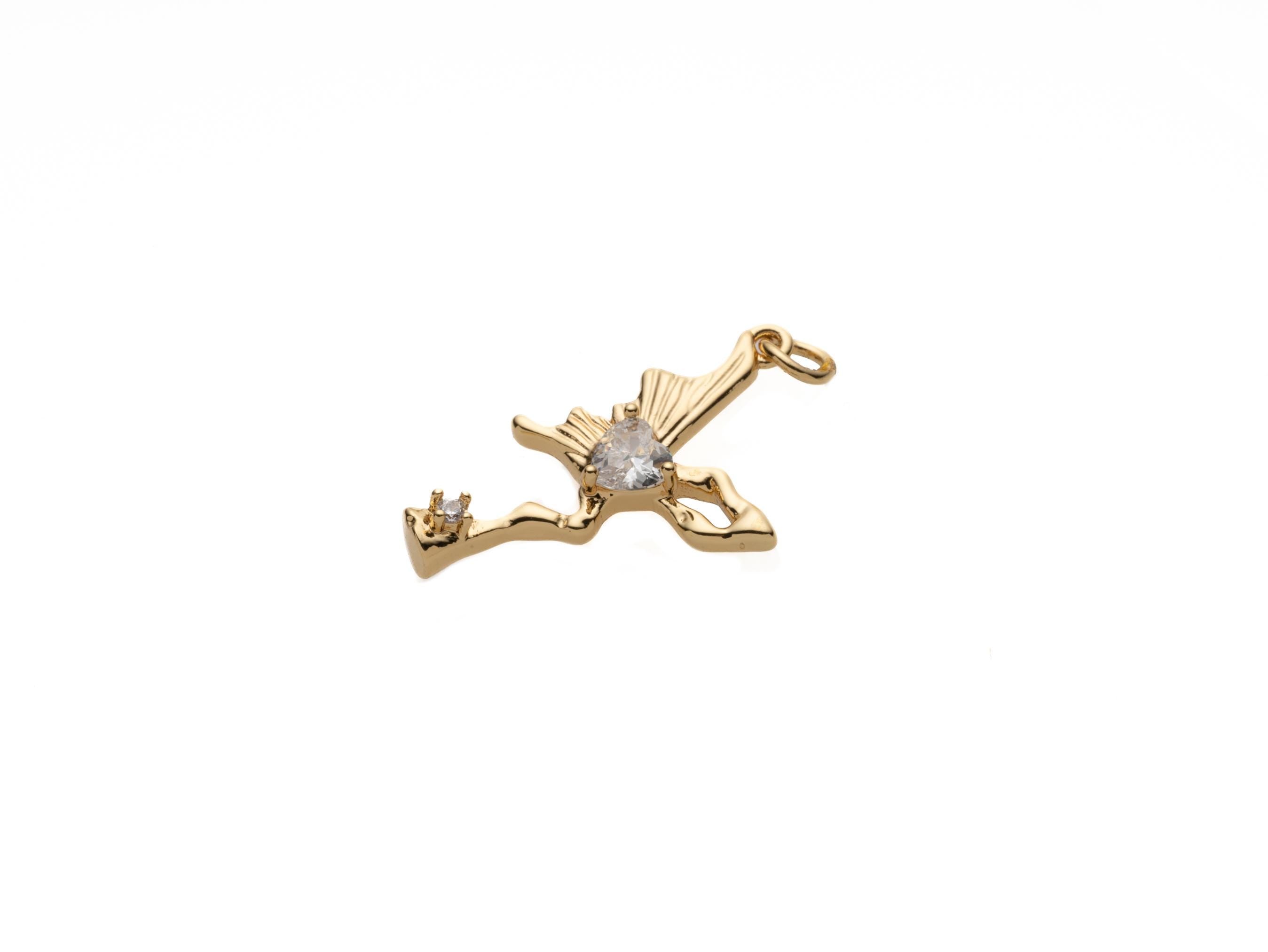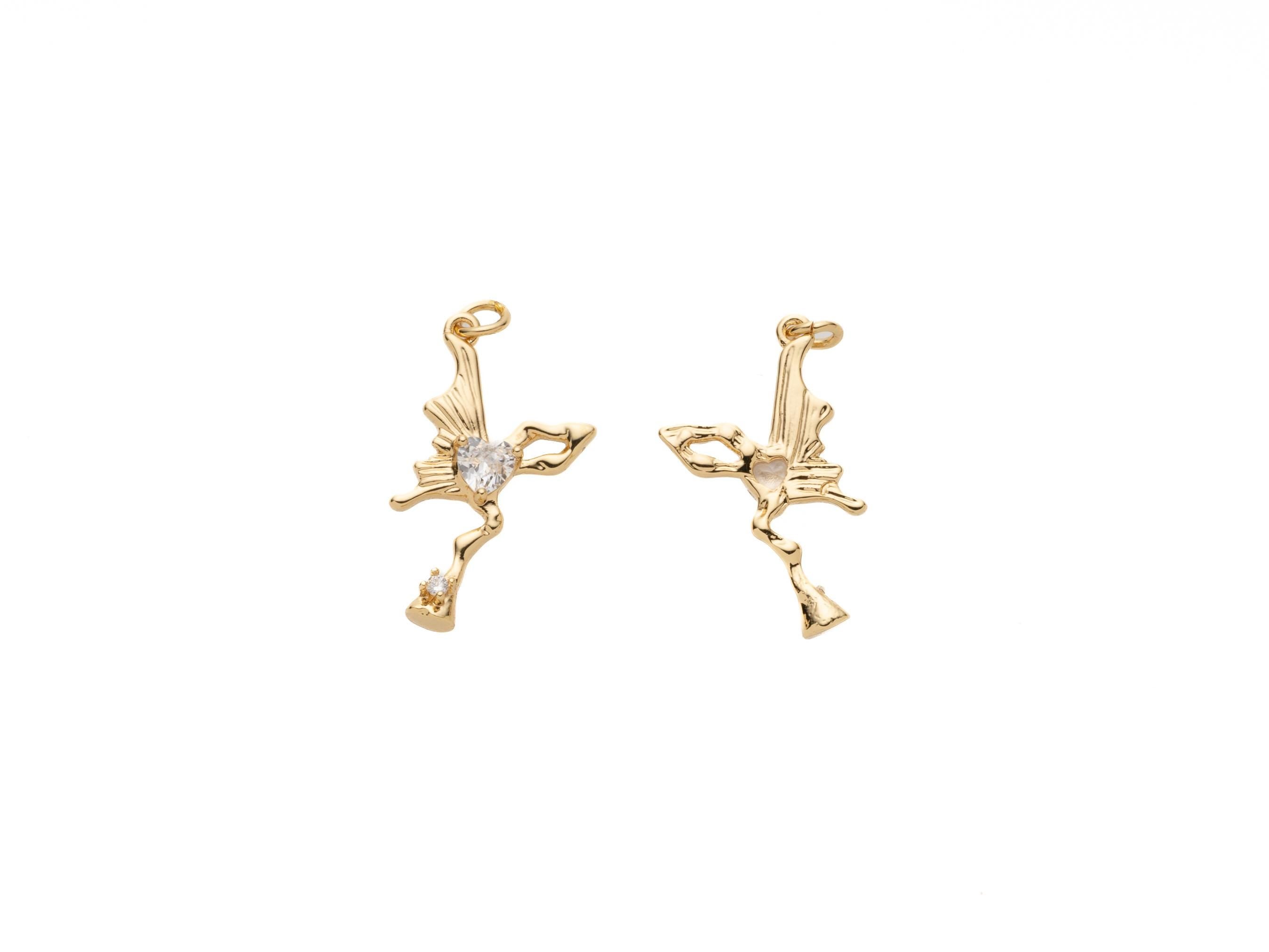 CZ Gold Abstract Butterfly, Dainty Gold Butterfly Charm, CZ Butterfly Pendant, CPG773