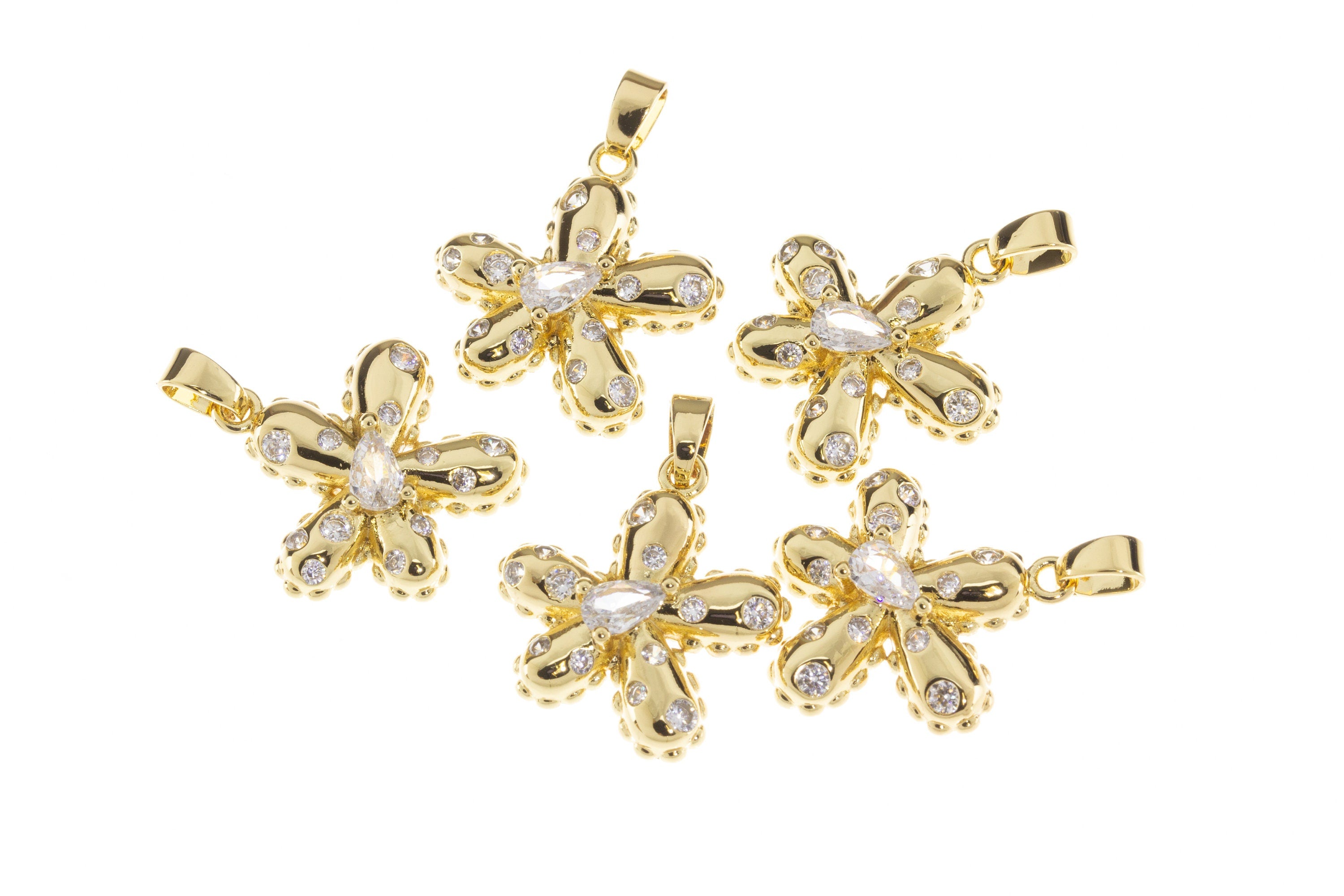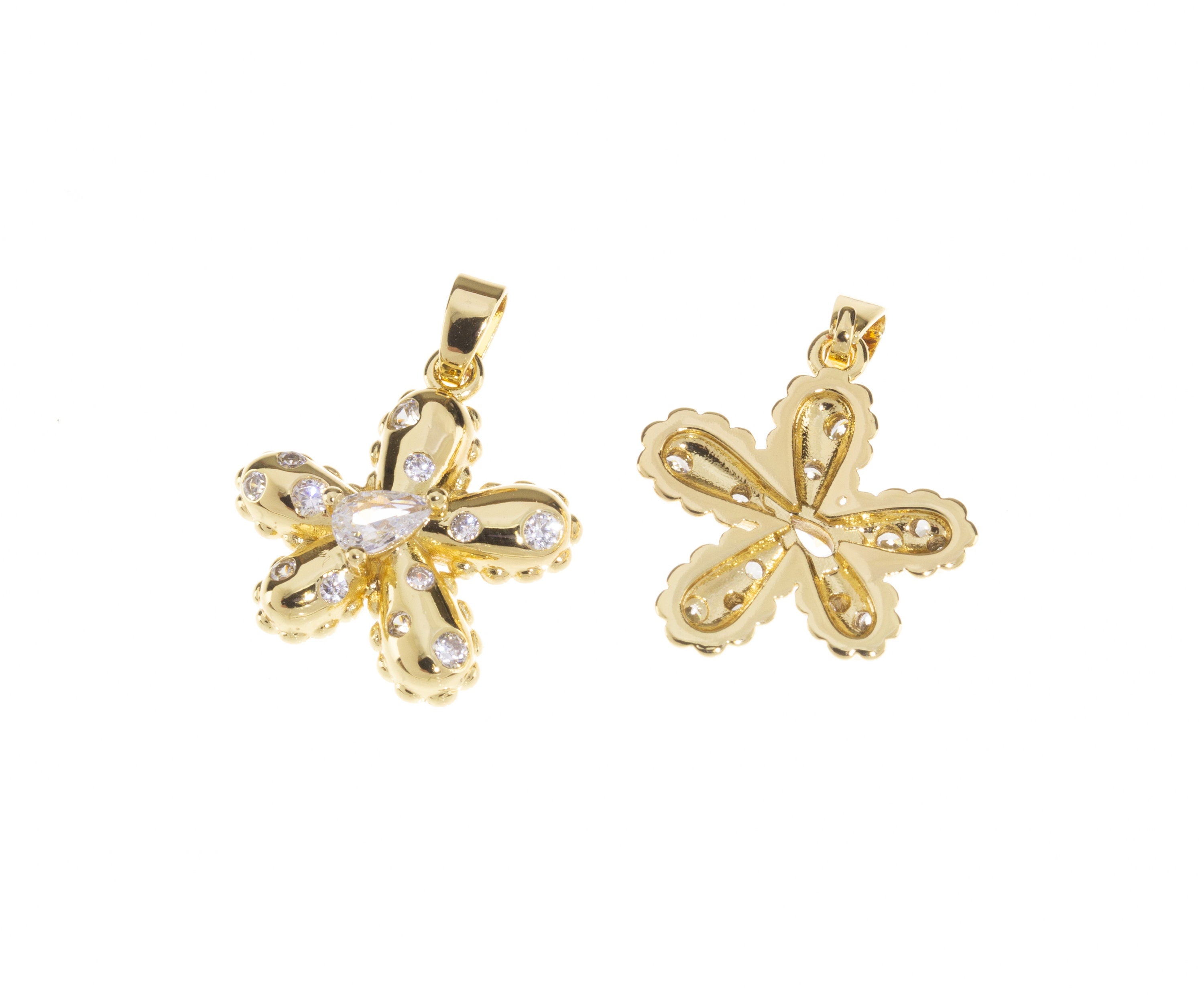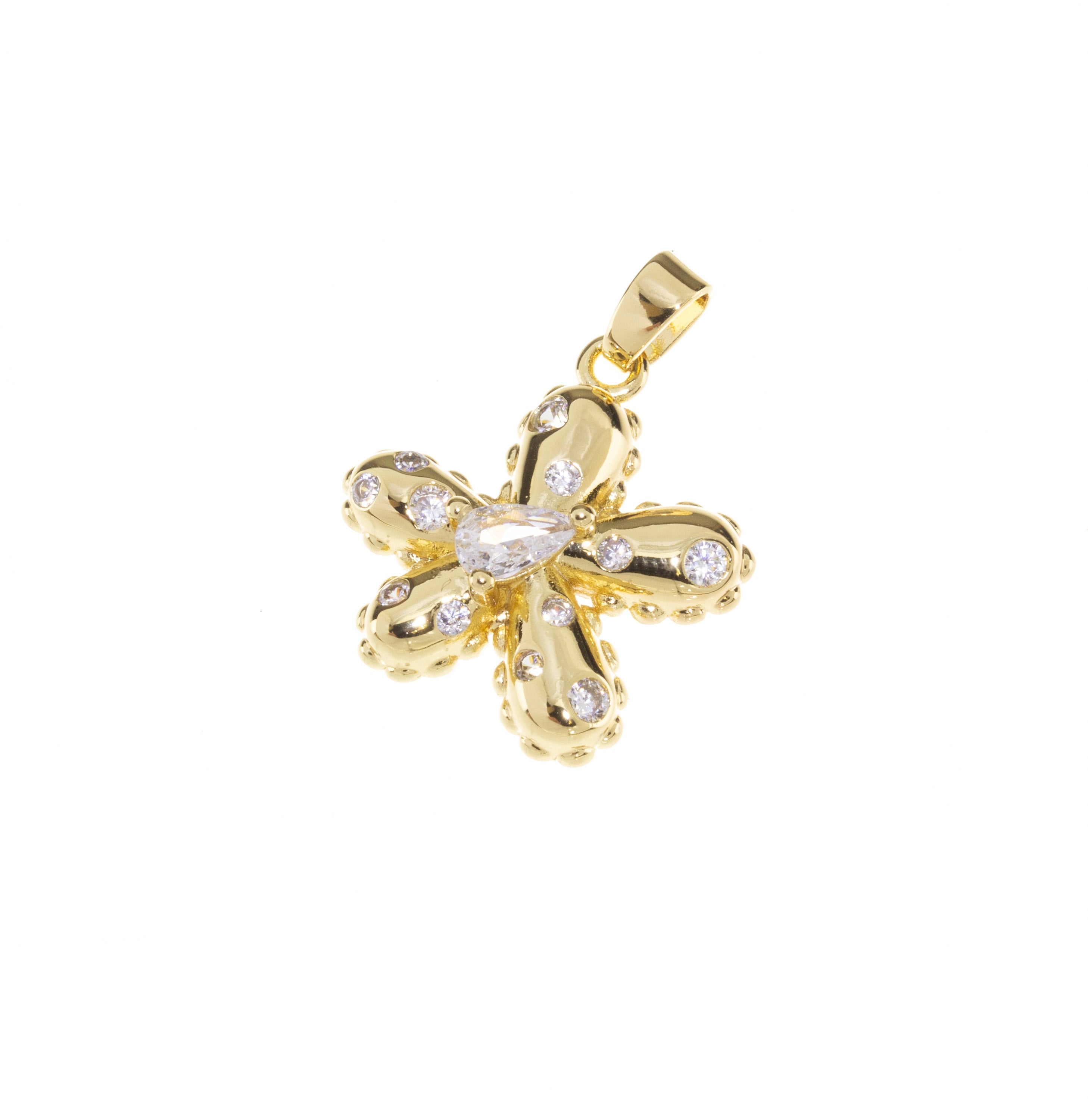 Dainty Gold Pave Flower Charm,CZ Pave Flower Charm,Daisy Flower Charm,Gold Flower Pendant With CZ,CPG304