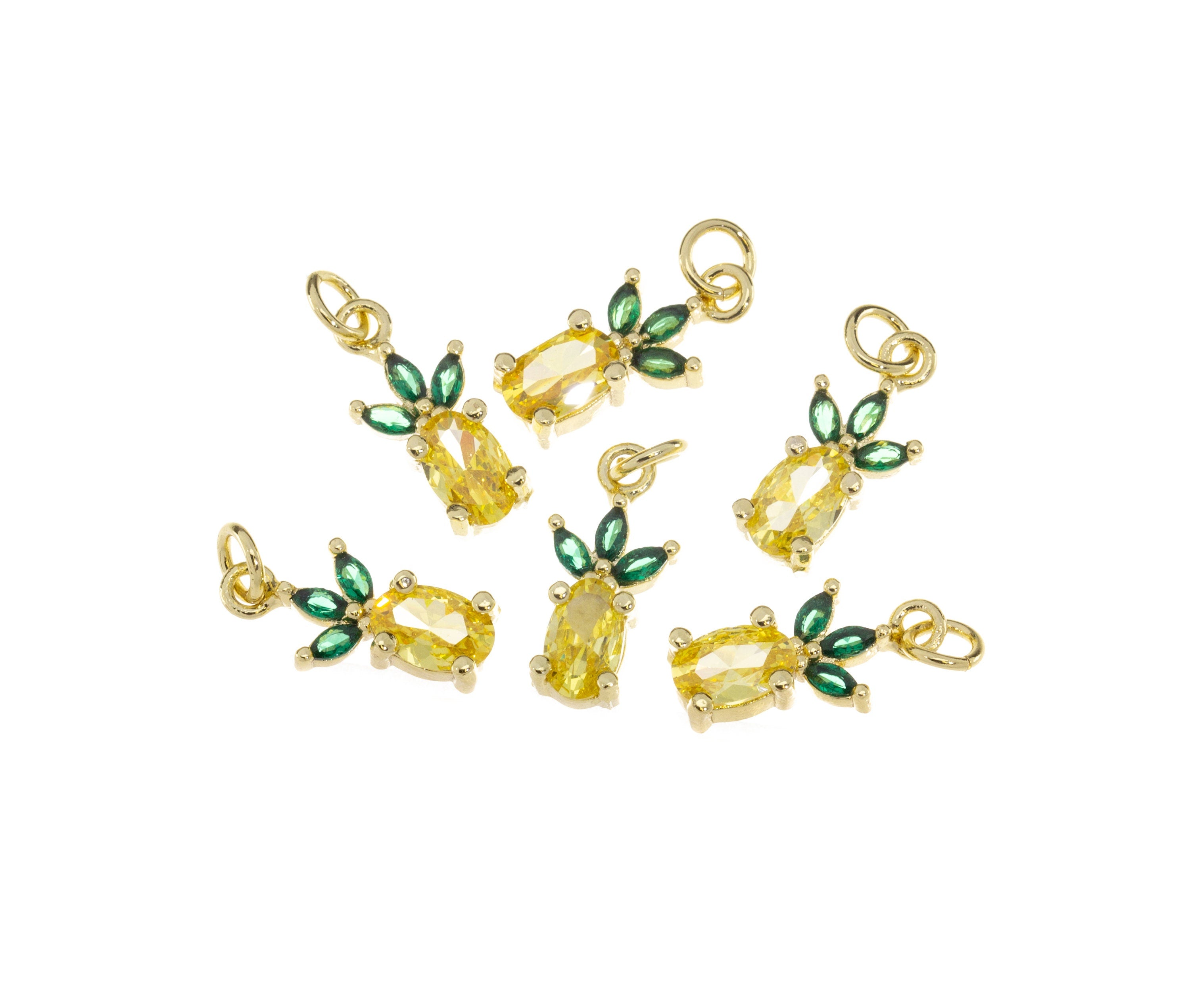 Dainty Gold Pineapple Charm,Tropical Fruit Gold CZ Charm,Hawaiian Fruit Charm,CPG1142