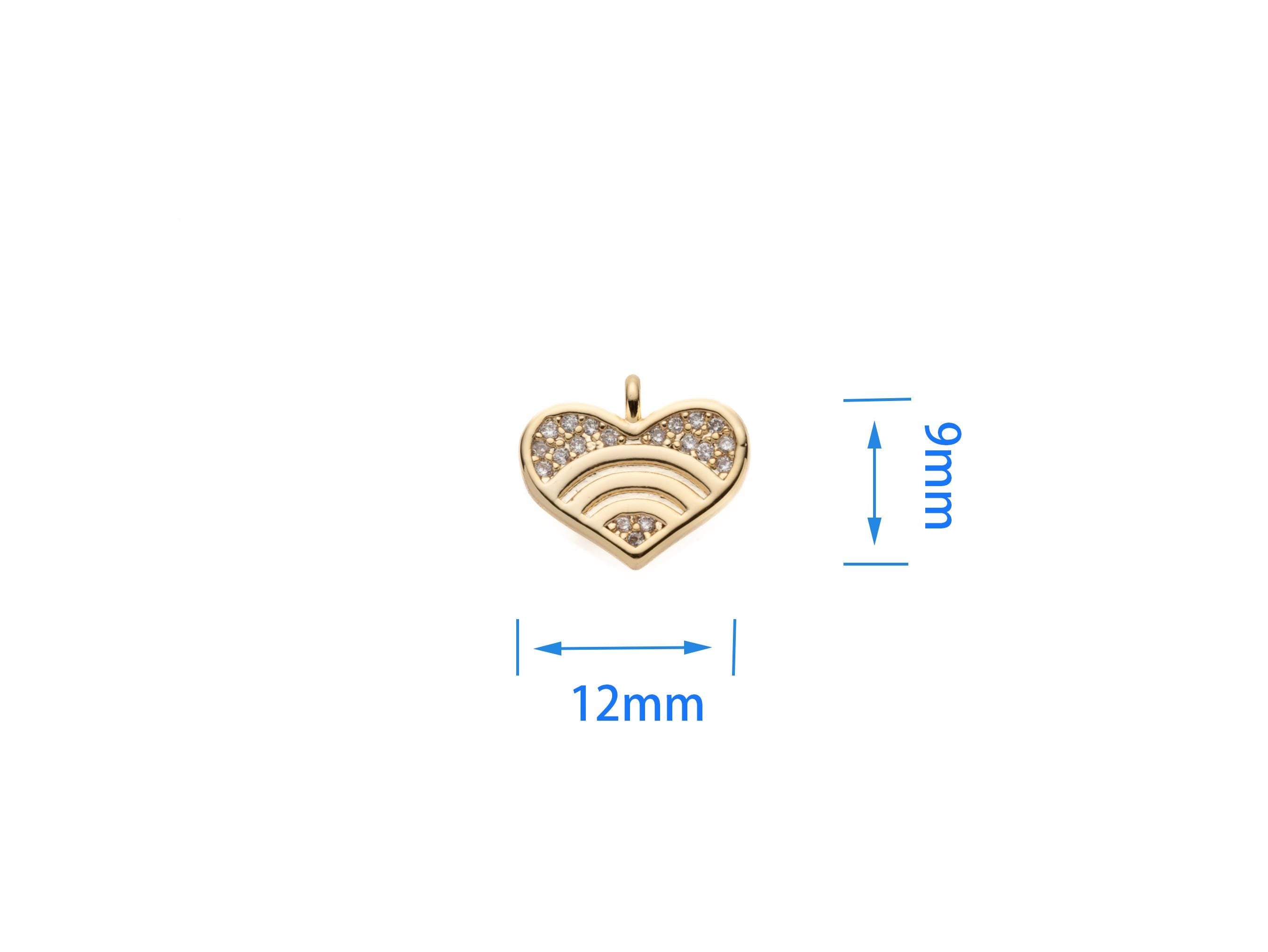 Dainty Gold white cz Rainbow Heart Pendant, 12mm, heart style pendant, heart rainbow pendant, Charms to dangle, CPG2096
