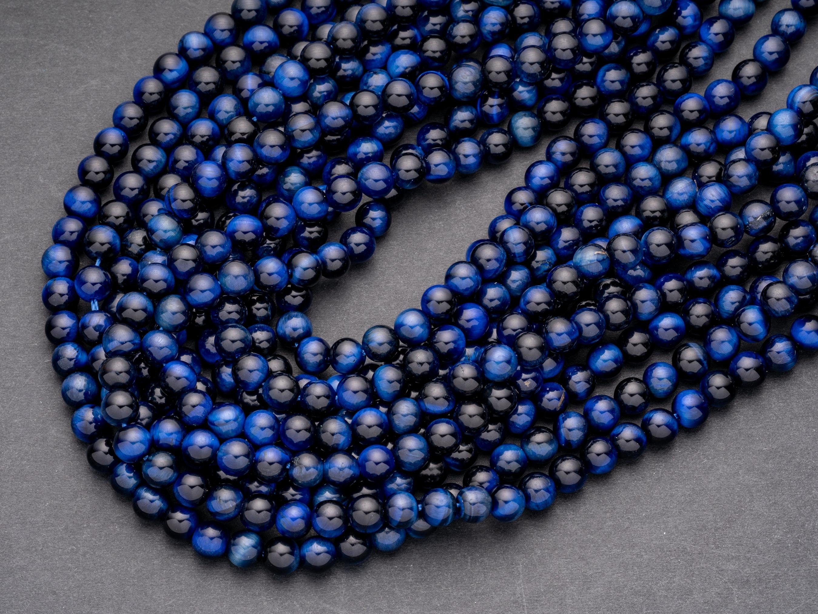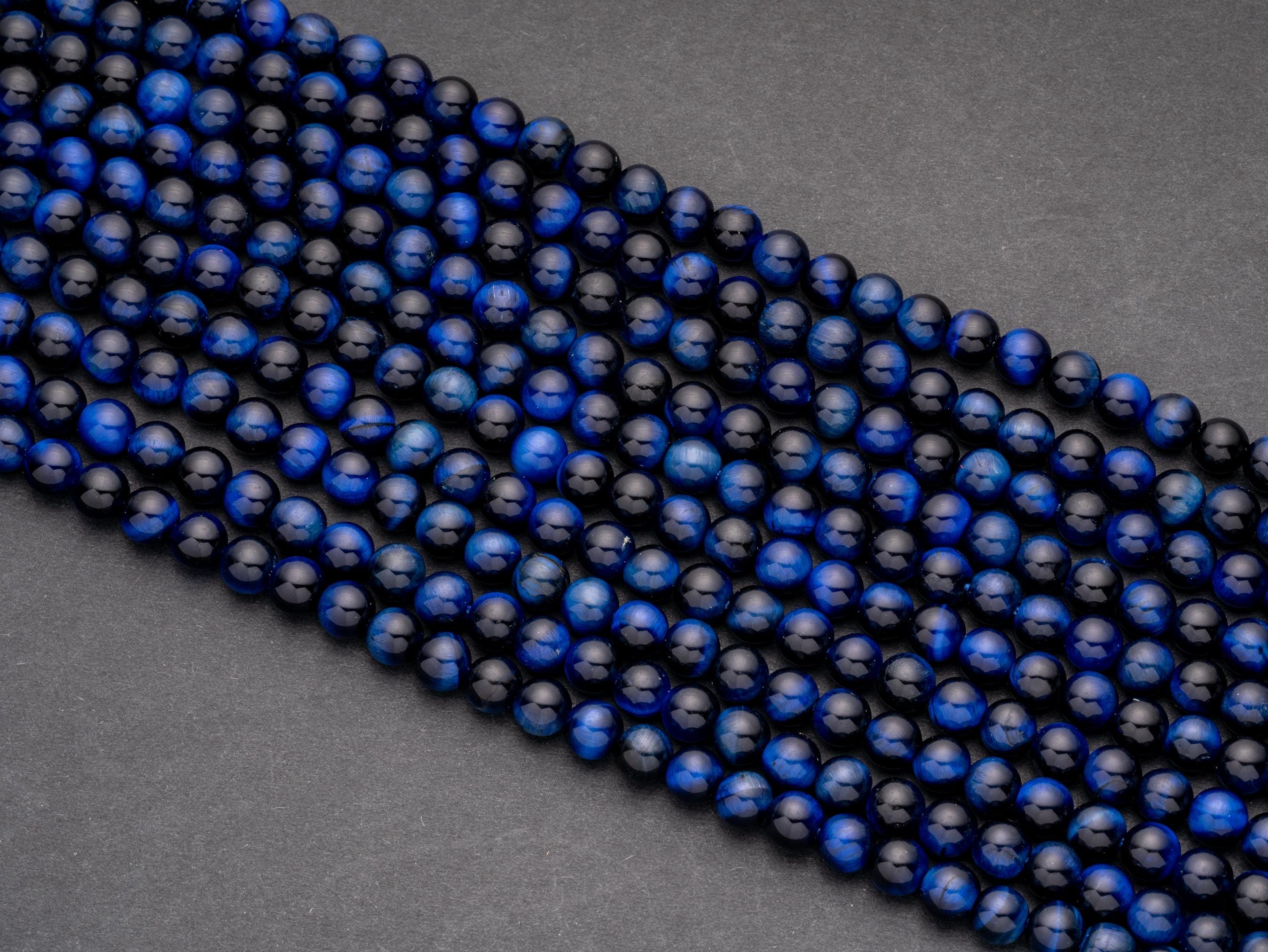 Denim Blue Tiger eye Round Beads, 6mm, 8mm, 10mm, full strand, Protection, Courage and Strength 6R014, 8R19, 10R12