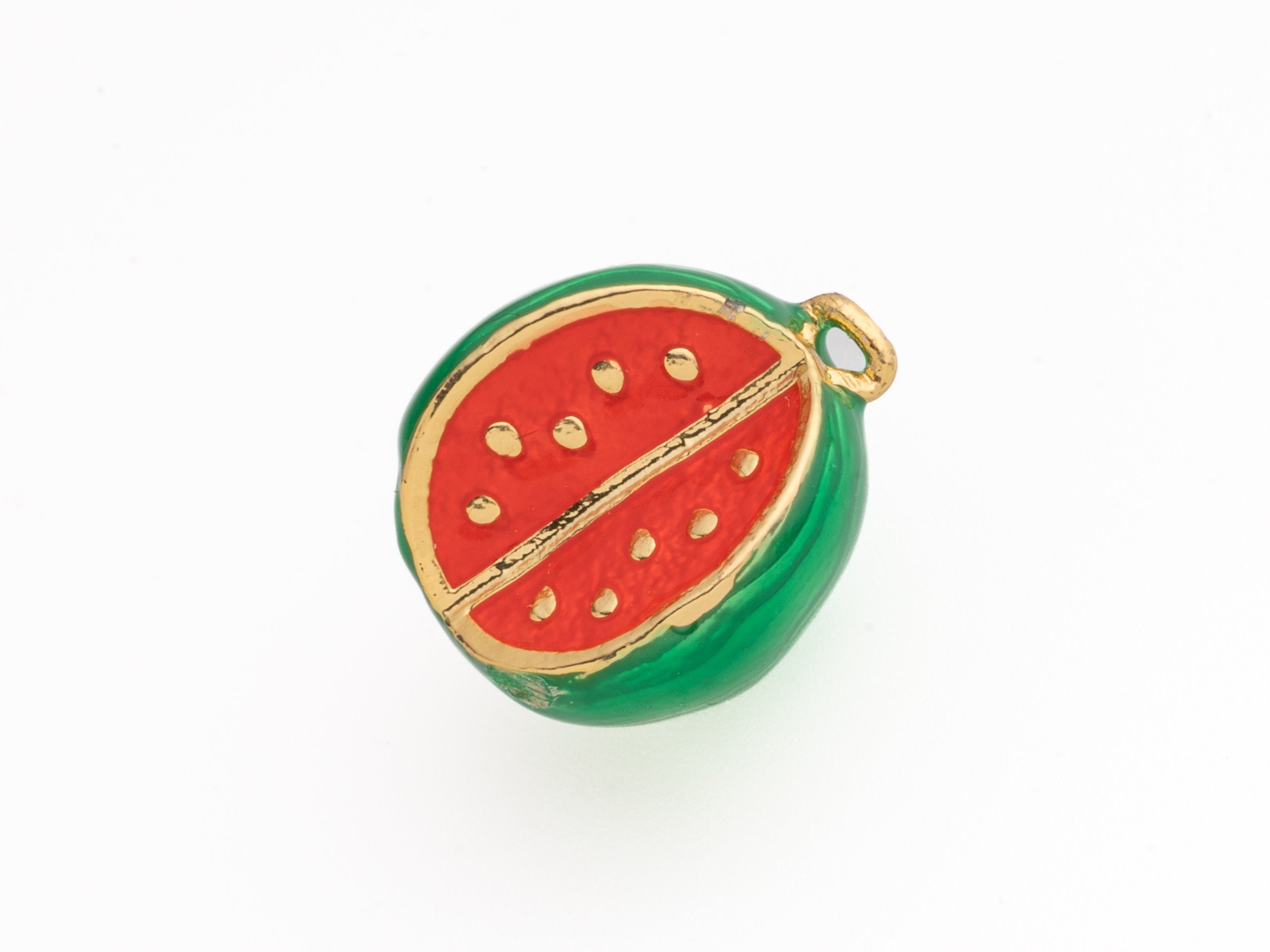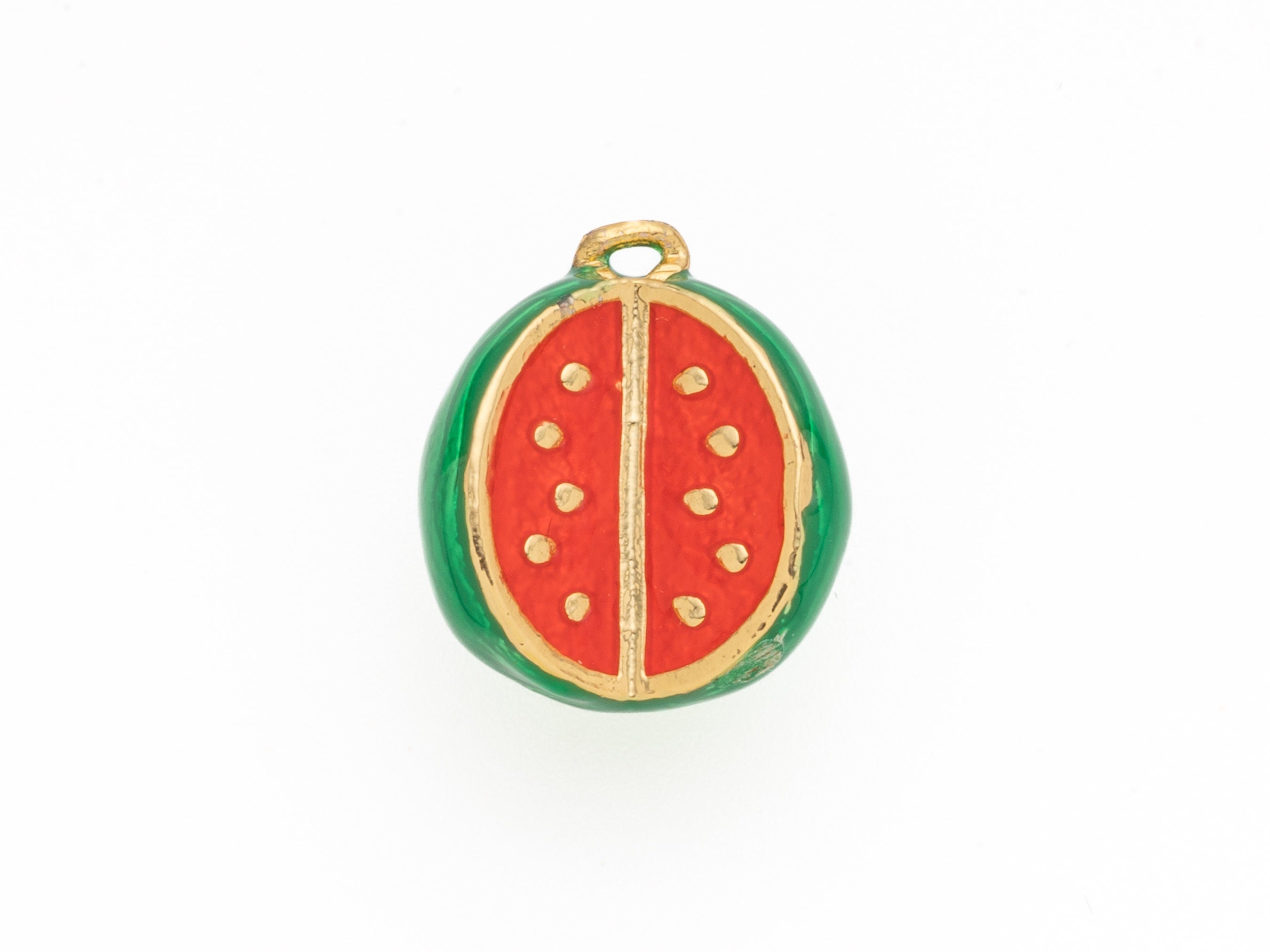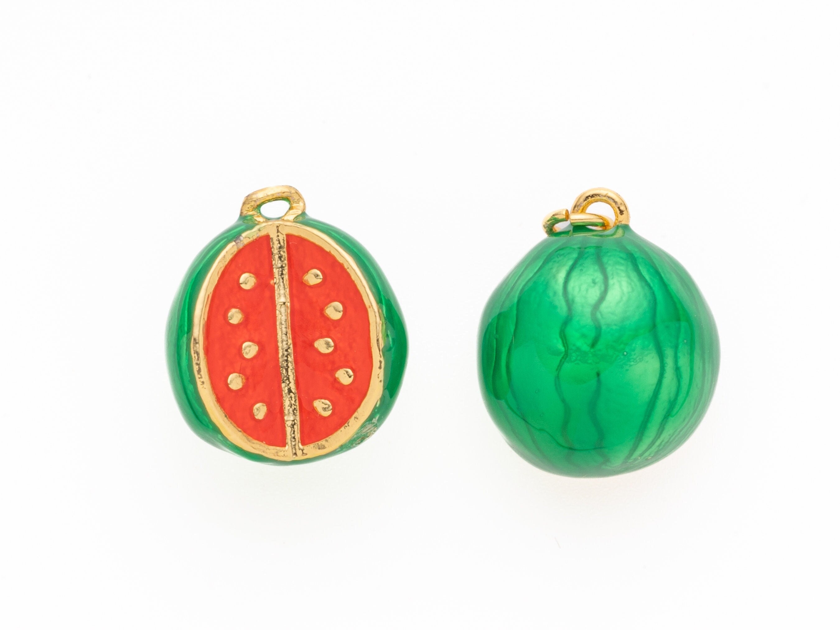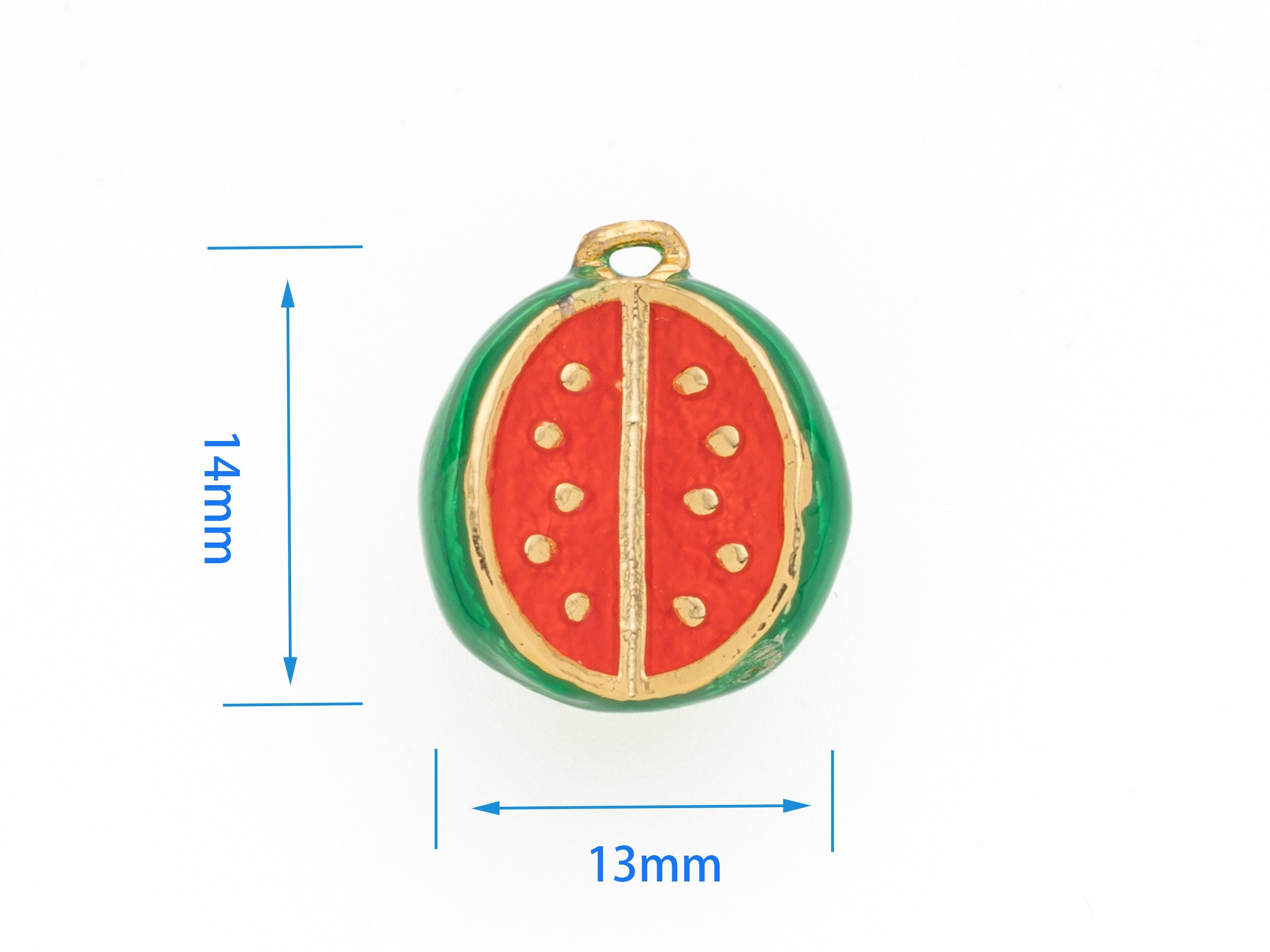 Enamel Watermelon Pendant,18K Gold 3D Watermelon Charm, Fruit Pendant, Enamel Fruit Pendant, DIY Jewelry Making Supplies, 14x13mm, CPG1744