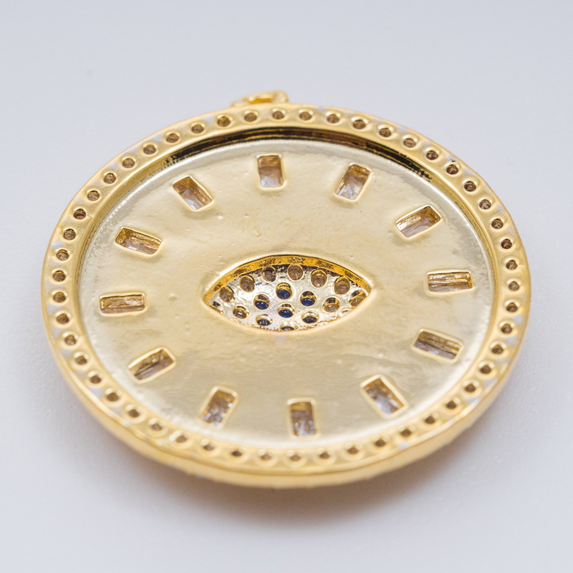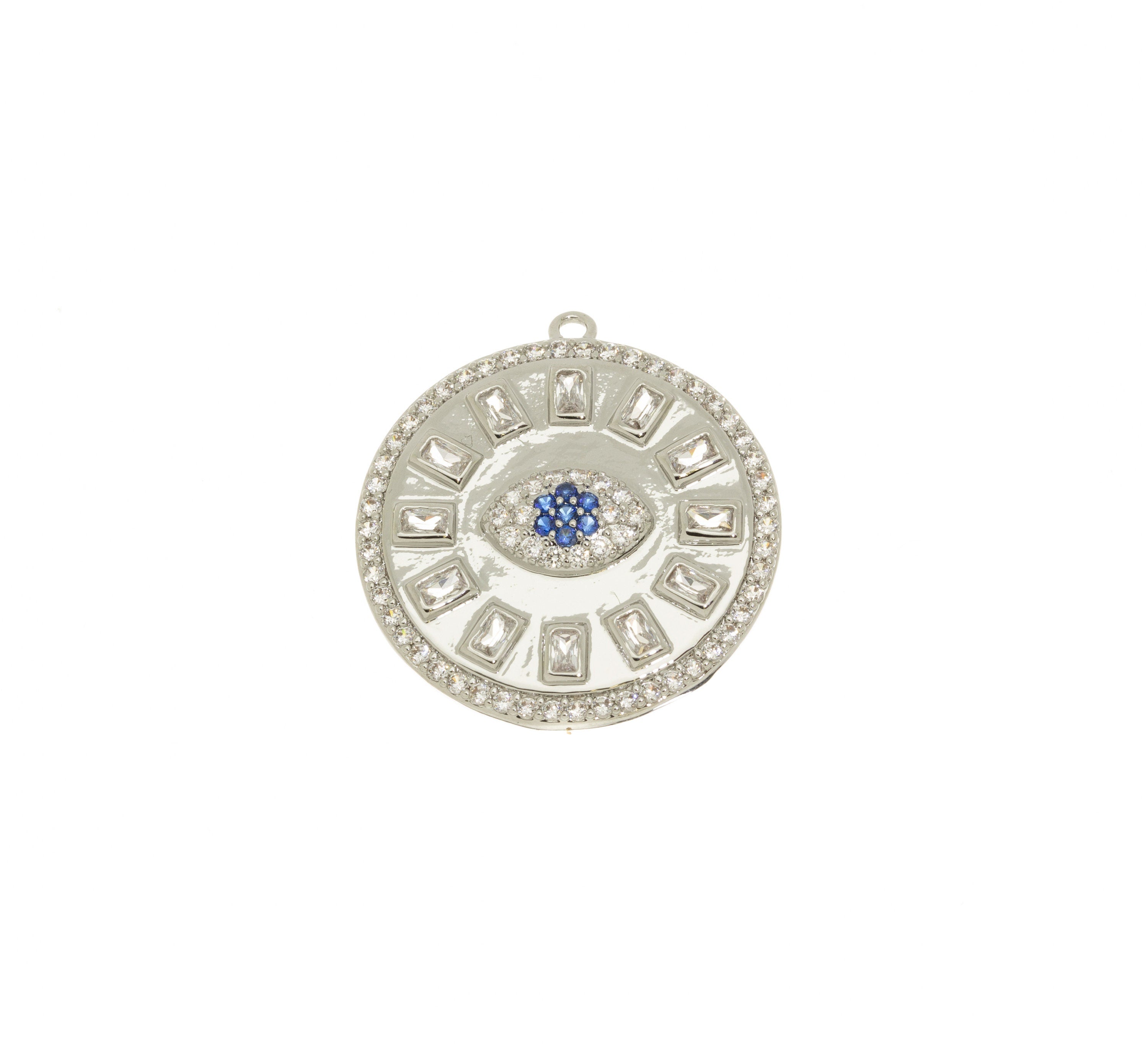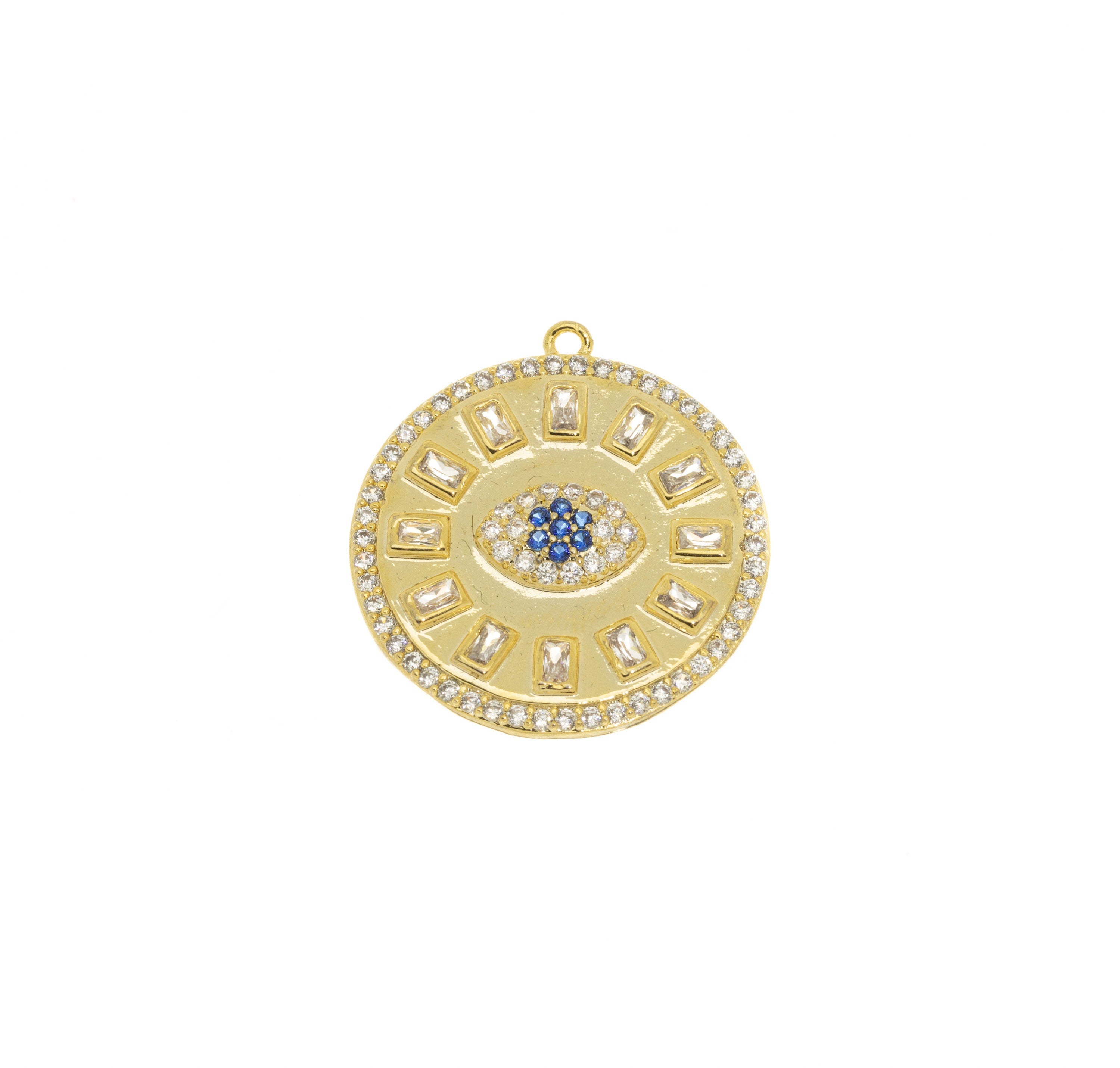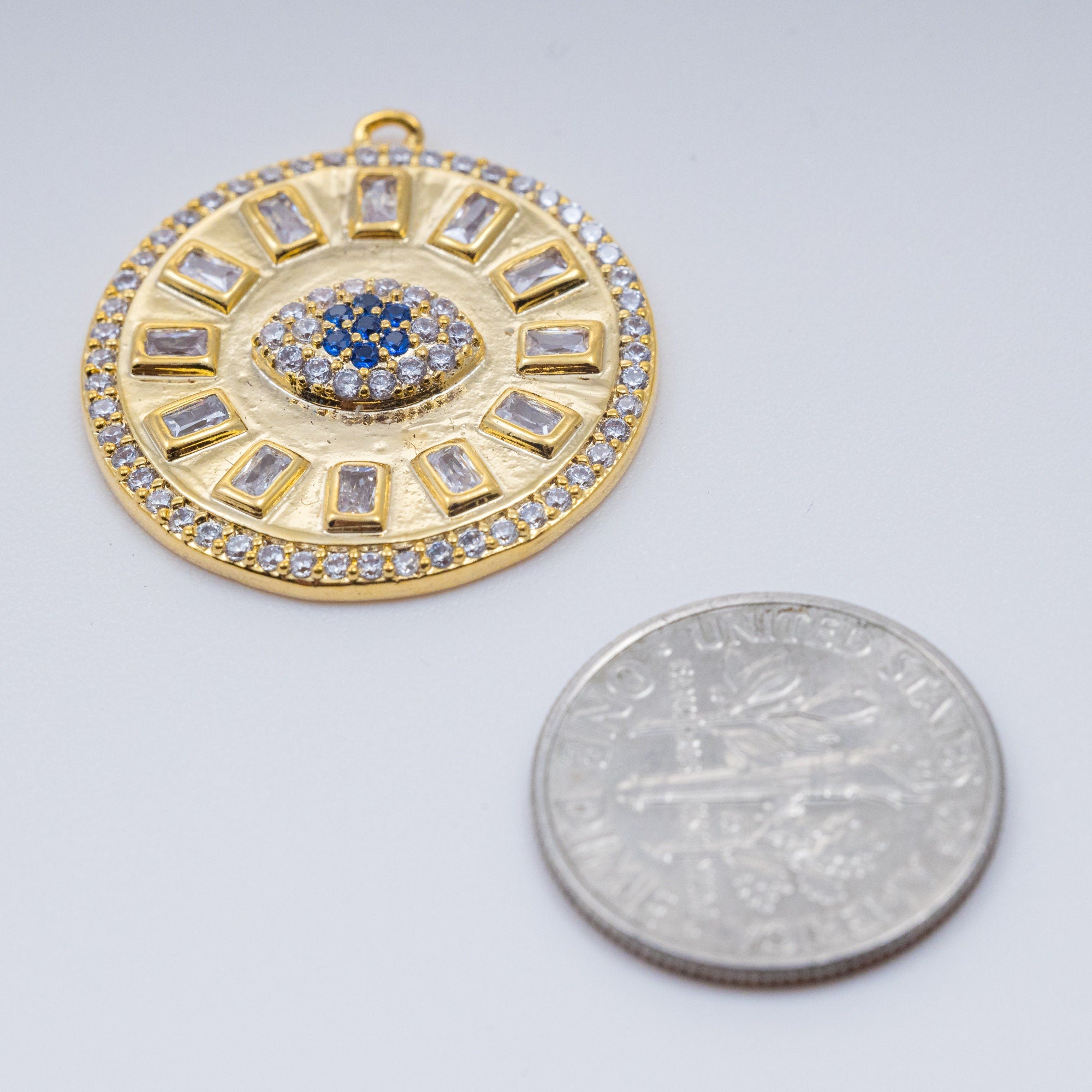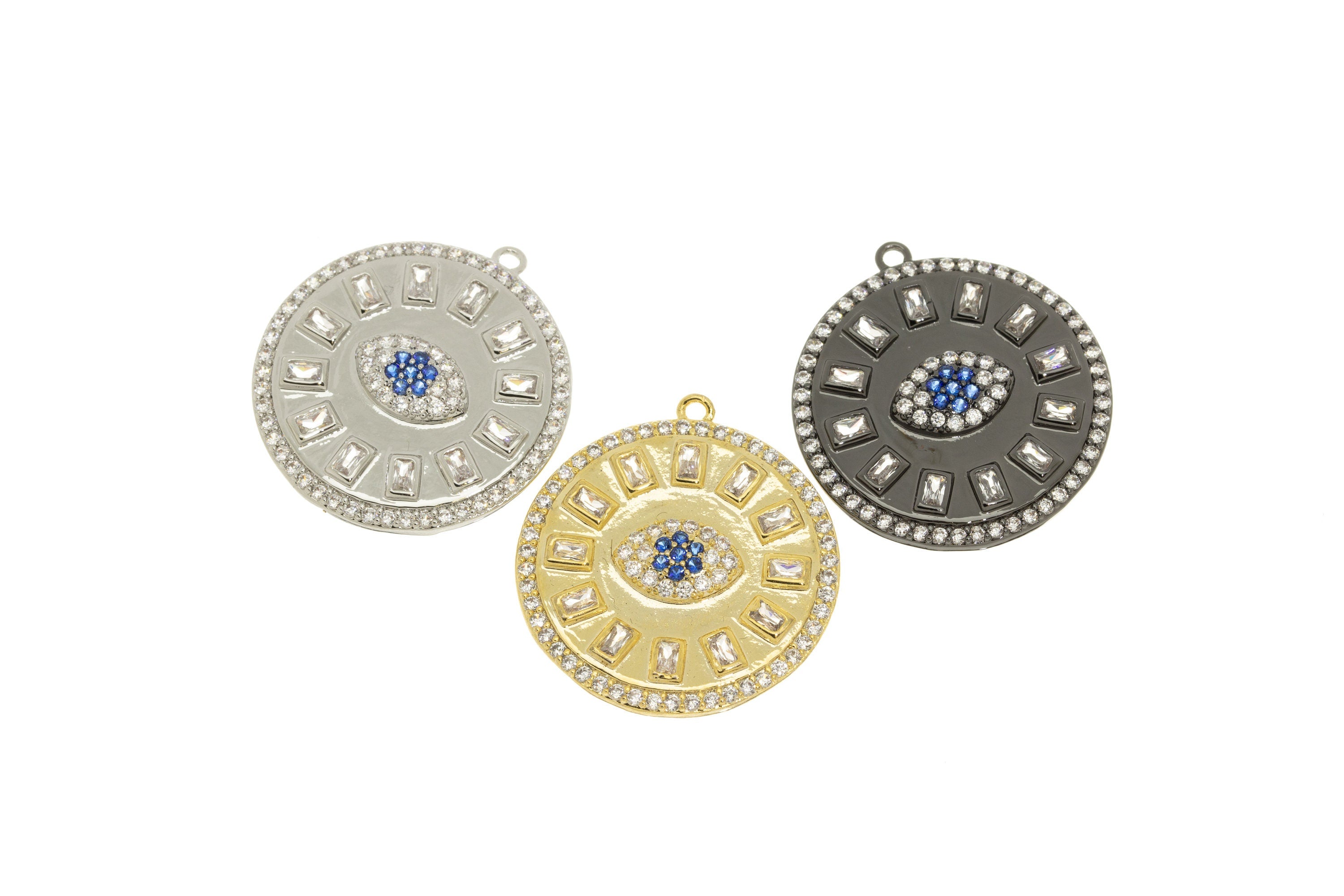 Evil Eye Pave Baguette Full Bling Disc Pendant,Large Evil eye Pendant, Evil eye jewelry, 23mm, 1 pc or 5pcs, WHOLESALE,CP123