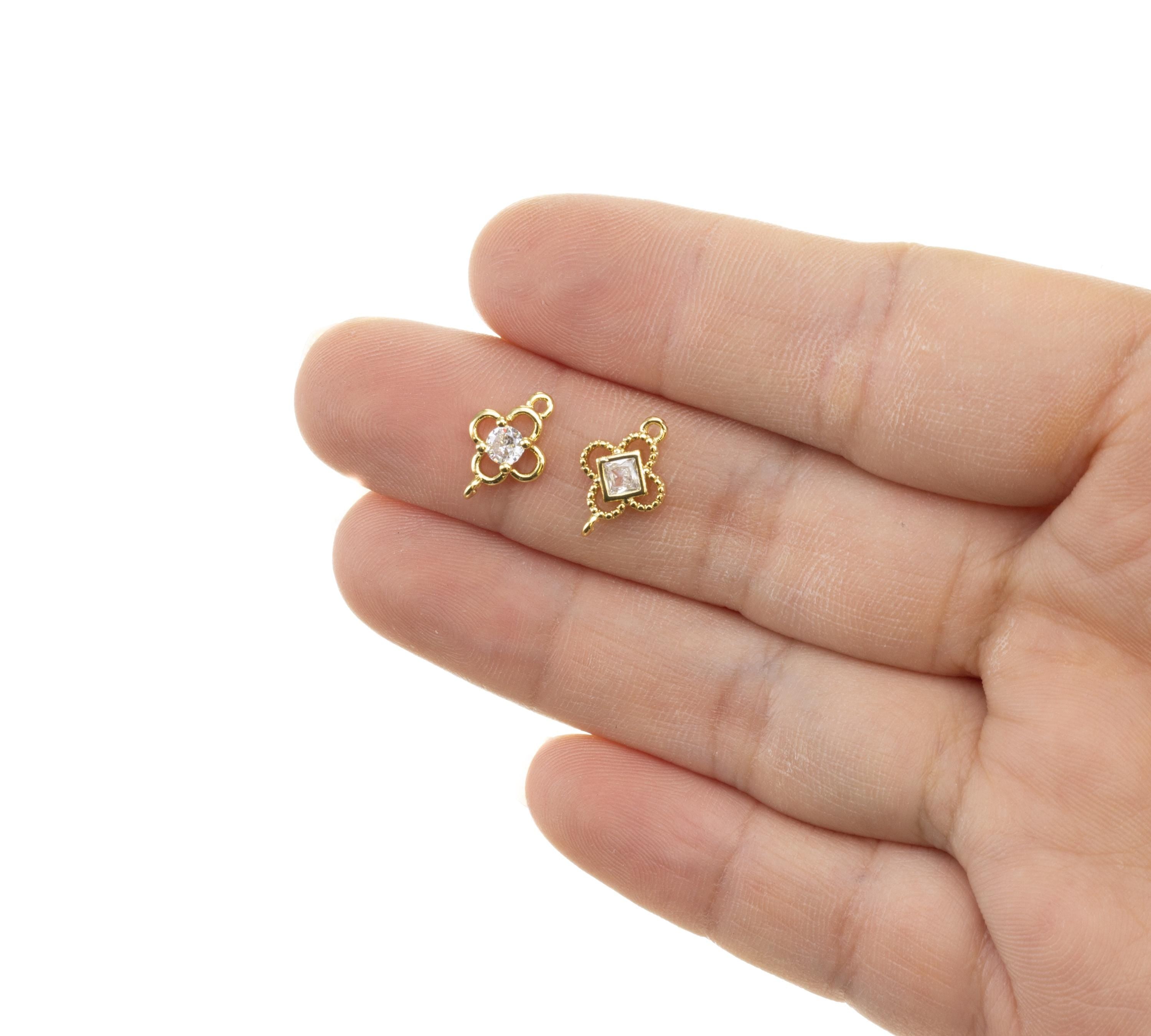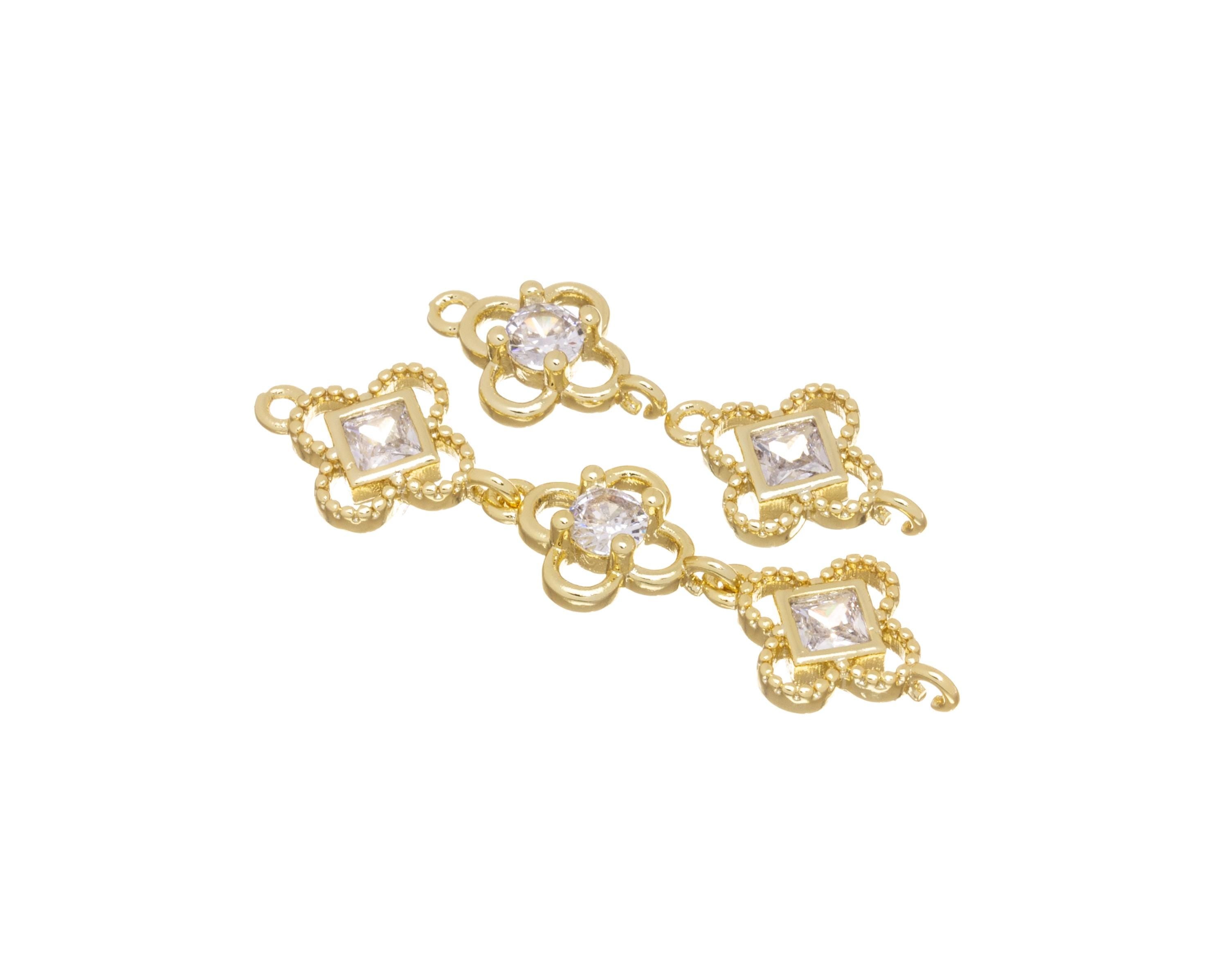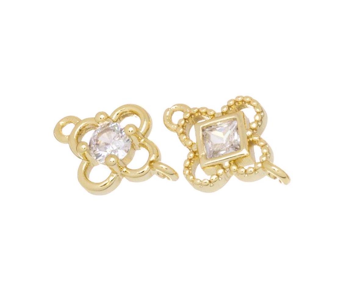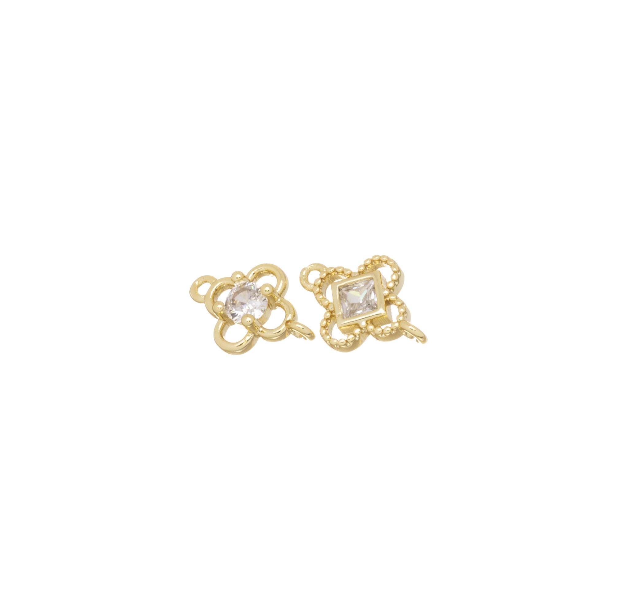 Gold 4 Leaf Flower Connector Charm,CZ Four Leaf Clover Connector Charm,Four Leaf Flower Connector For Bracelet And Earrings,CNG145-CNG146