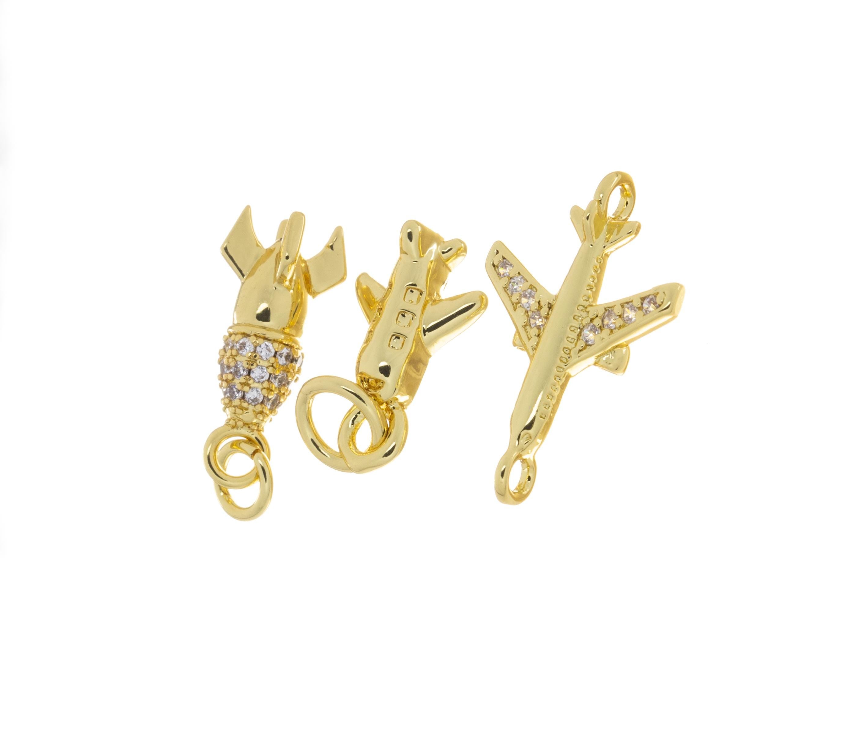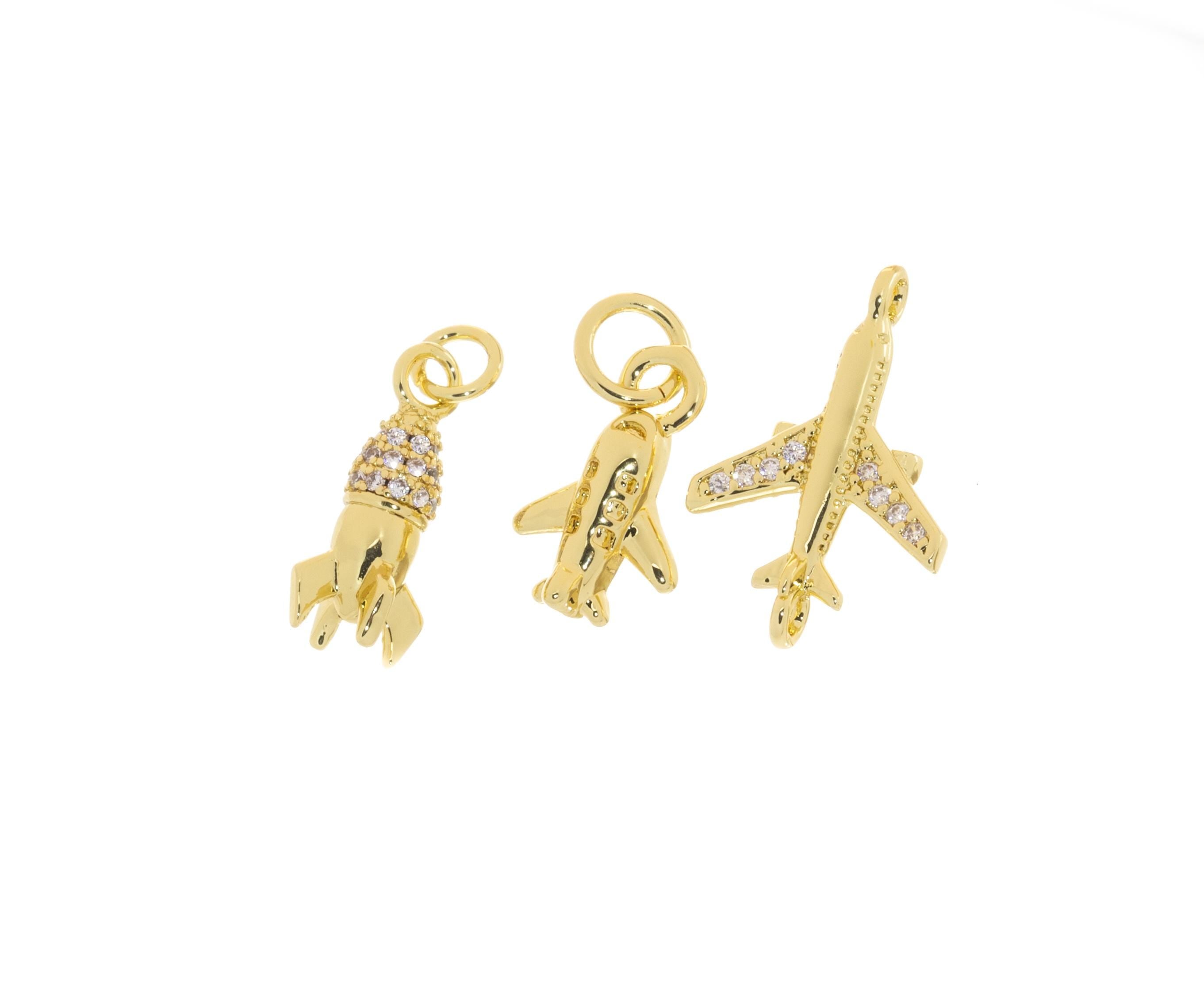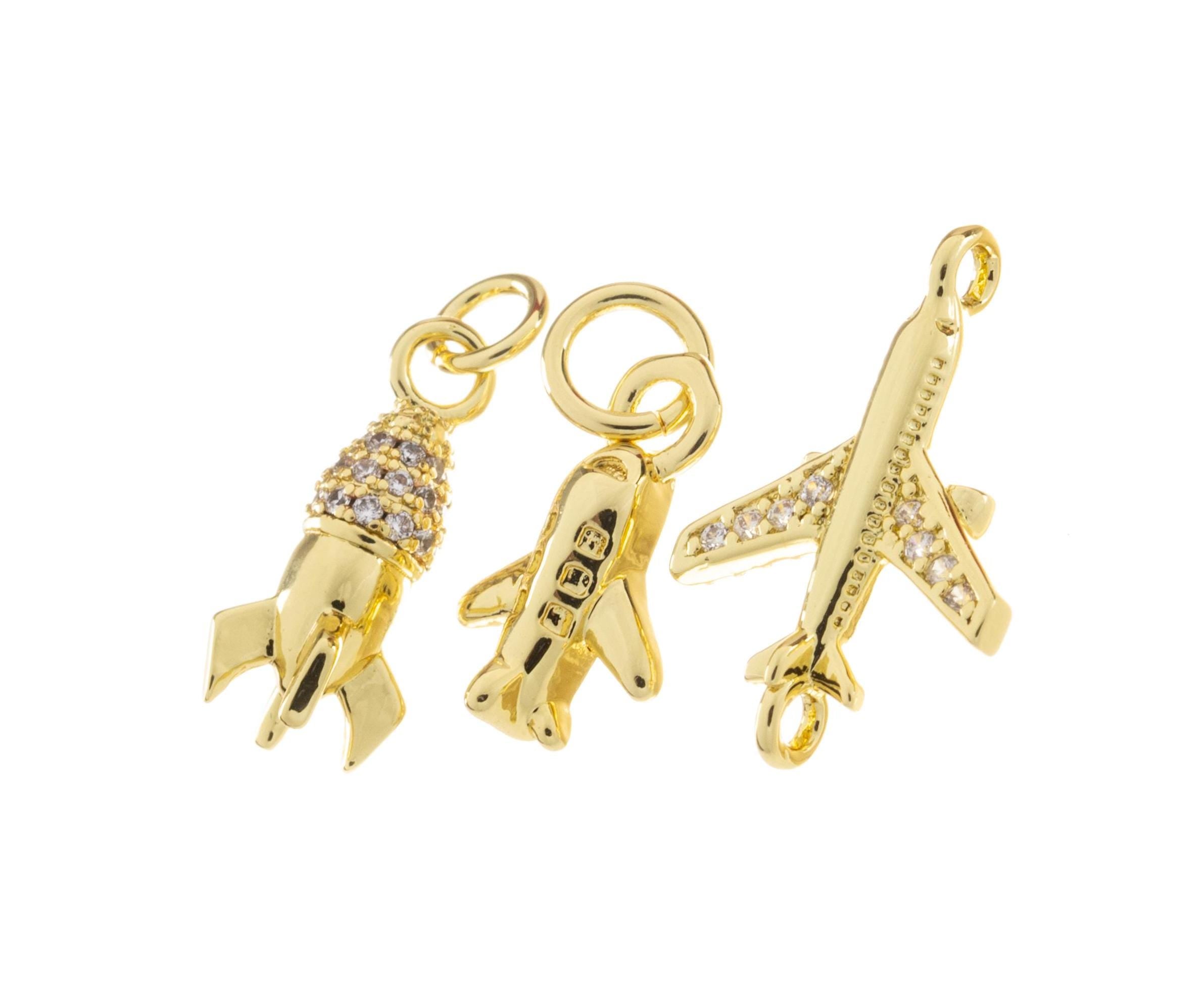 Gold Airplane Charm, Small Gold Rocket And Airplane,Charms For Jewelry Making,Necklace,Bracelet,Earrings CPG771-CPG2185-CPG2191