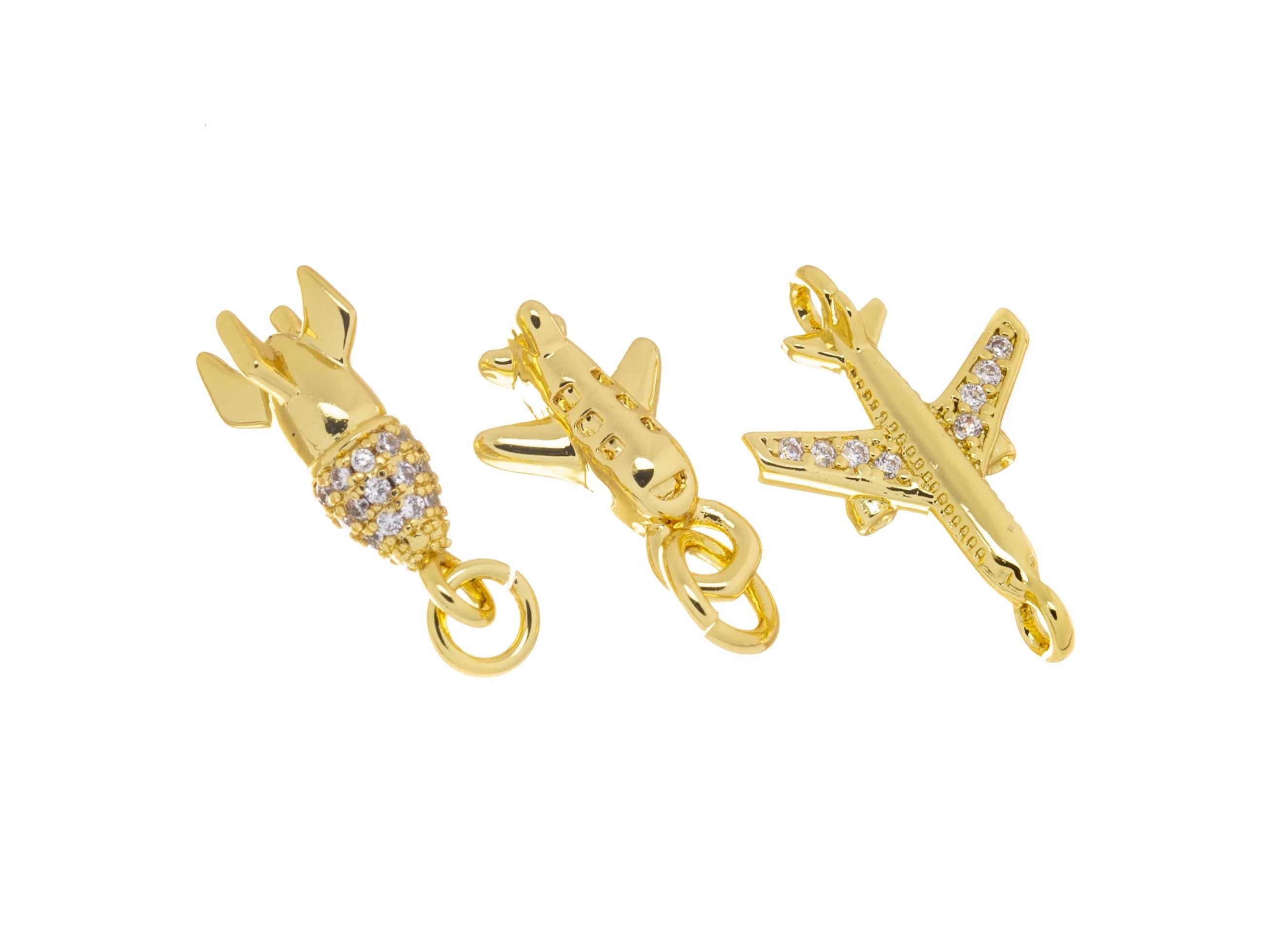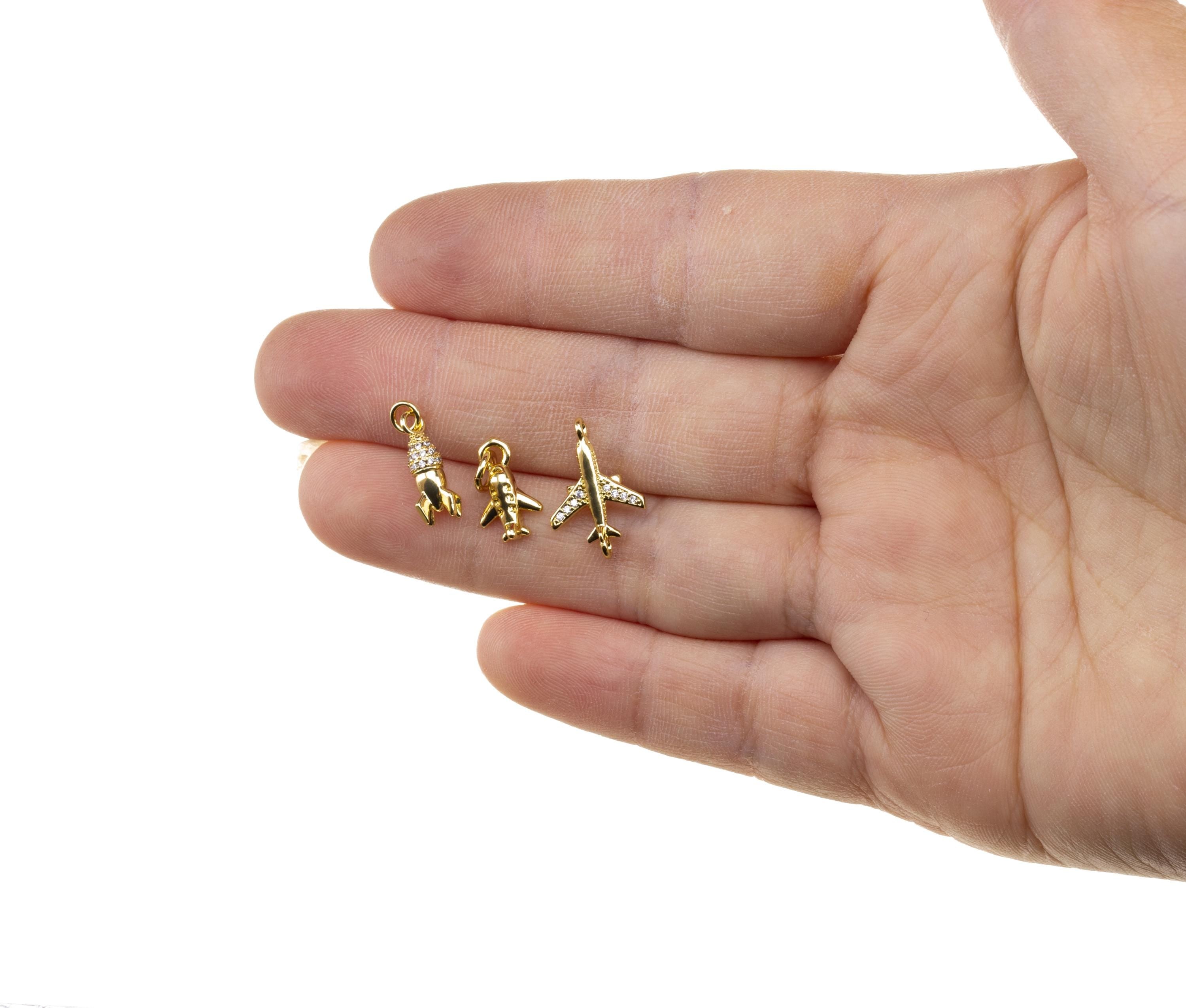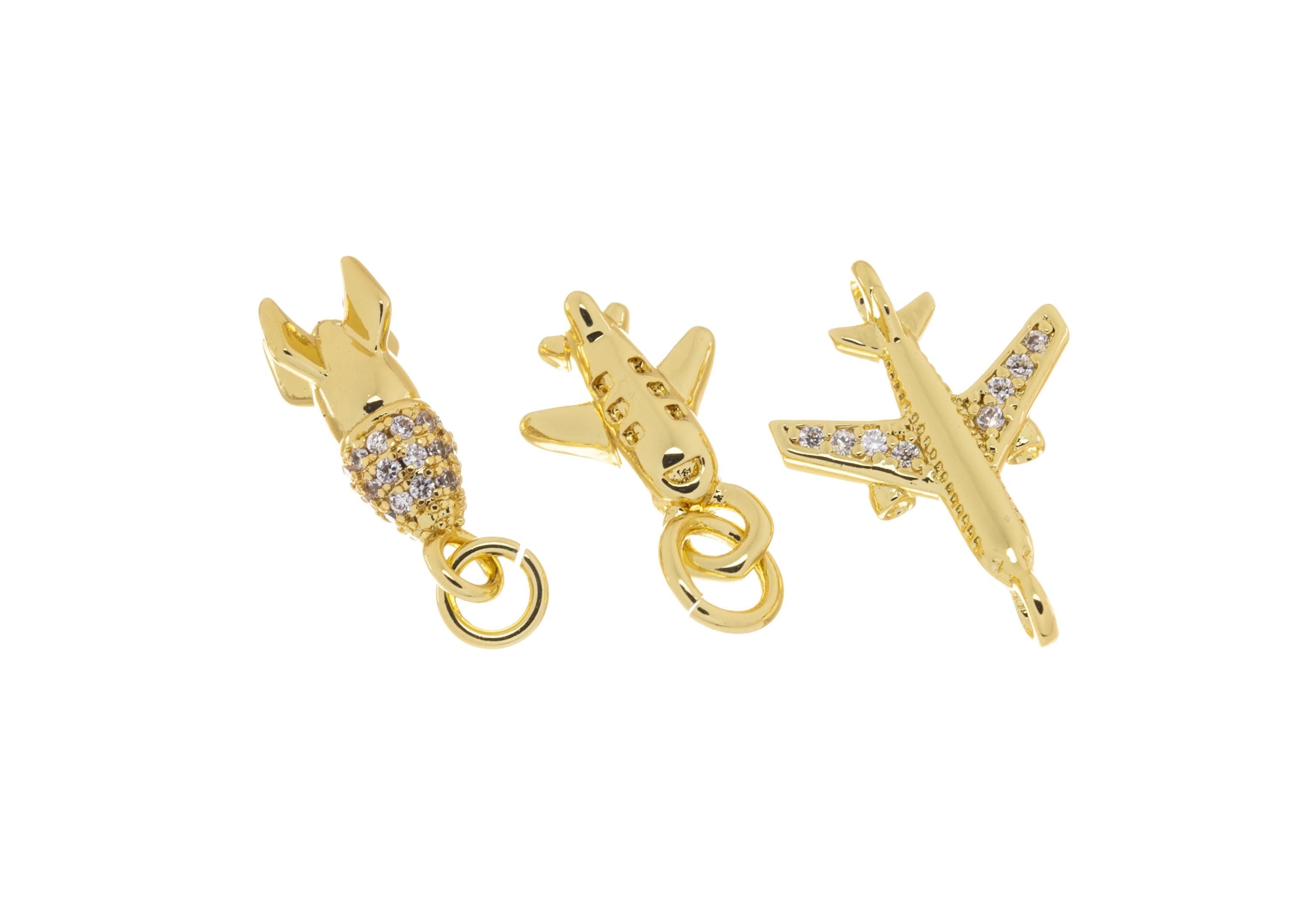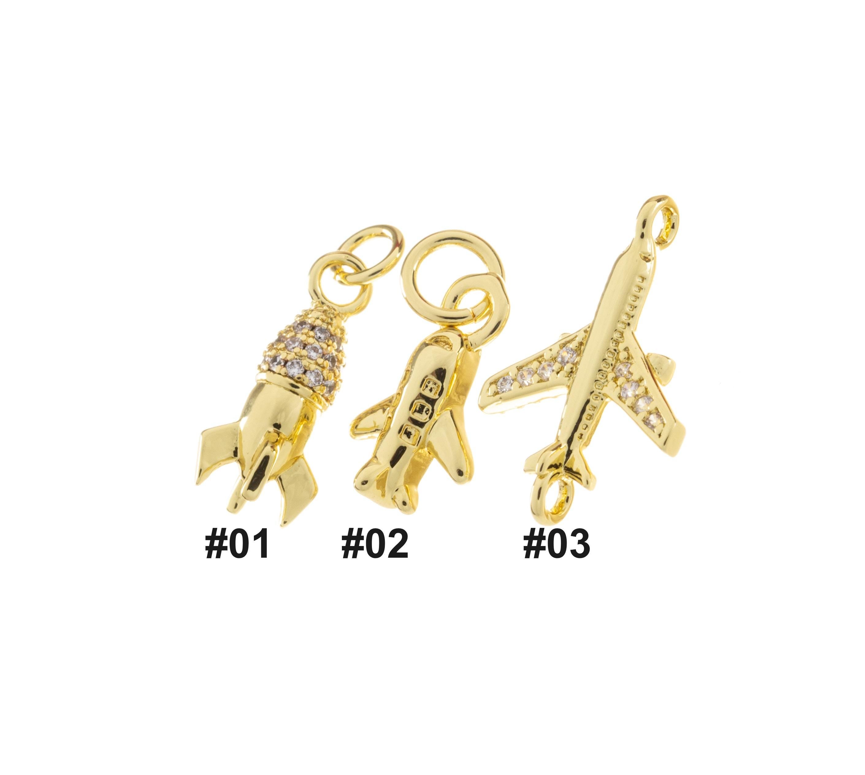 Gold Airplane Charm, Small Gold Rocket And Airplane,Charms For Jewelry Making,Necklace,Bracelet,Earrings CPG771-CPG2185-CPG2191