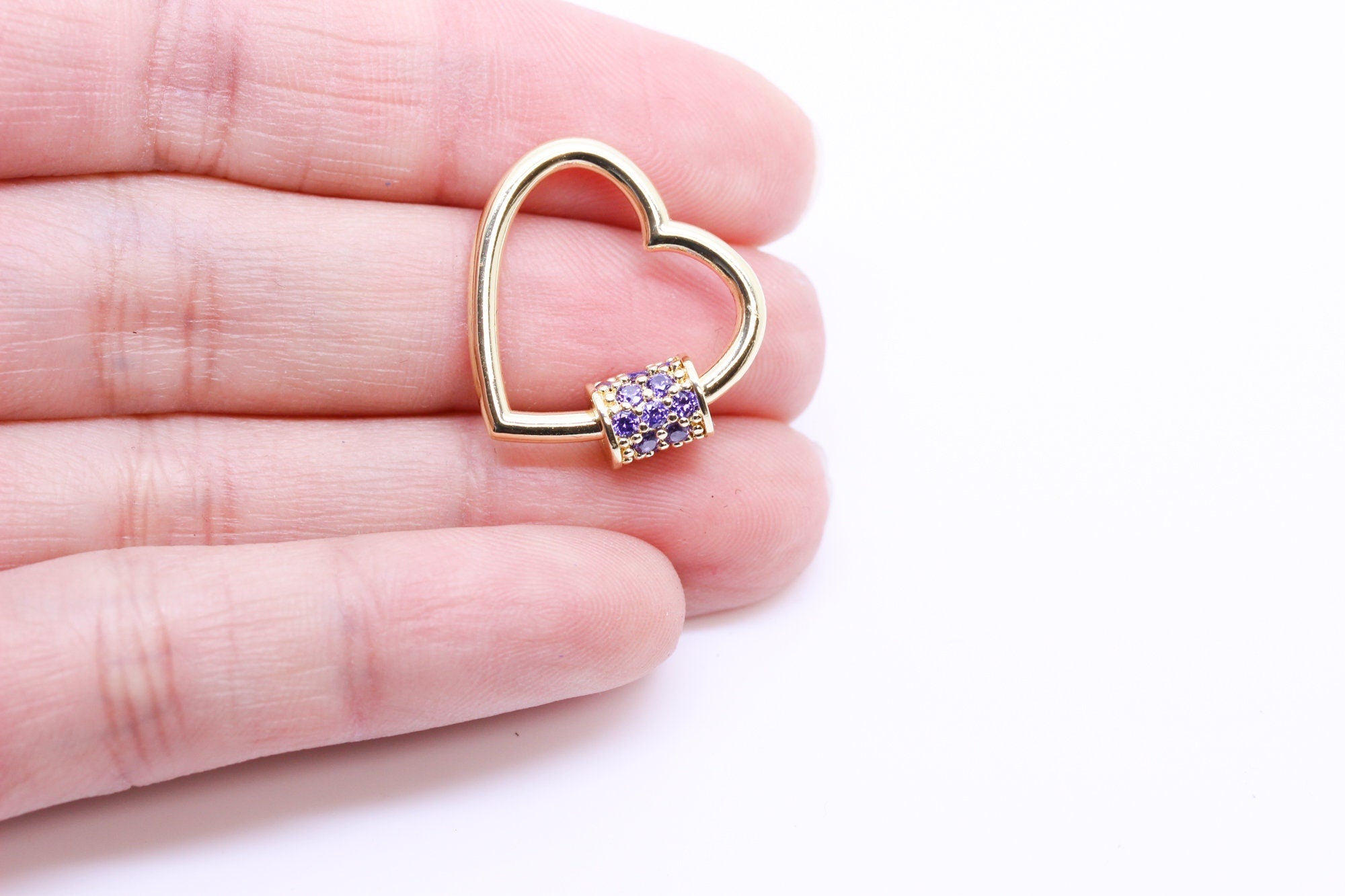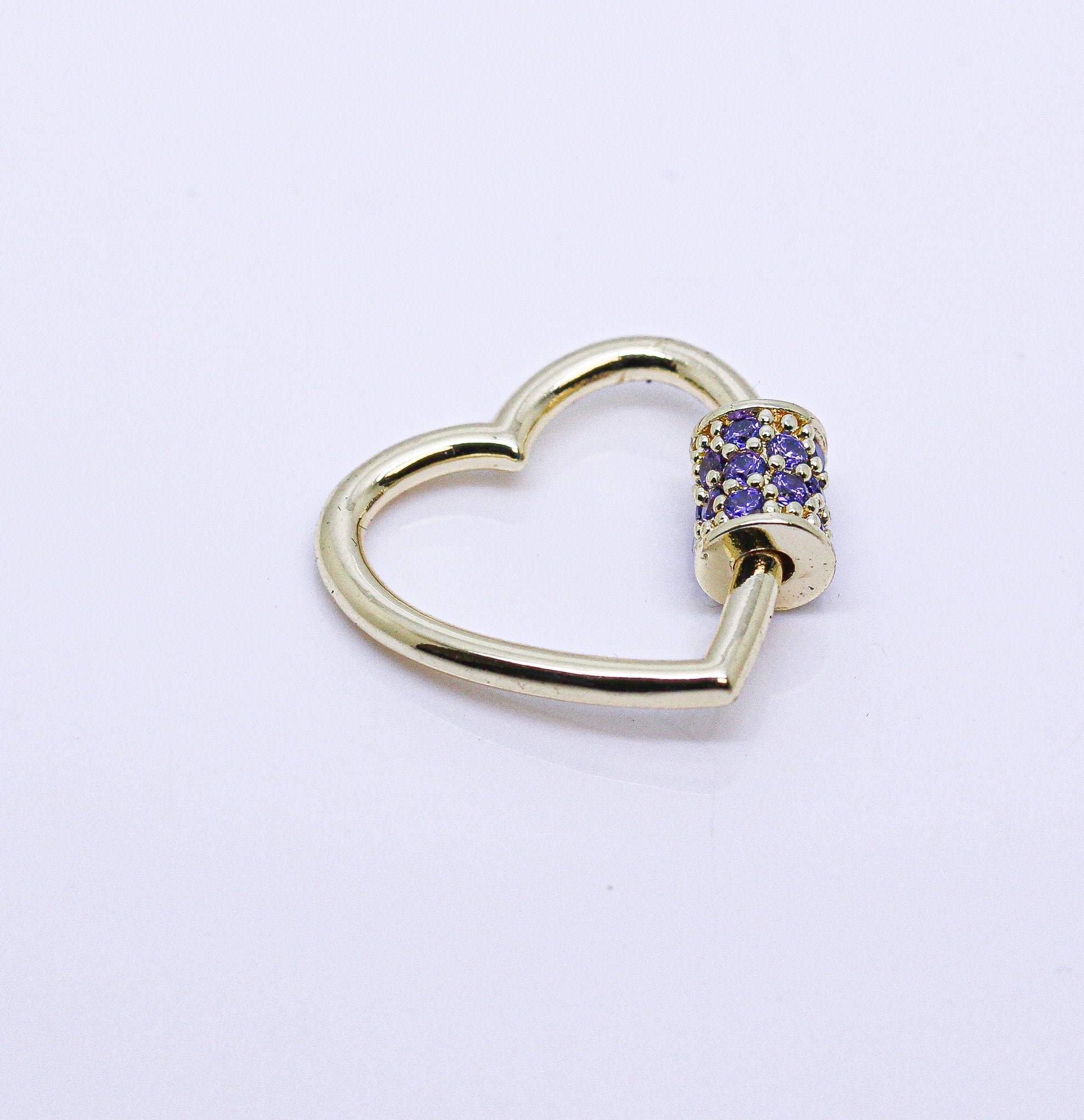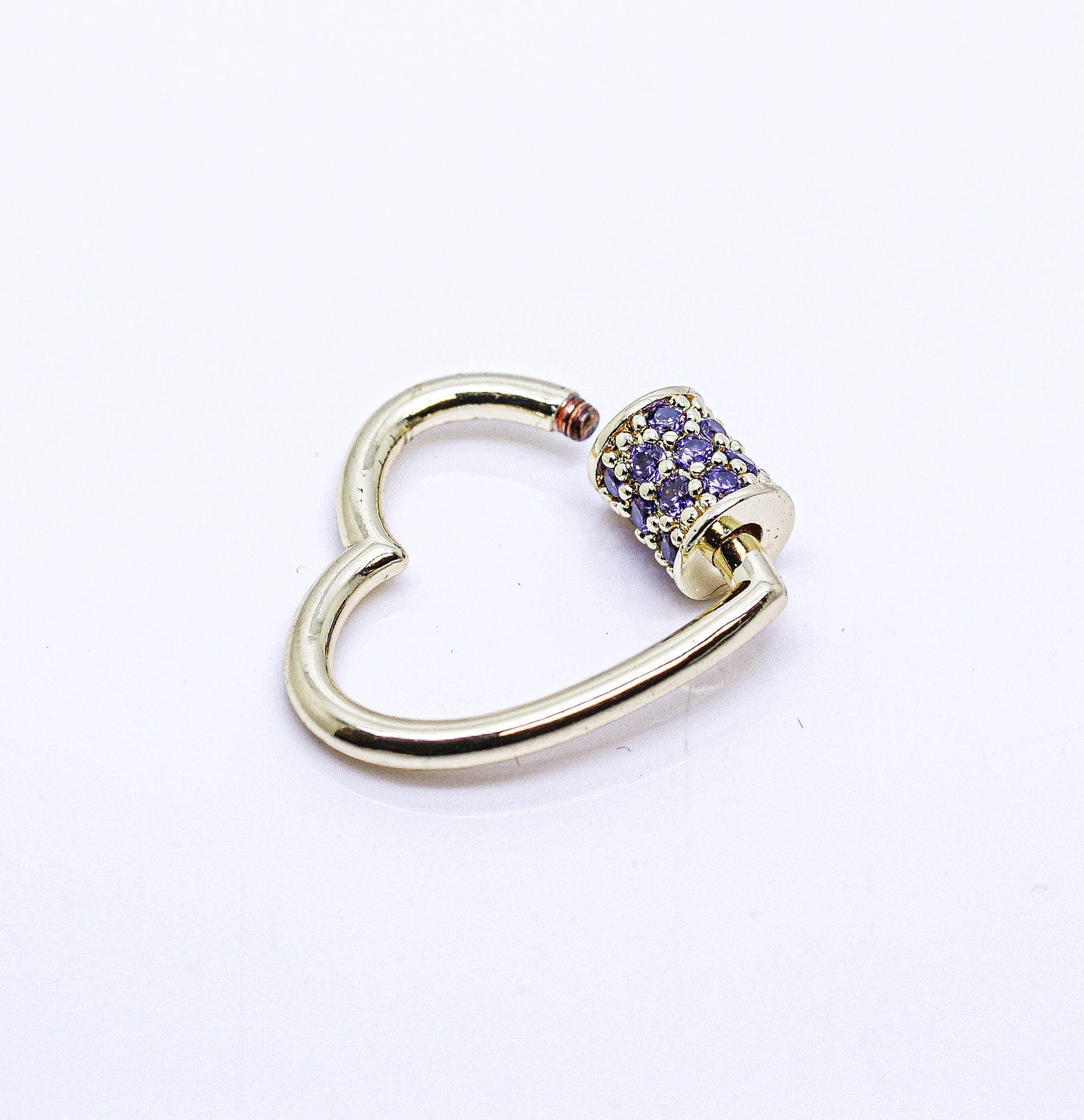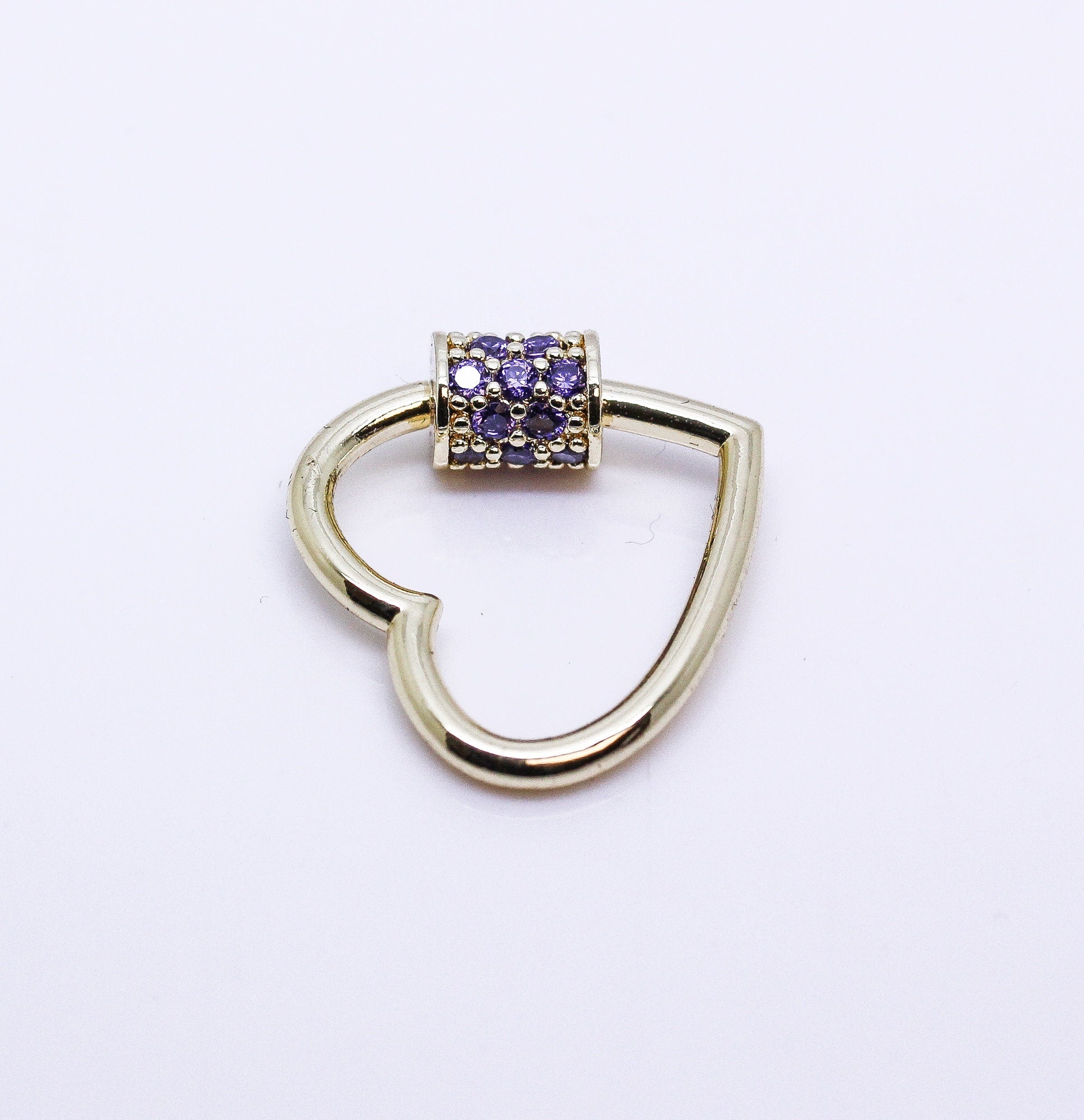Gold Amethyst Heart CZ Screw on Clasp, Carabiner Lock