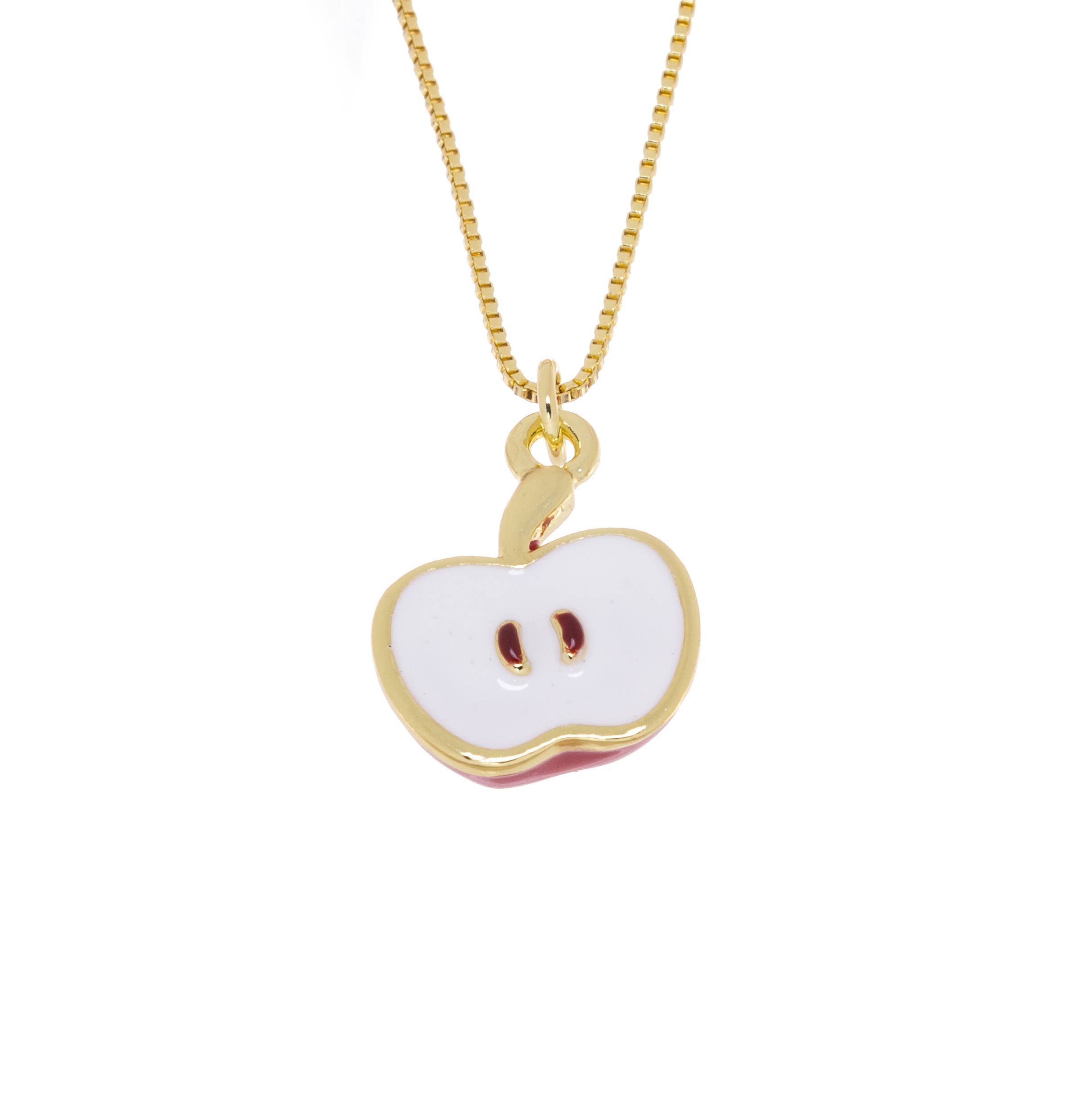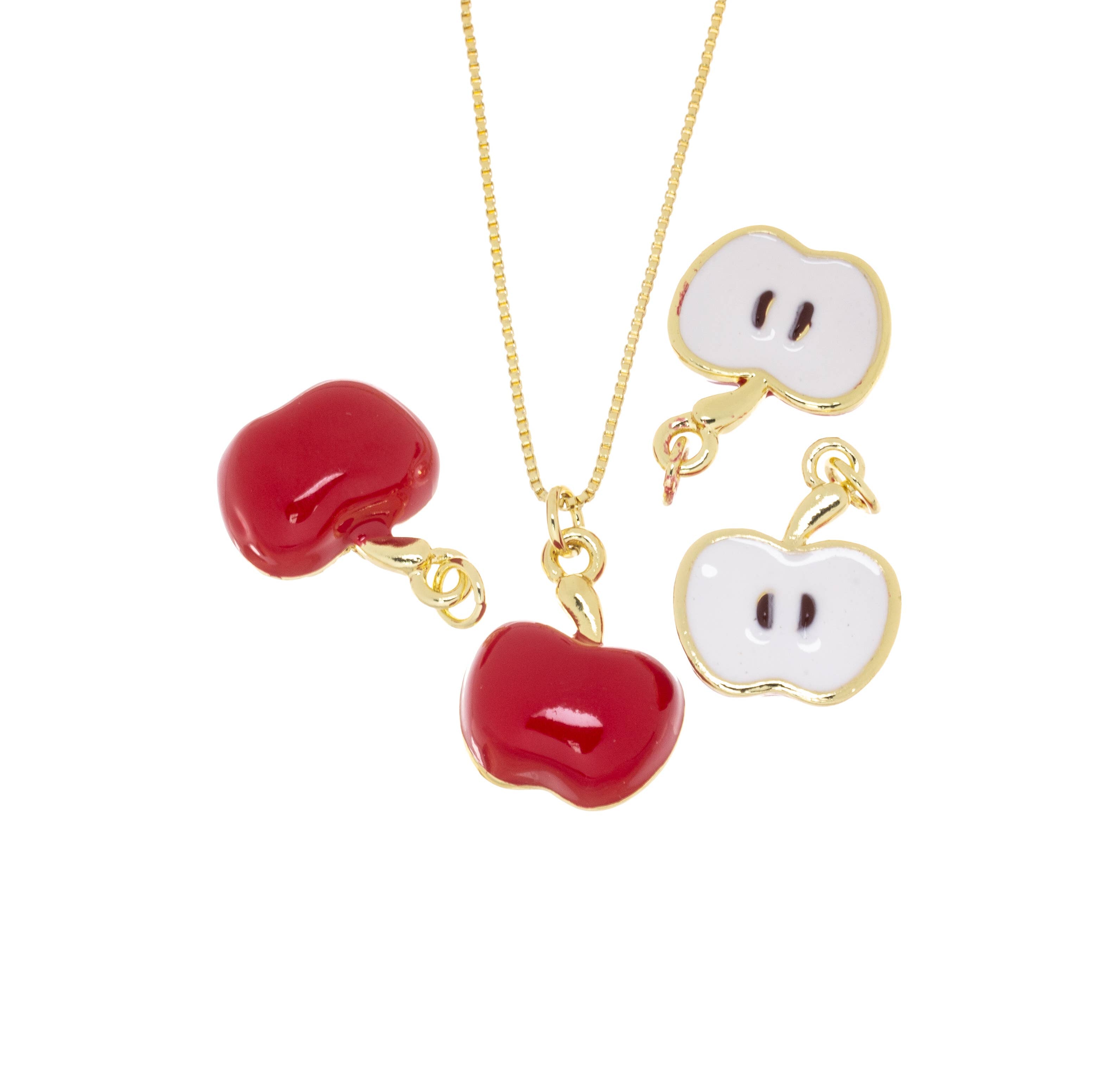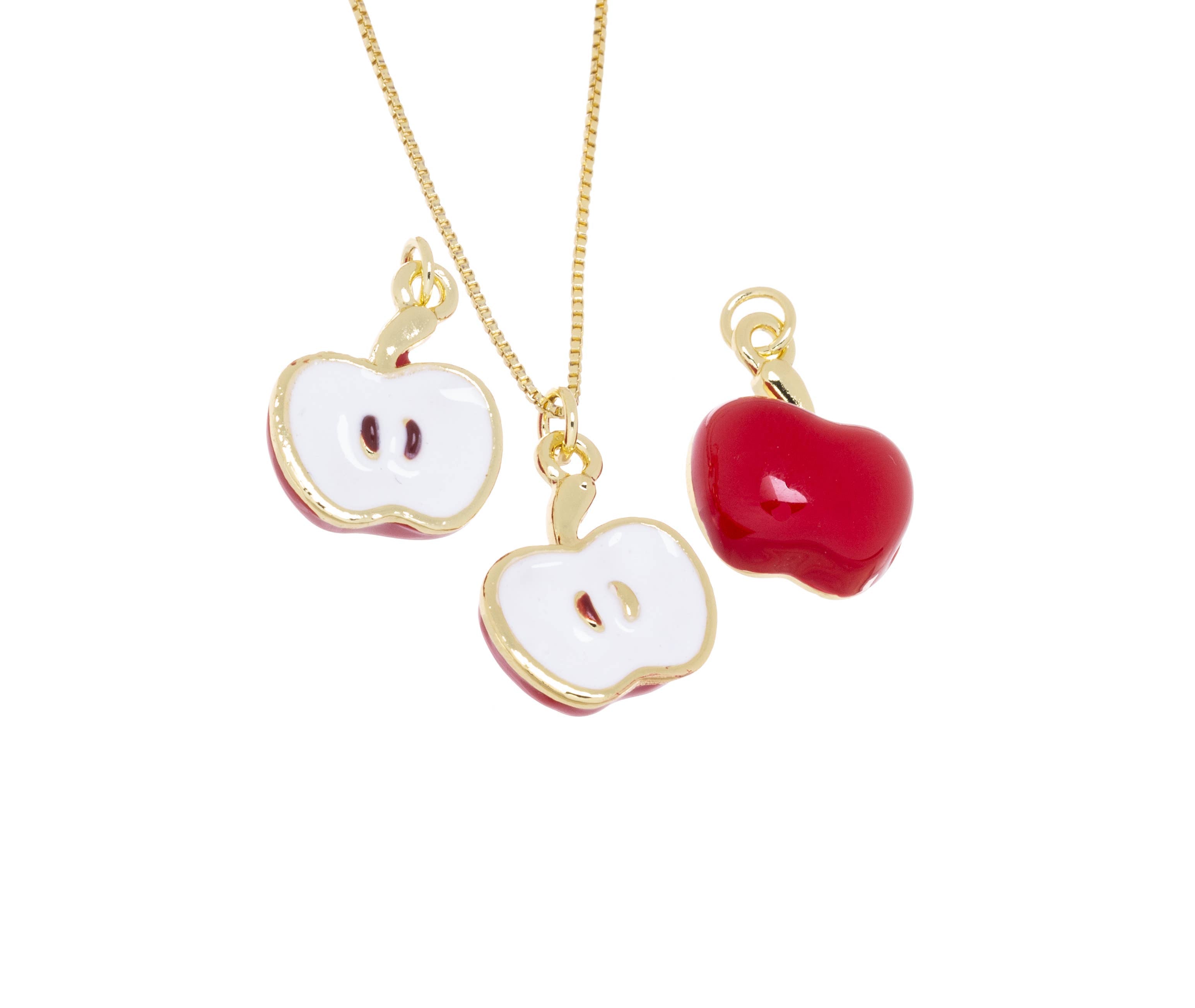 Gold Apple Two Sided Charm,Enamel Apple Charm,CPG2900