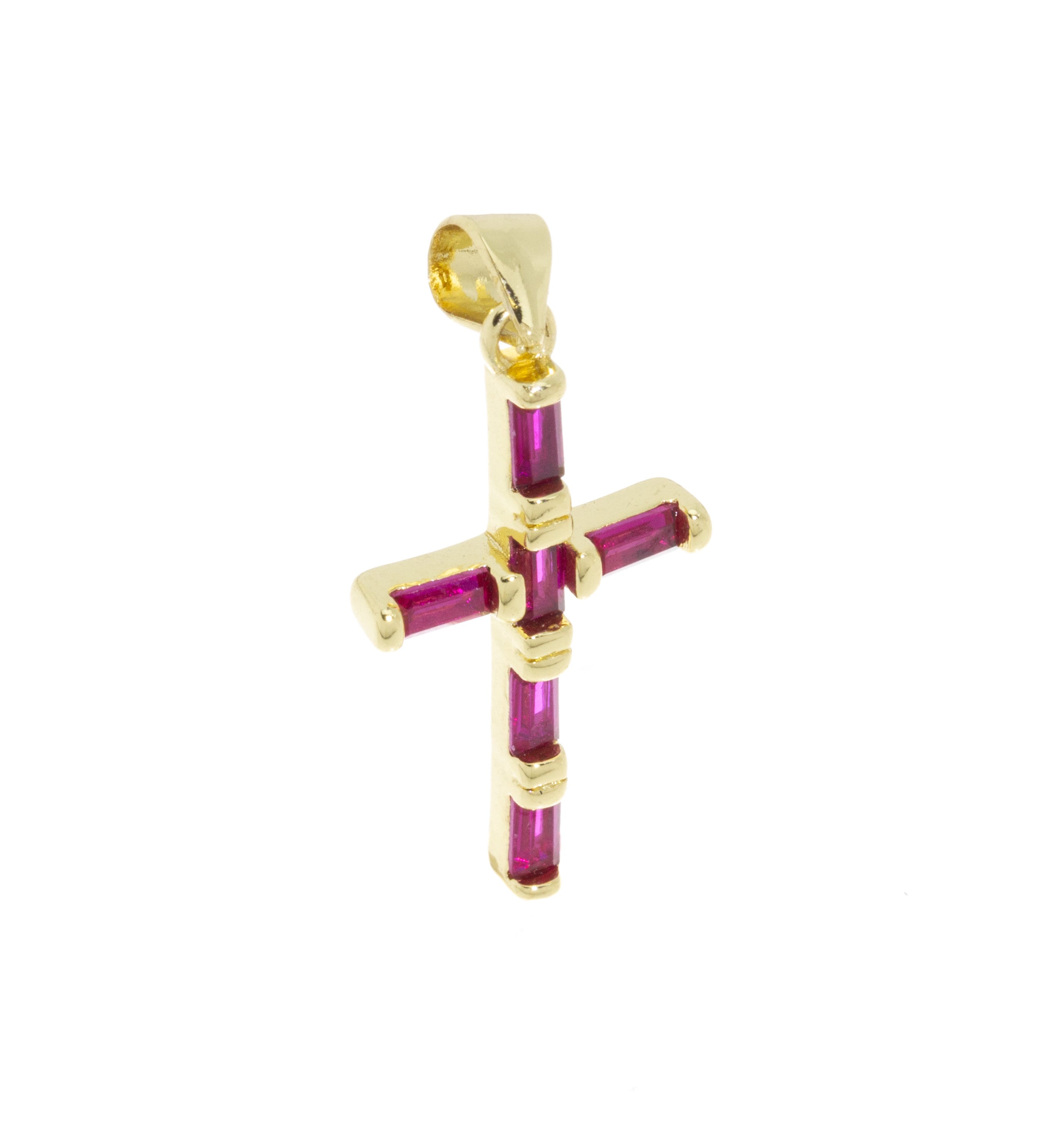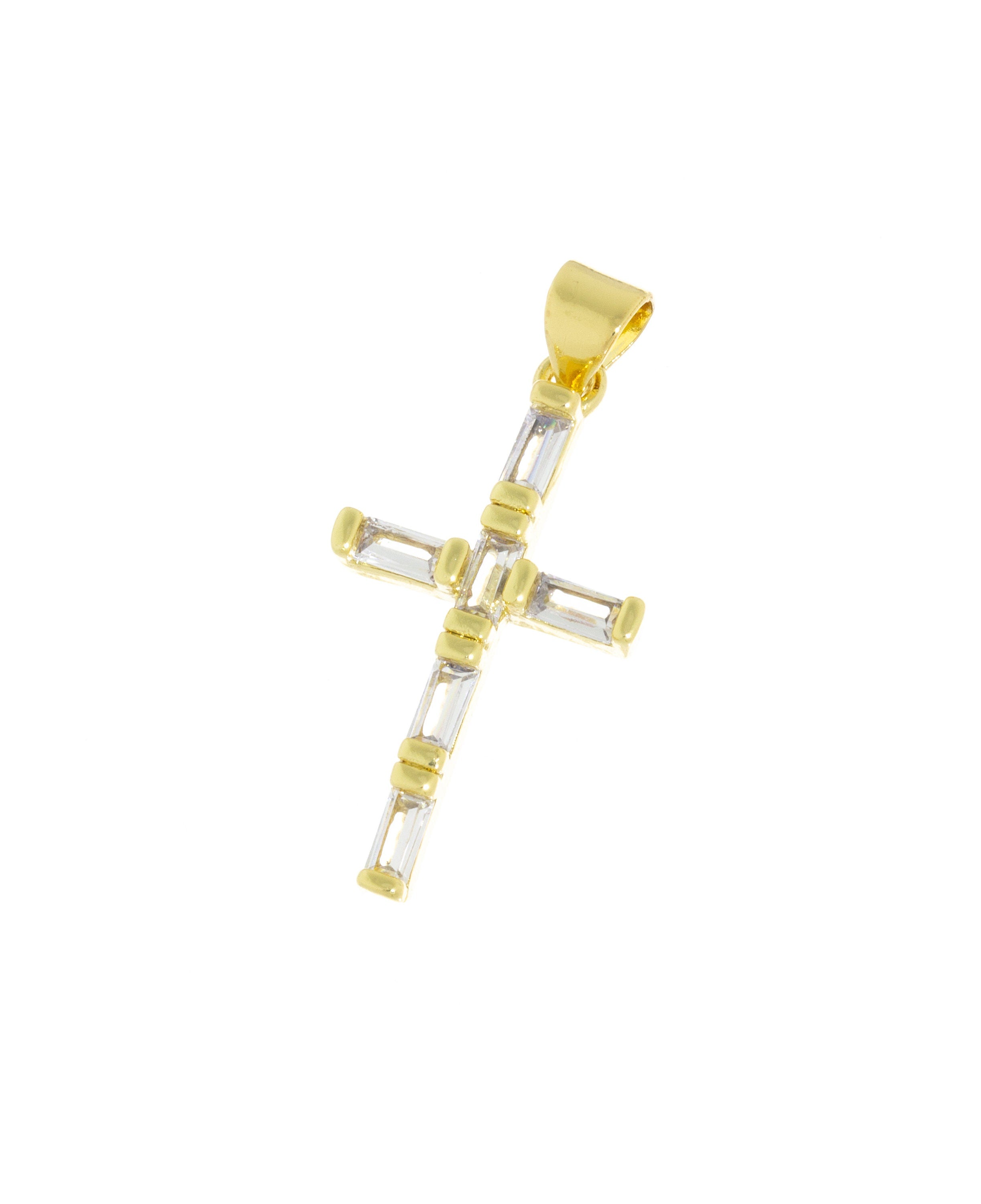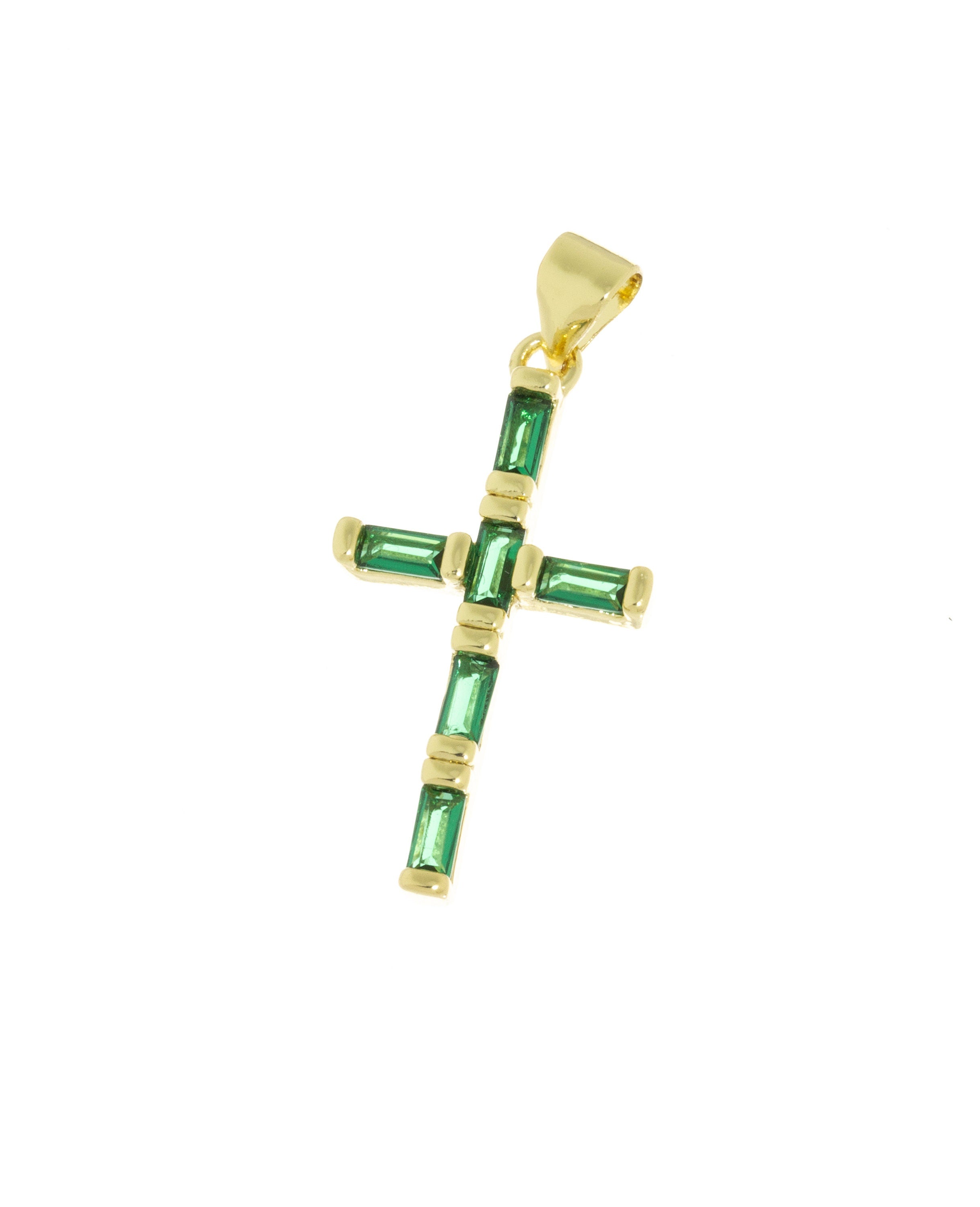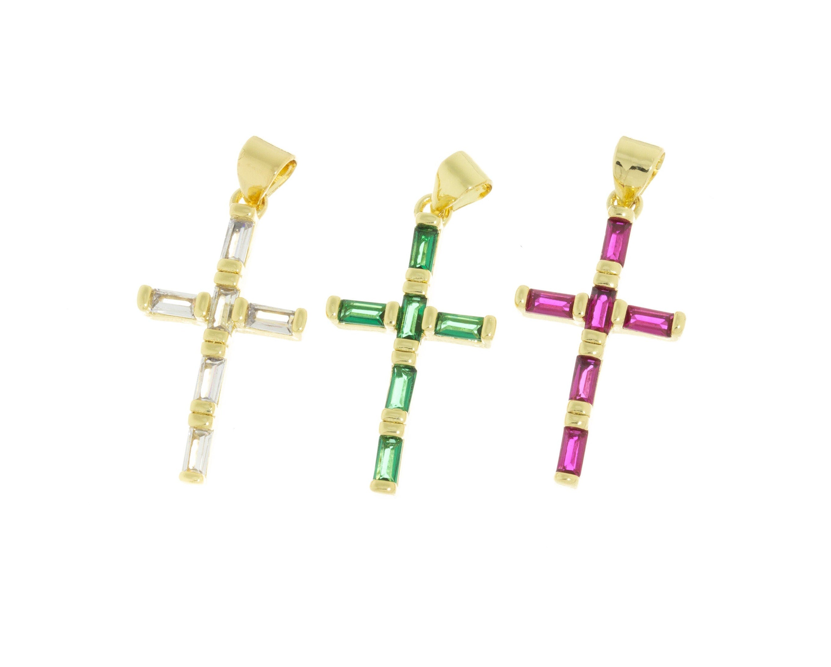 Gold Baguette Cross Charm,Pave Gold Cross Pendant,Religious Gold Jewelry,CZ Gold Cross Charm,CPG689