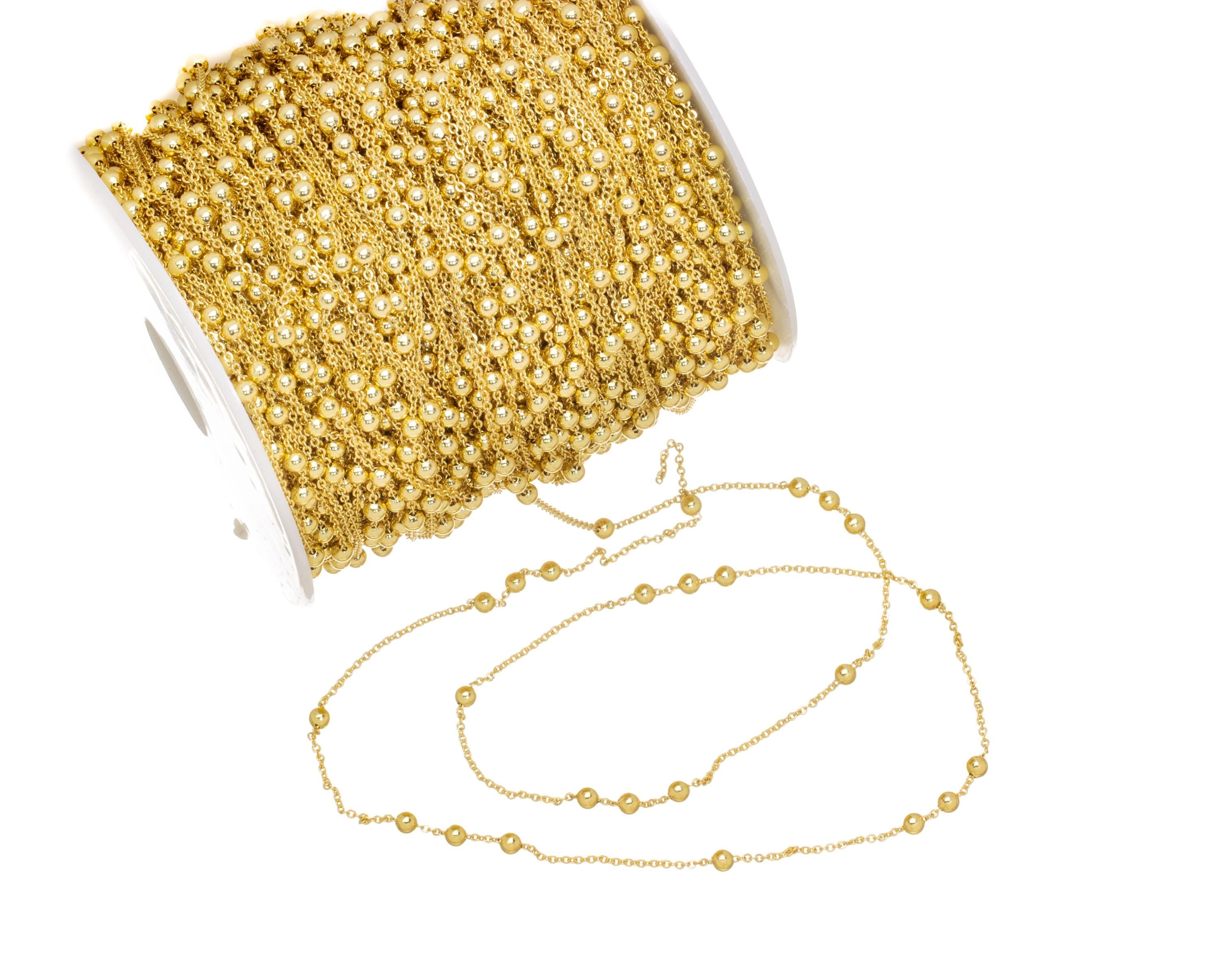 Gold Bead Ball Chain,3MM Satellite Bead Ball Chain For Jewelry Making,Alternating Beaded Chain,Chain For Necklace And Bracelet,CHG070