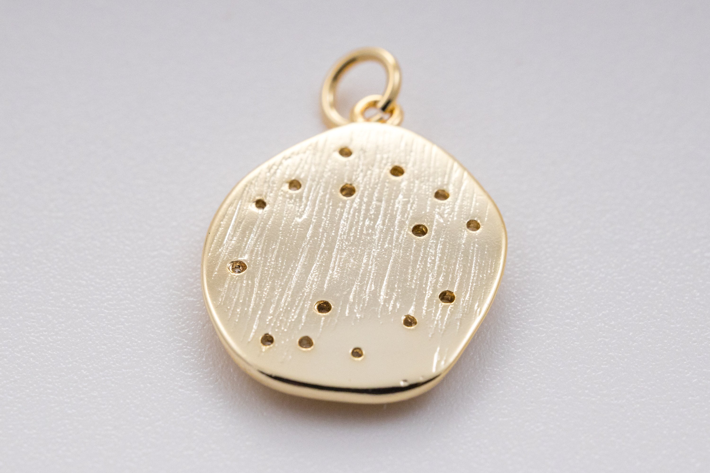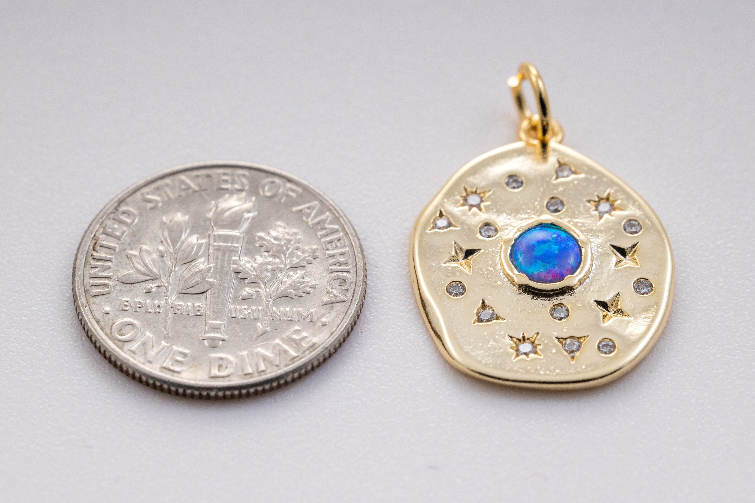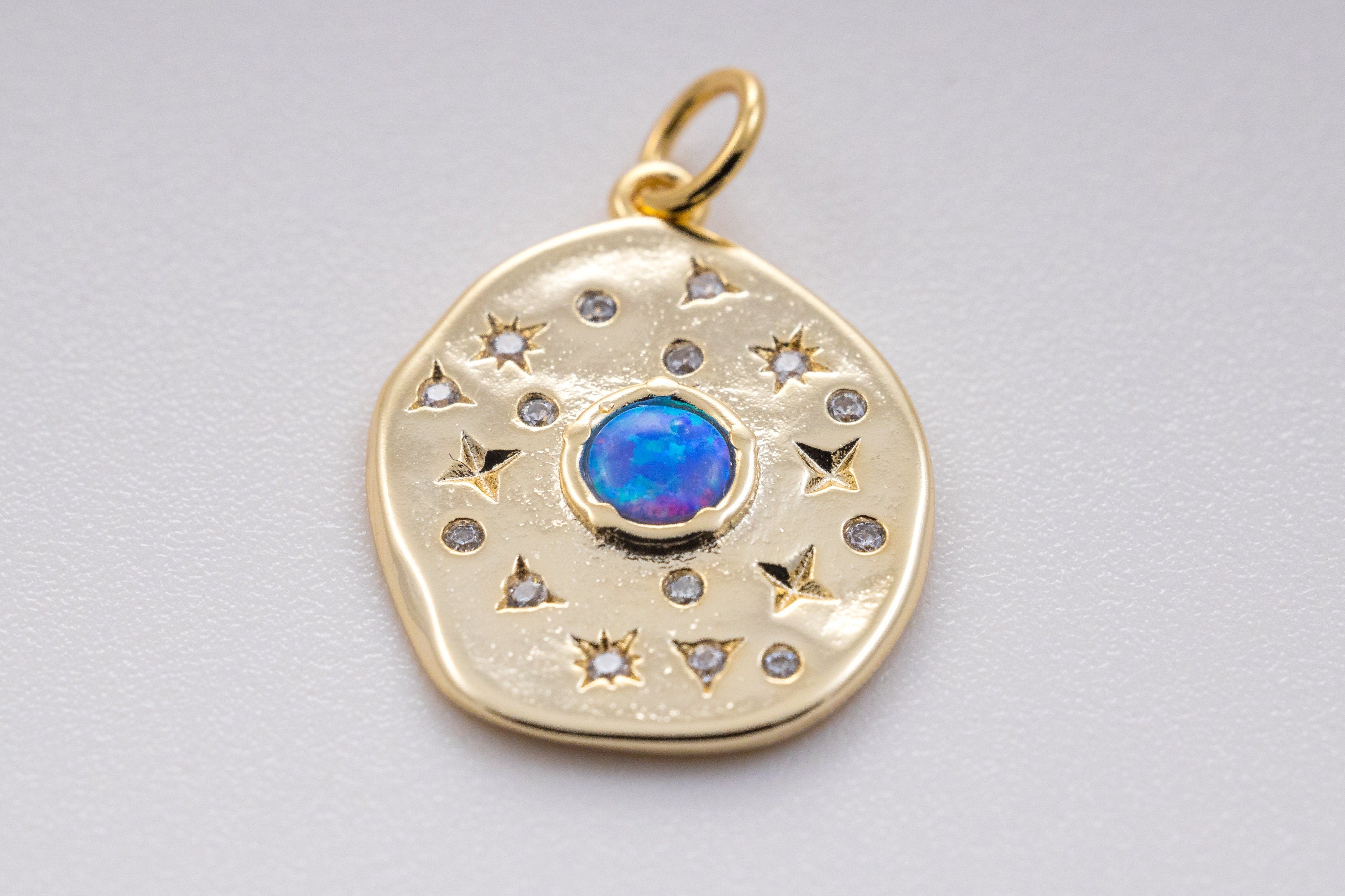 Gold Blue Opal Starburst cz pendant, 16x18mm, Organic Oval shape Charm, Opal jewelry, CPG329