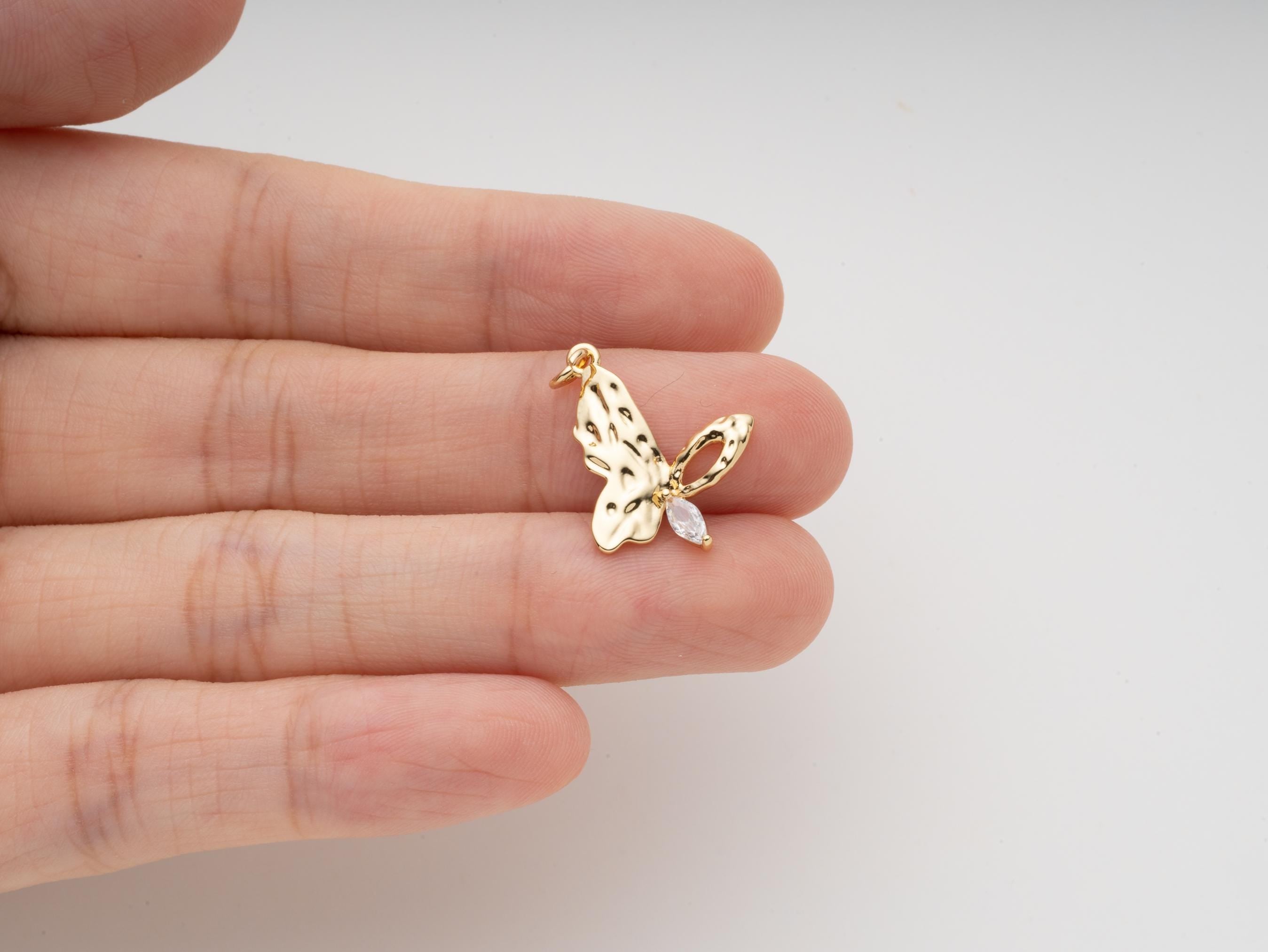 Gold Butterfly Charm, CZ Gold Butterfly Charm, Dainty Charm Jewlery, CPG2036