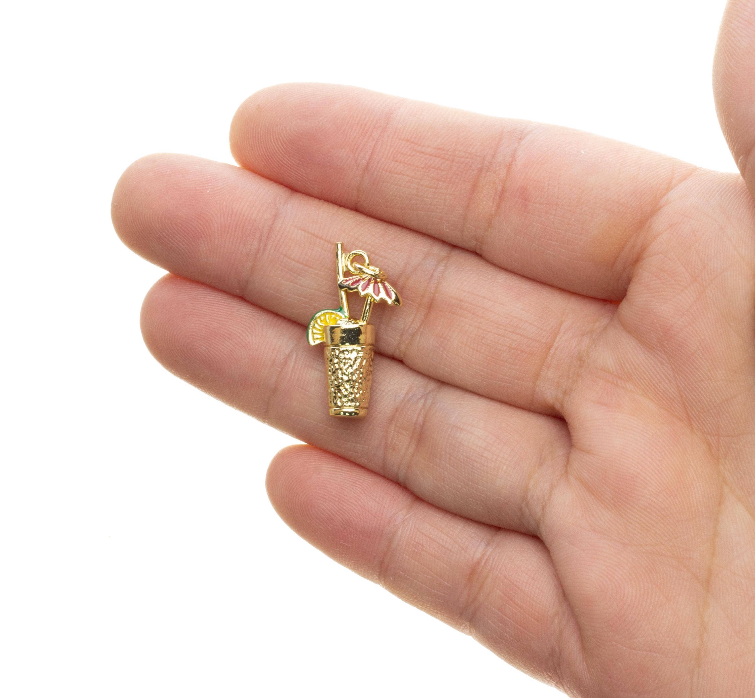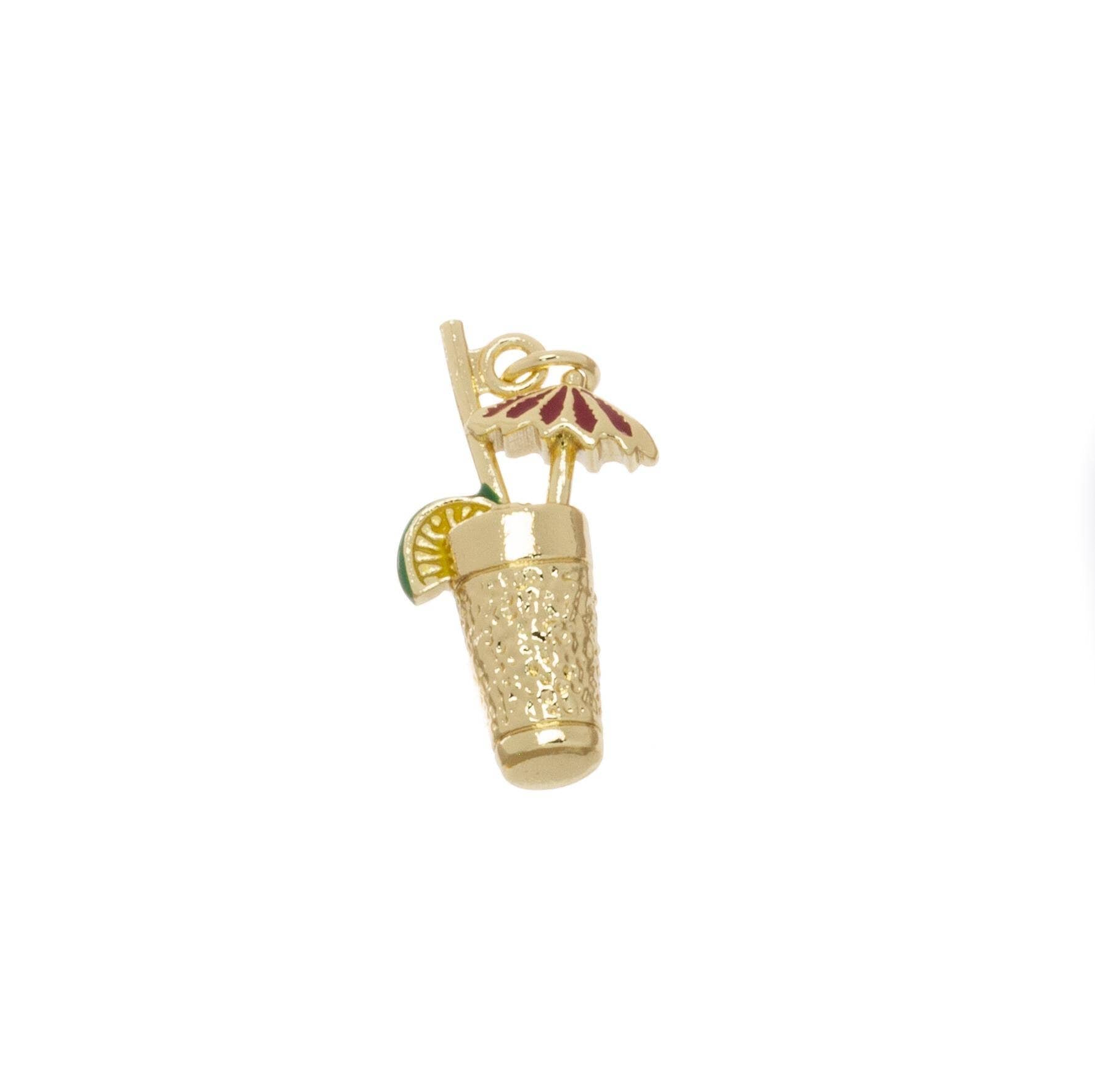 Gold Cocktail Glass Charm with Straw,Lime & Umbrella CPG1624